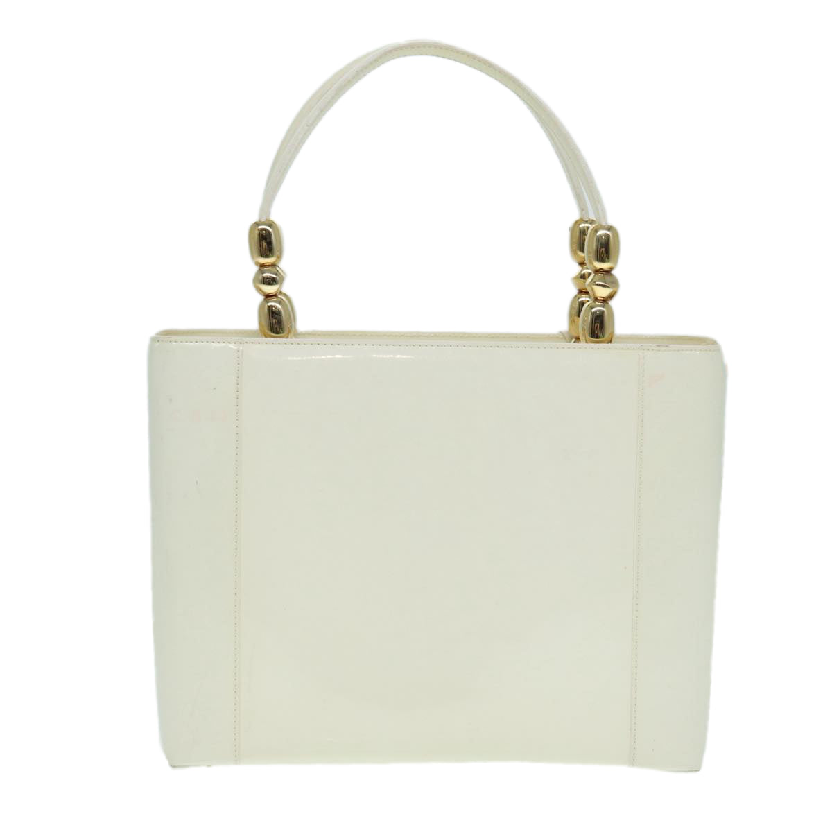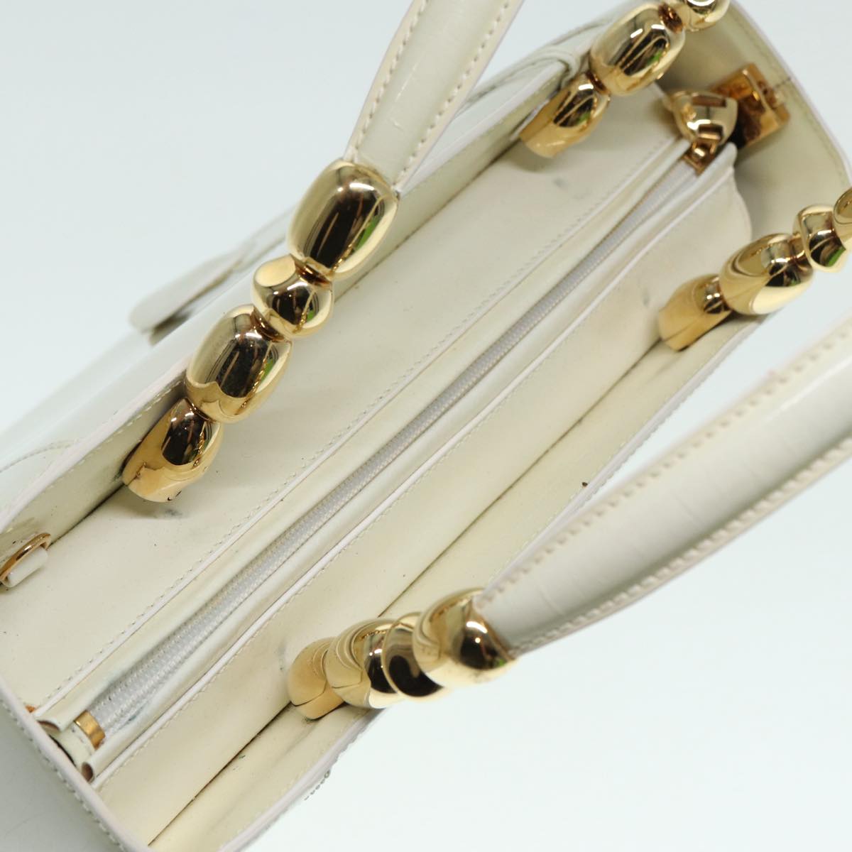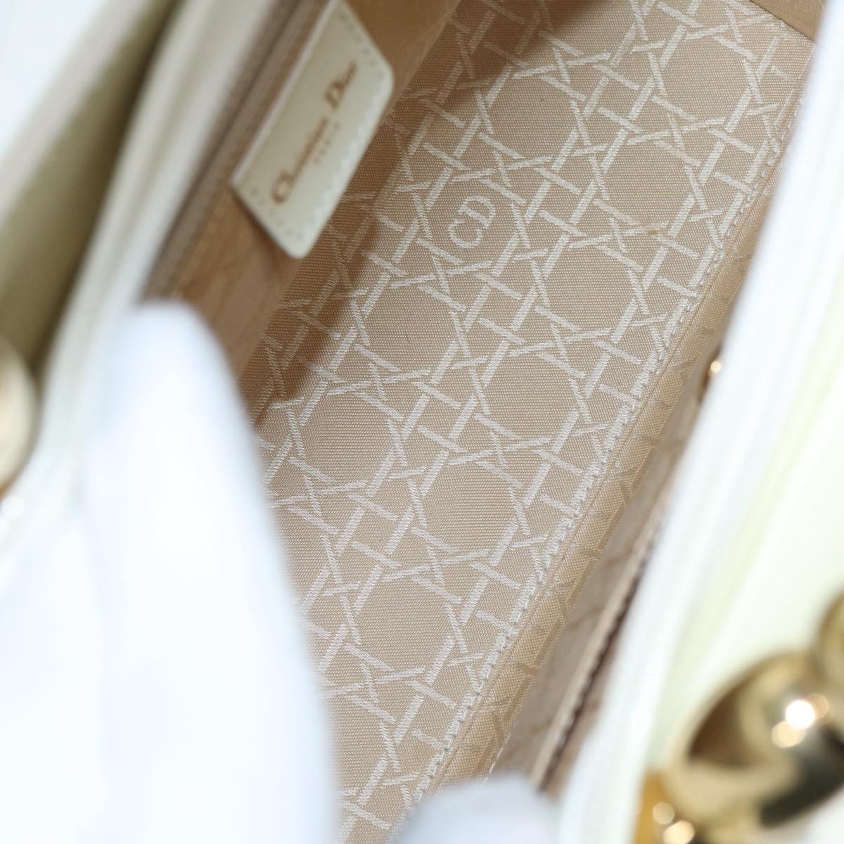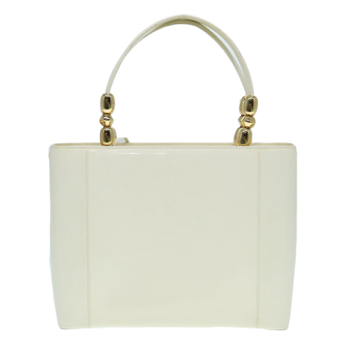 CHRISTIAN DIOR Maris Pearl Tote Bag Patent leather White Gold Auth bs17655