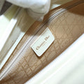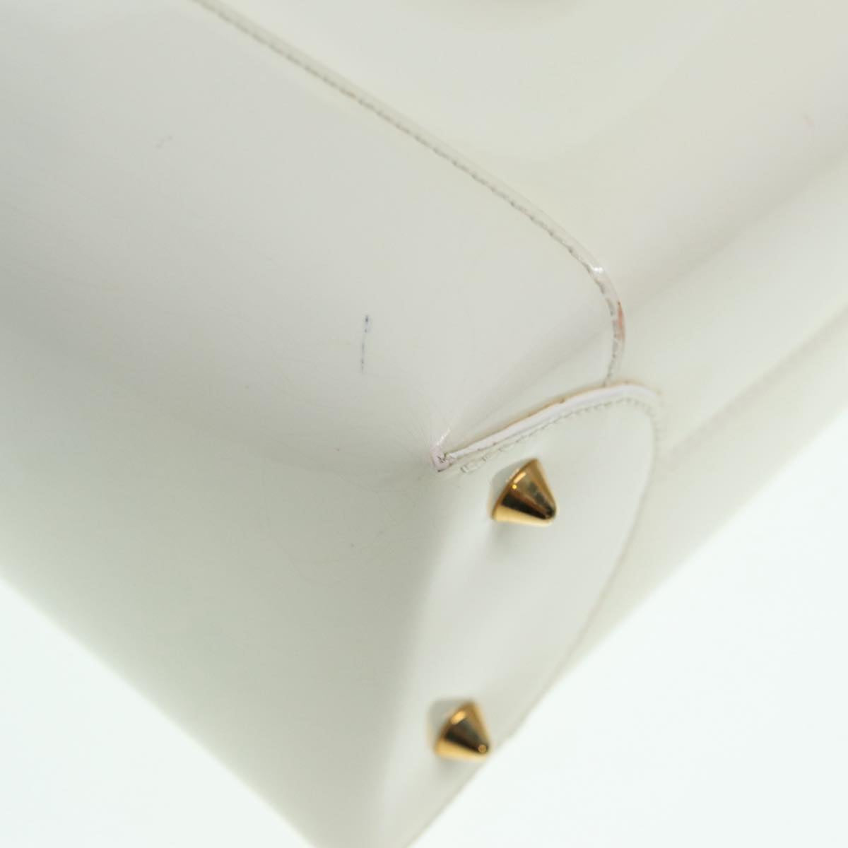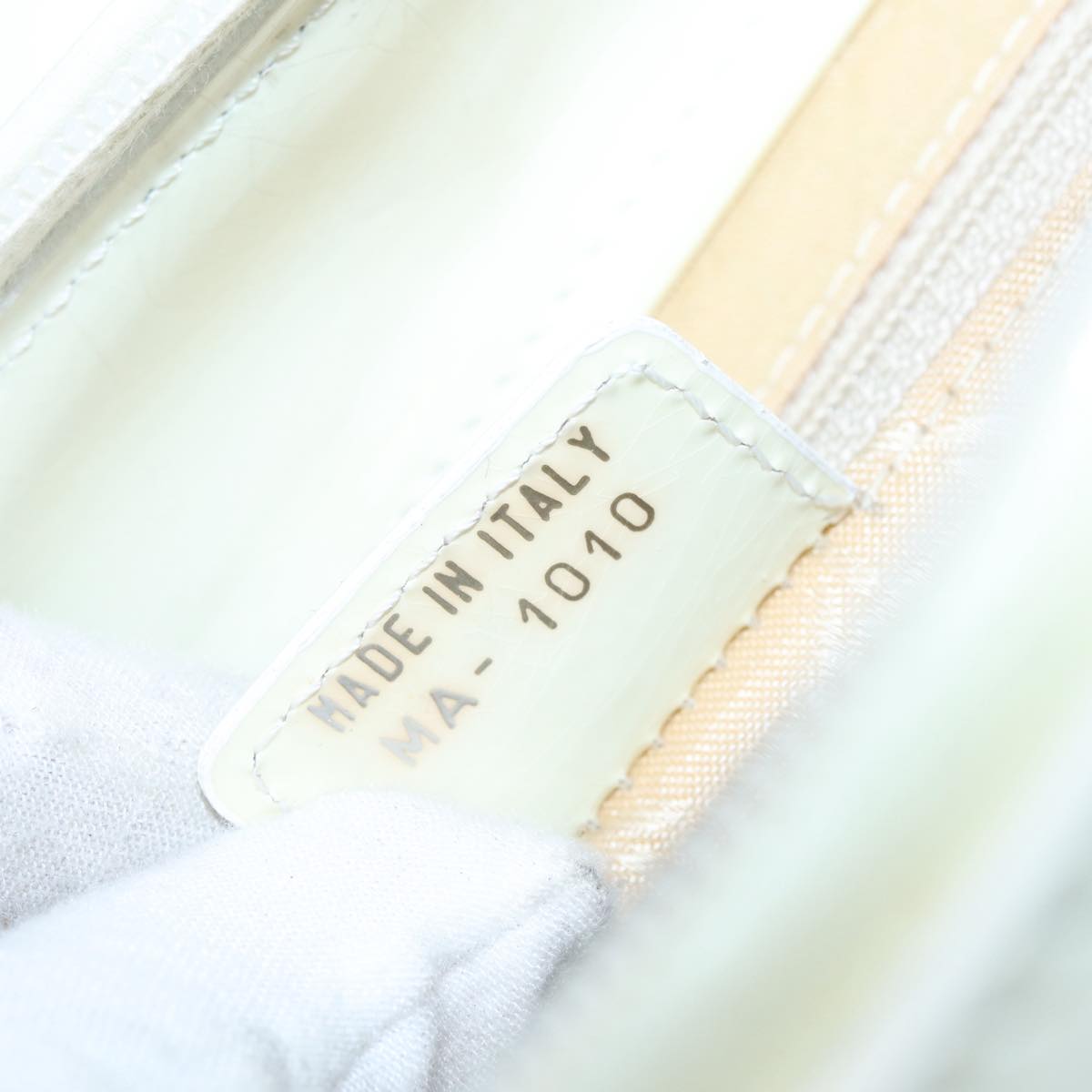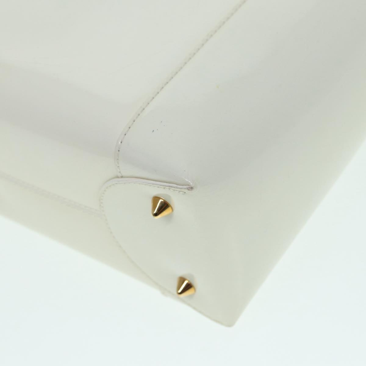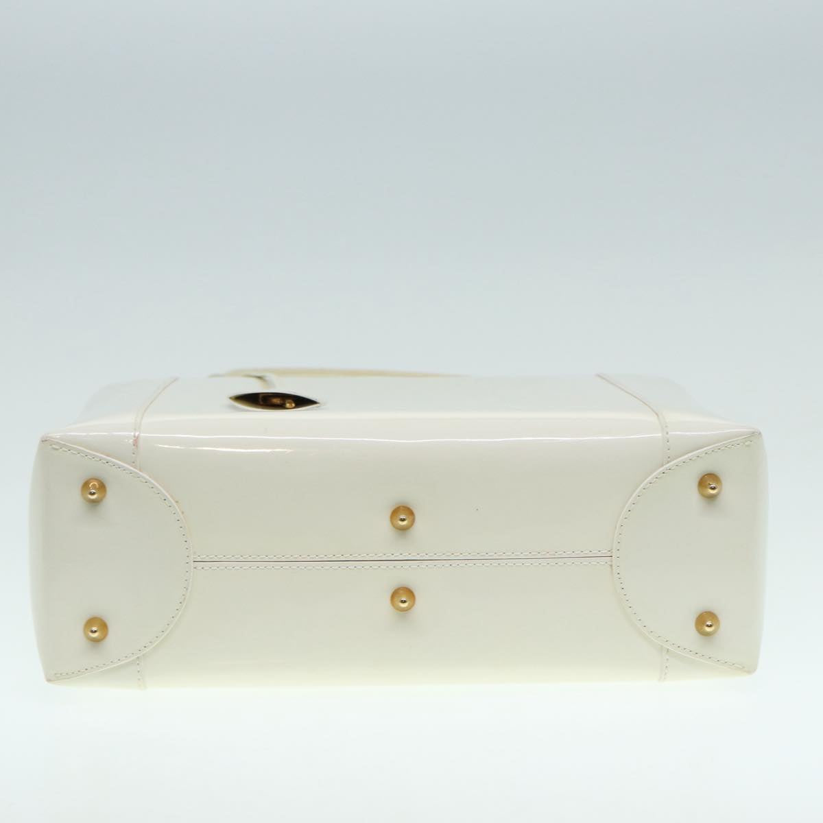 CHRISTIAN DIOR Maris Pearl Tote Bag Patent leather White Gold Auth bs17655