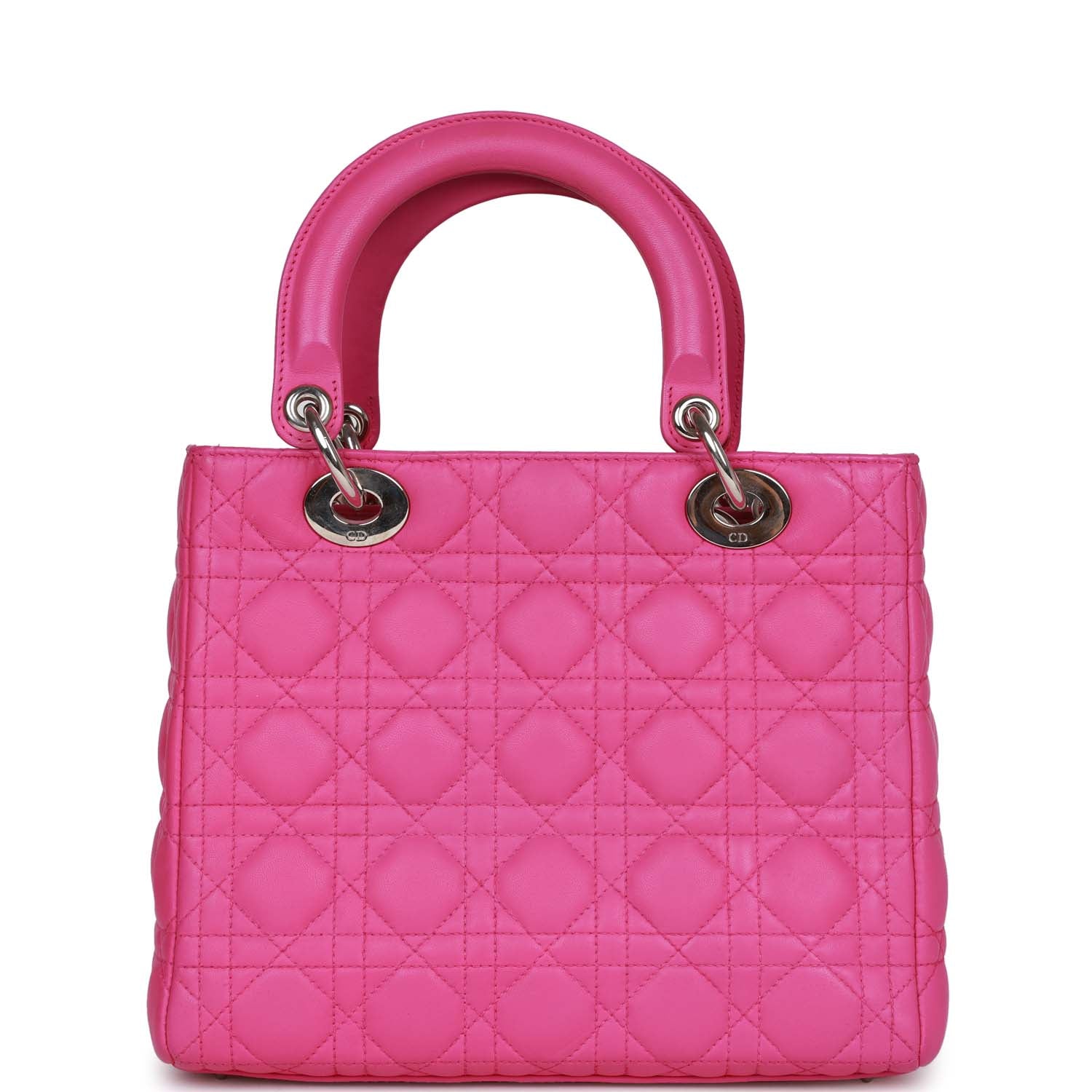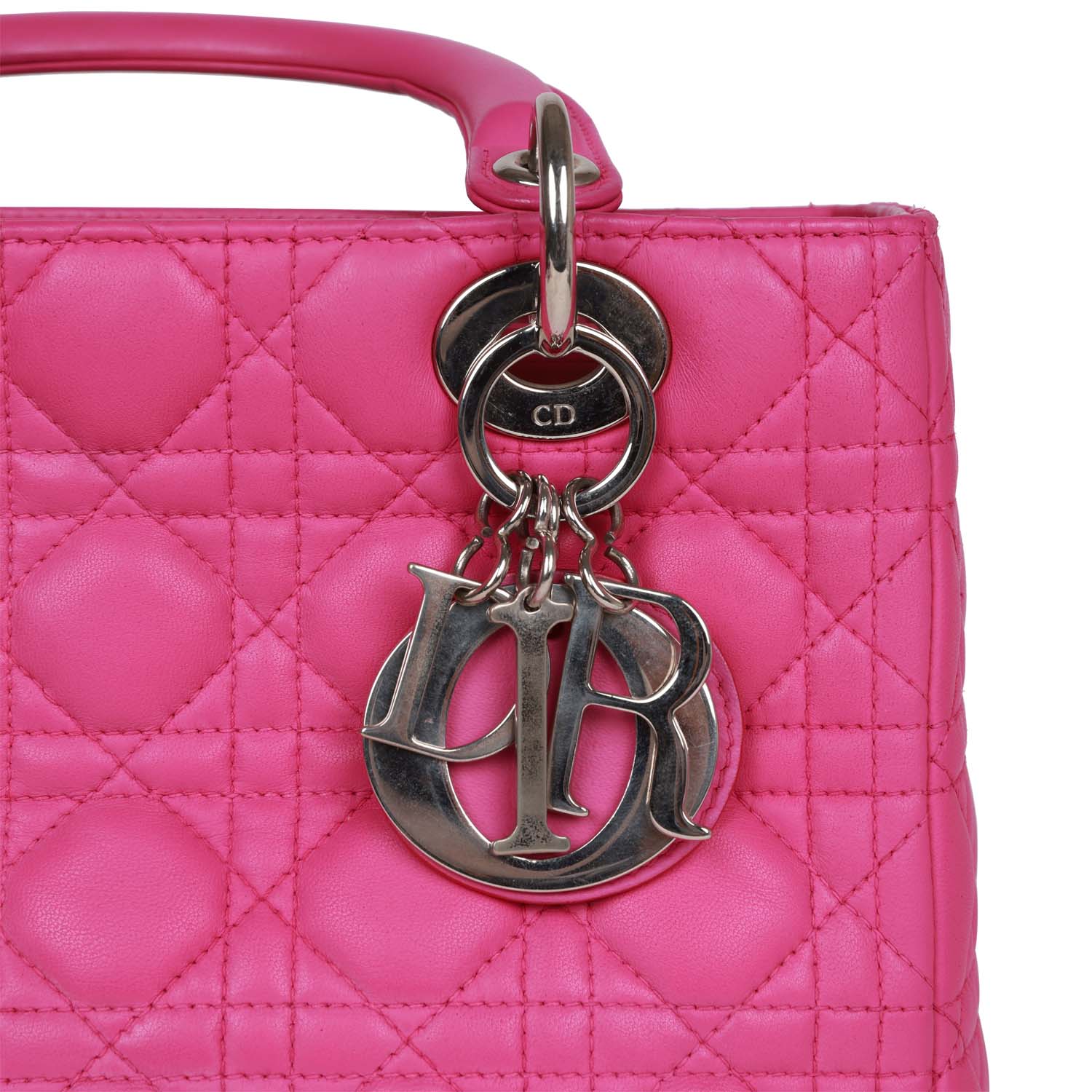 Christian Dior Medium Lady Dior Tote Fuchsia Lambskin Silver Hardware