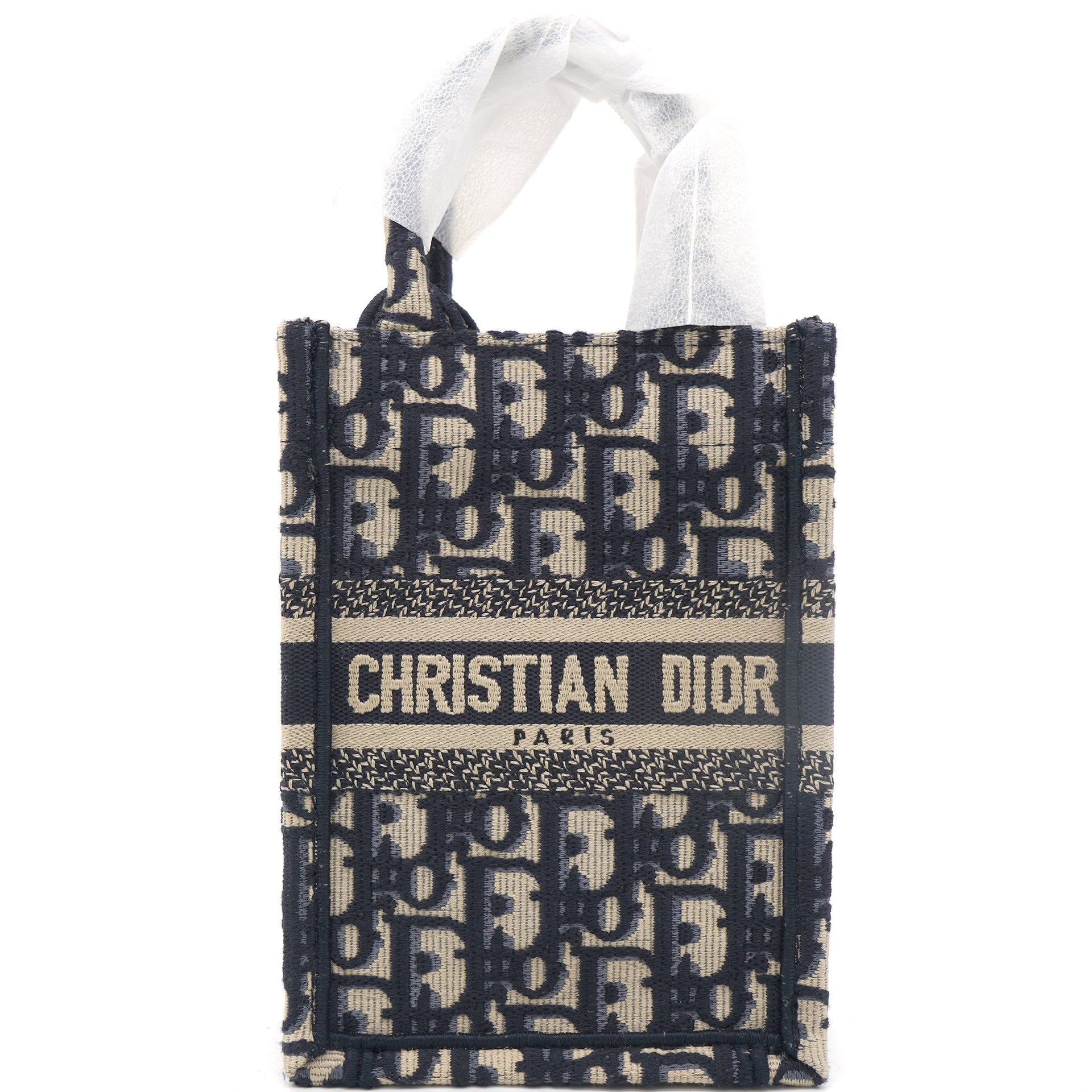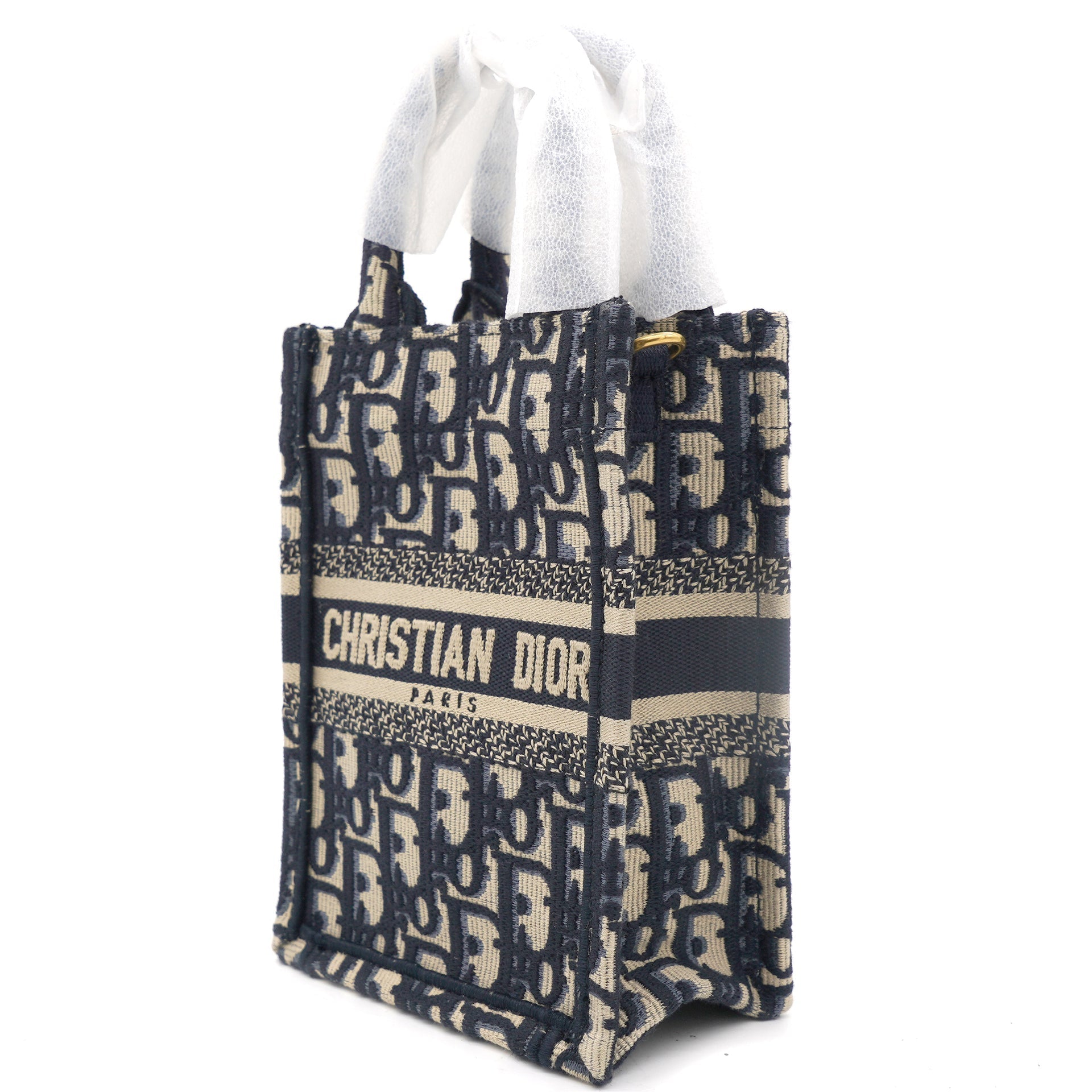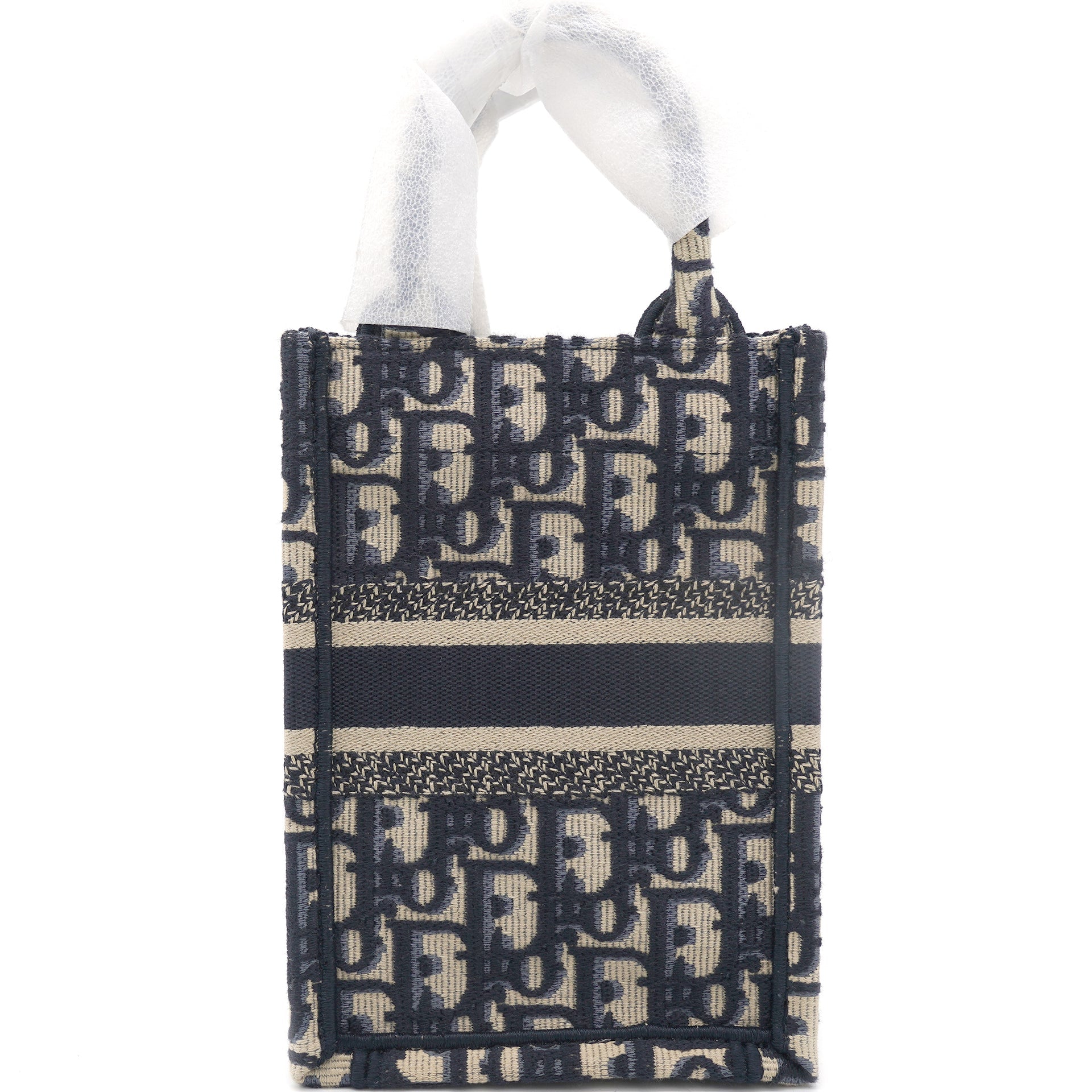 Christian Dior Mini Dior Book Tote Phone Bag In Blue Dior Oblique Embroidery