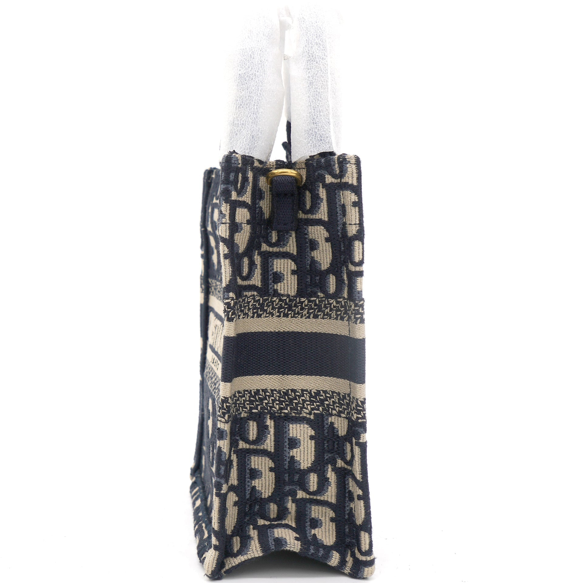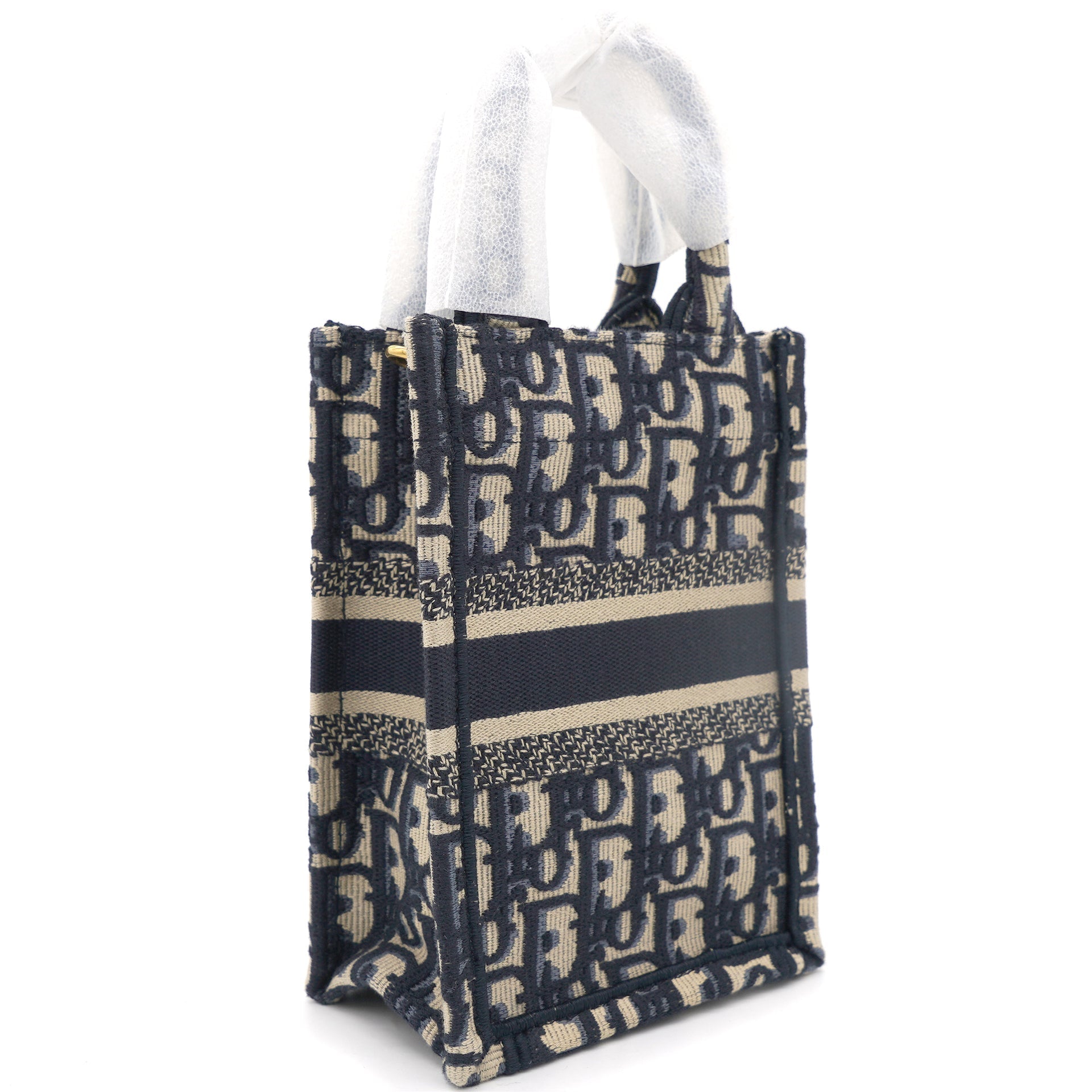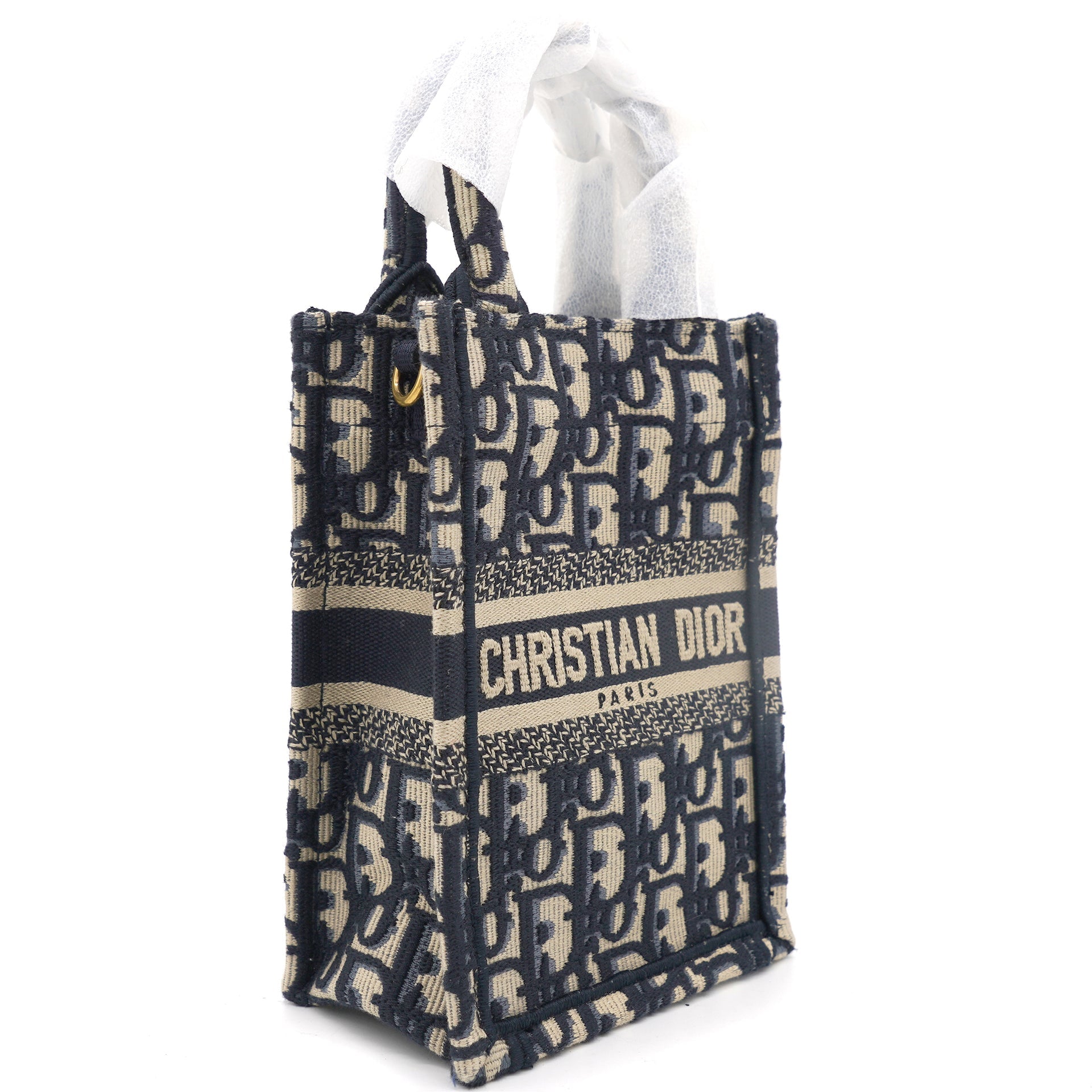 Christian Dior Mini Dior Book Tote Phone Bag In Blue Dior Oblique Embroidery