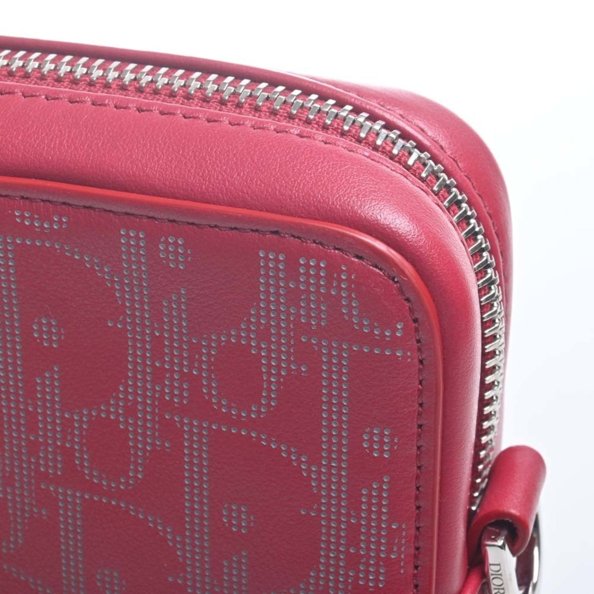 Christian Dior Oblique Leather World Tour Messenger Bag Shoulder Red Women's