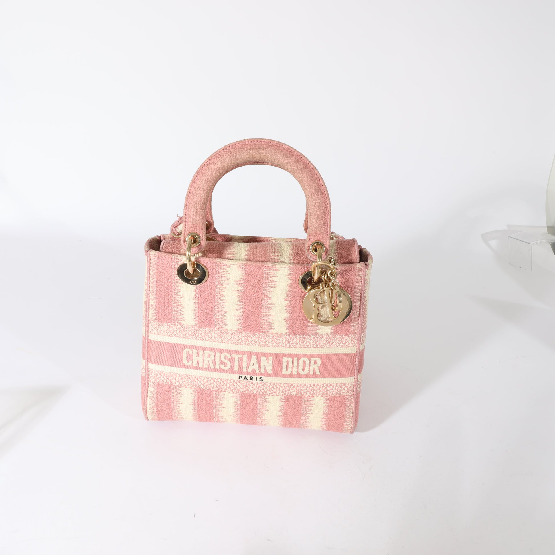 Listing Title: Christian Dior Pink Canvas Medium D-Stripes Lady D-Lite