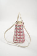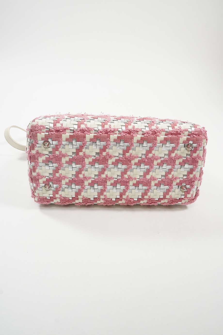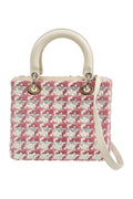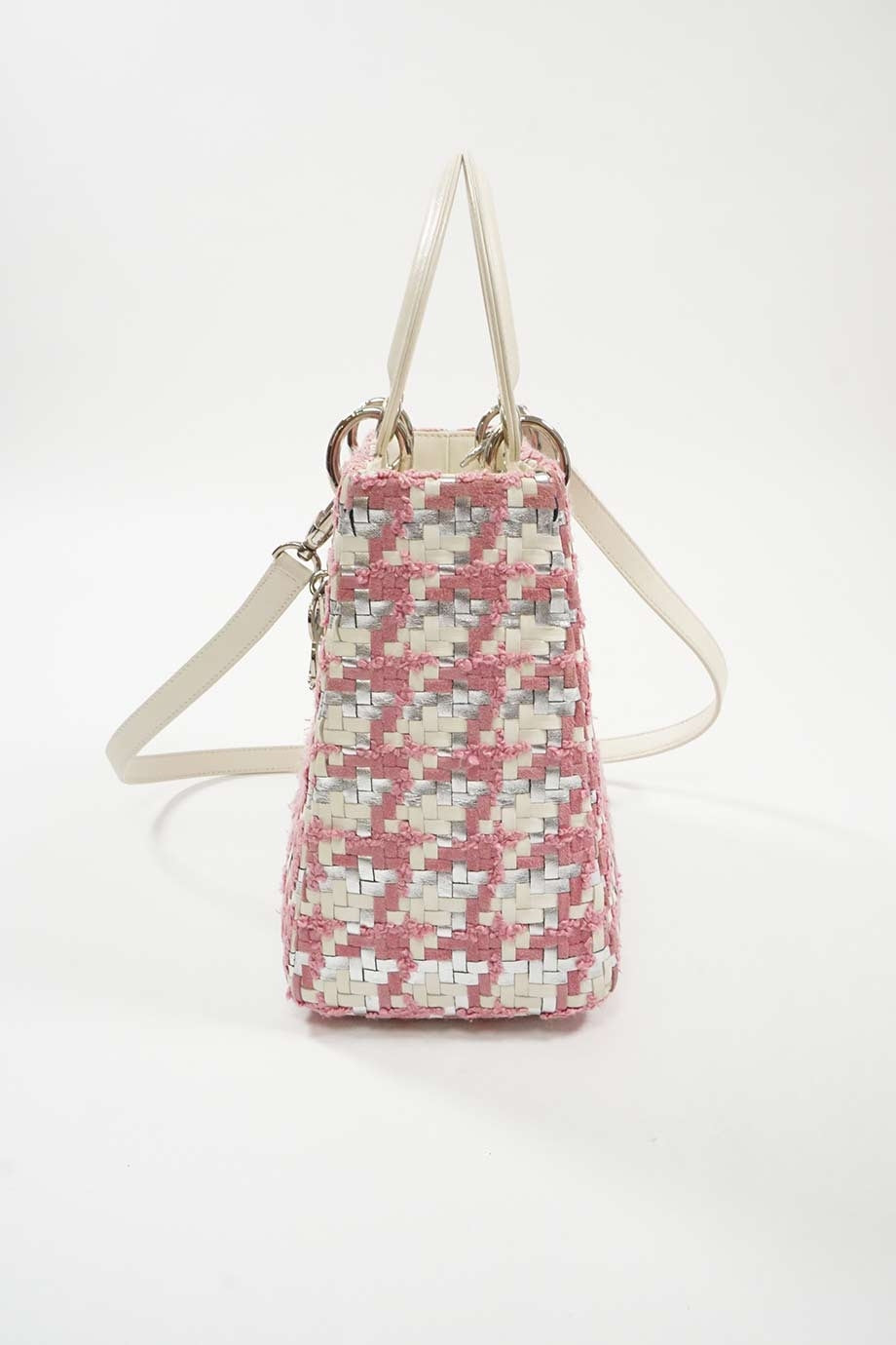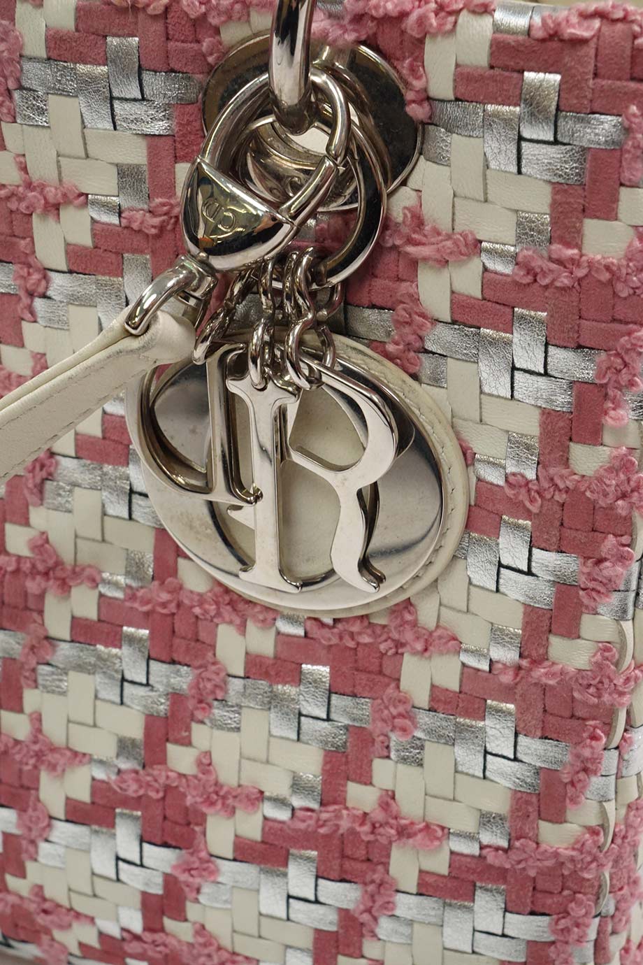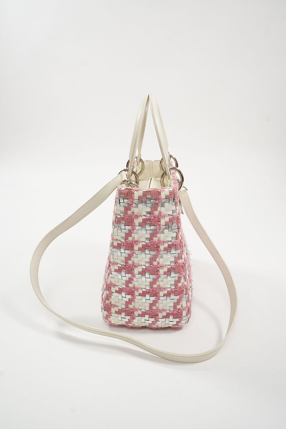 CHRISTIAN DIOR Pink Woven Leather with Tweed Lady Dior Handbag