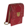 CHRISTIAN DIOR Red Leather Studded Diorama Vertical Clutch On Chain