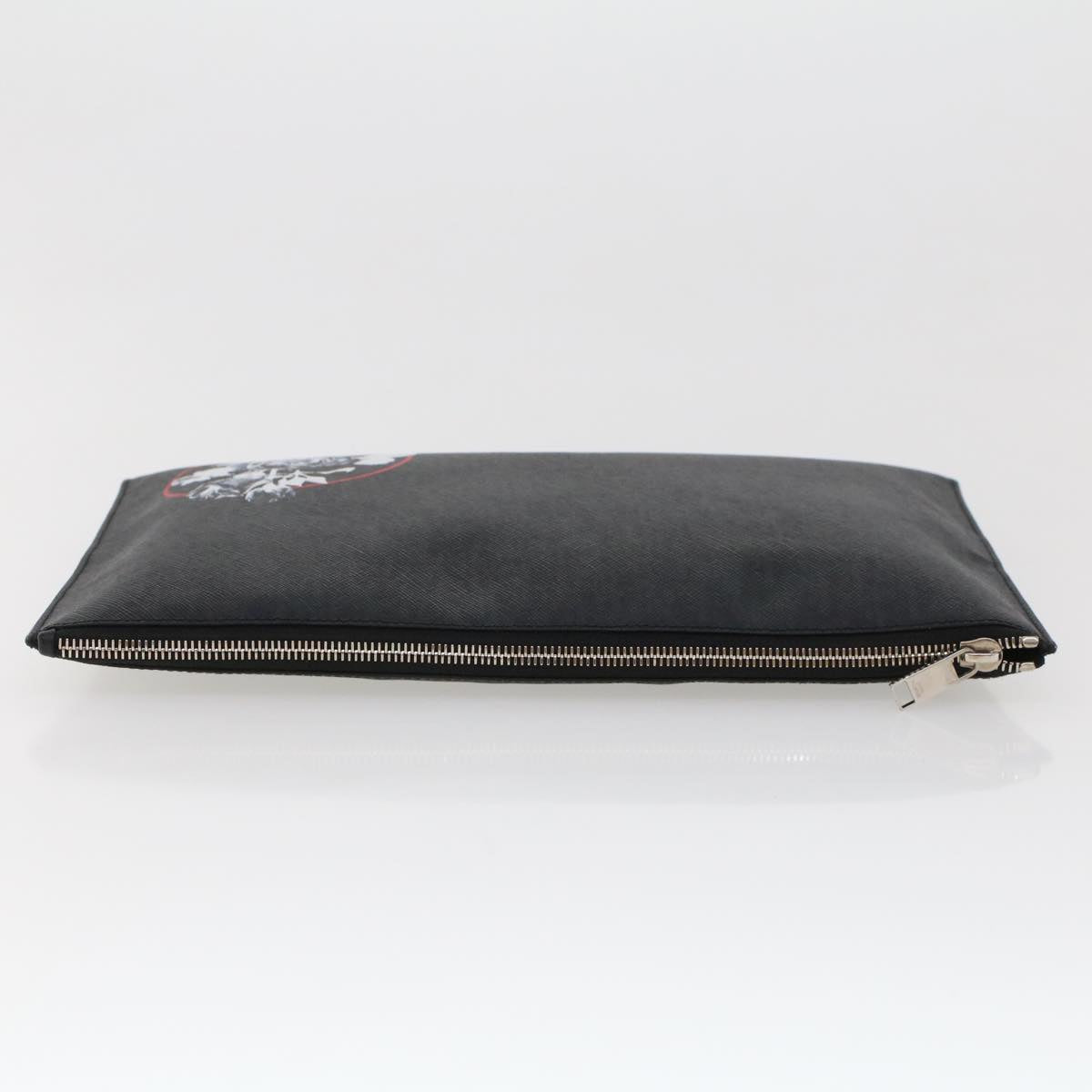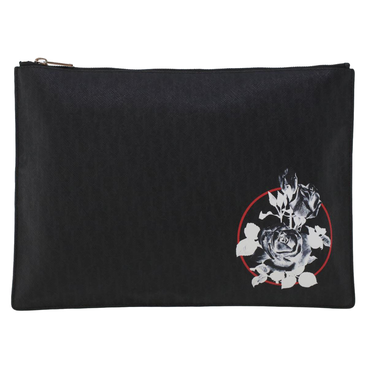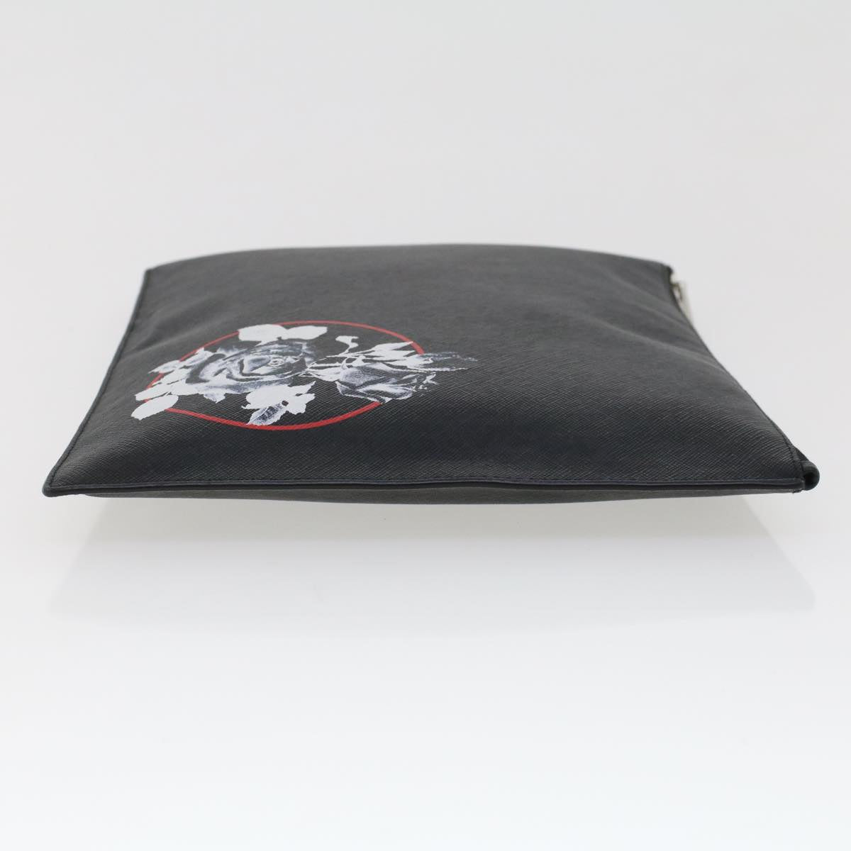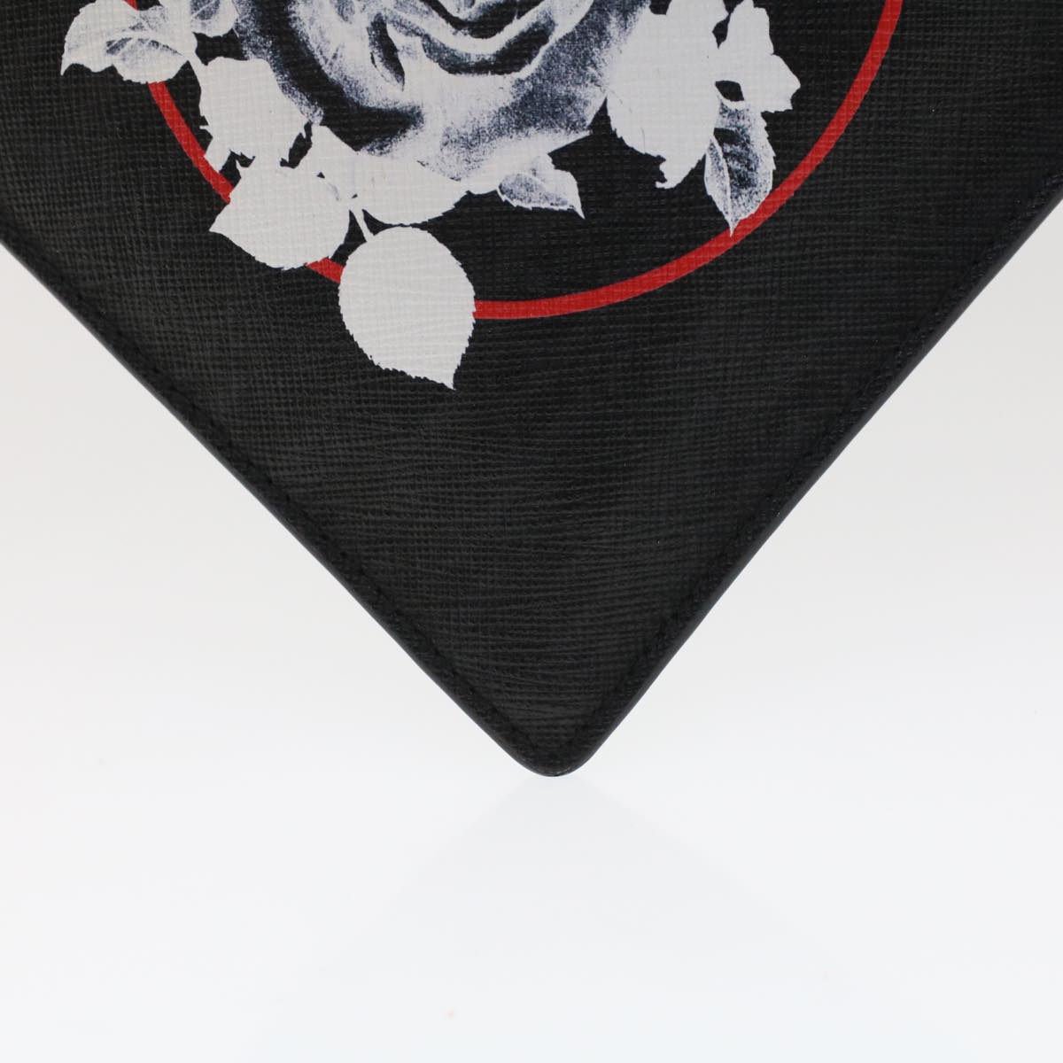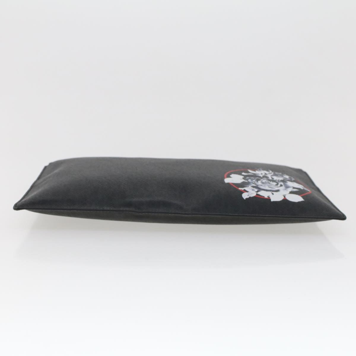 CHRISTIAN DIOR Rose Clutch Bag PVC Leather Black Auth ki3038