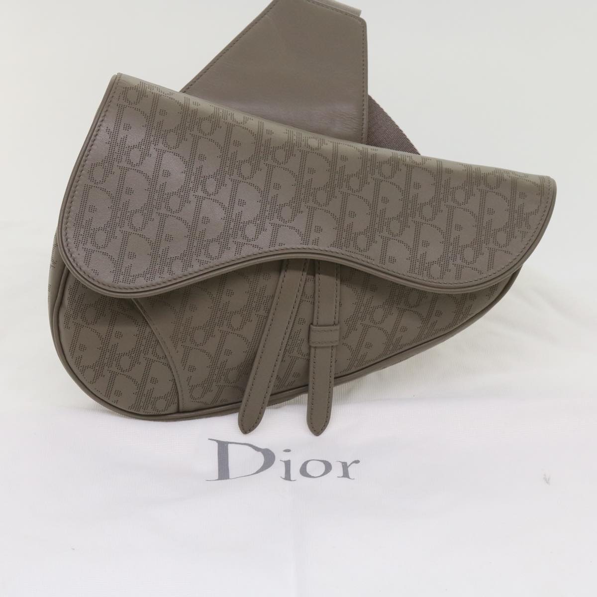 CHRISTIAN DIOR Saddle bag Oblique Trotter Canvas Shoulder Bag Gray Auth 65327A