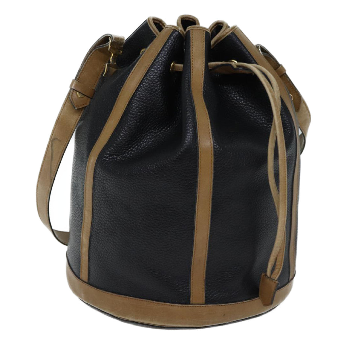 CHRISTIAN DIOR Shoulder Bag Leather Black Auth yk11682