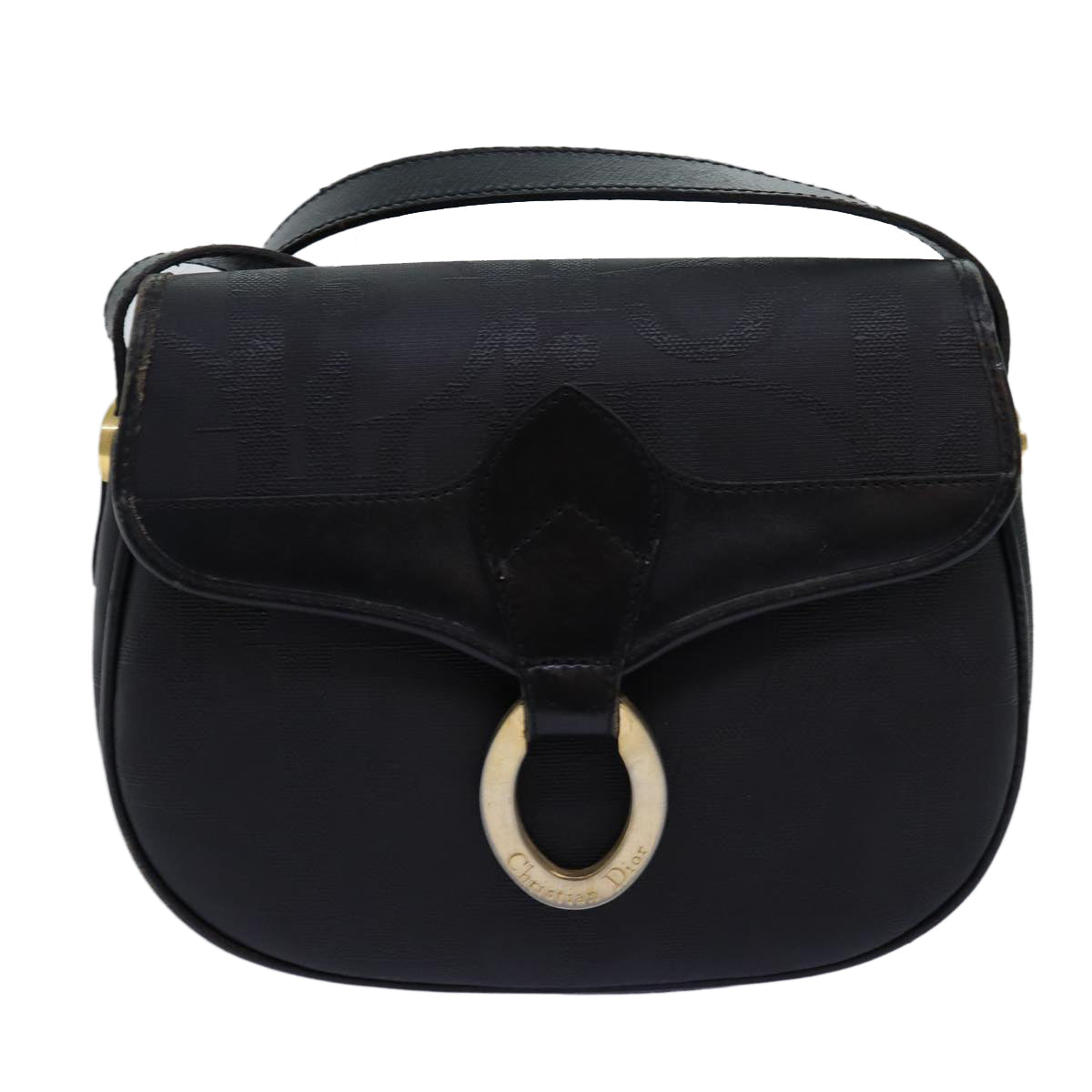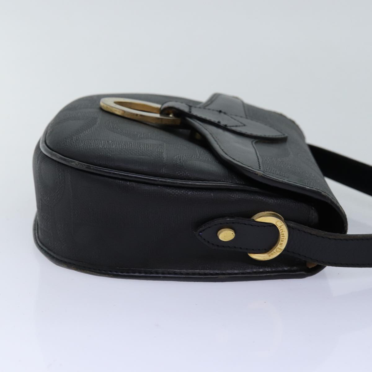 CHRISTIAN DIOR Shoulder Bag Leather Black Auth yk12454