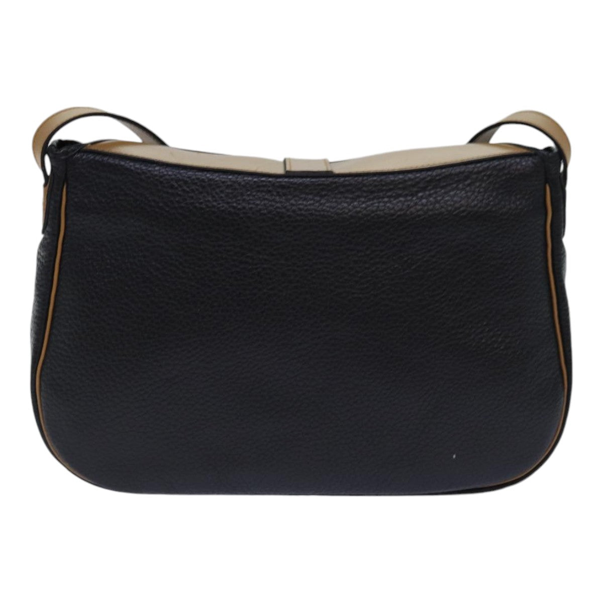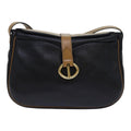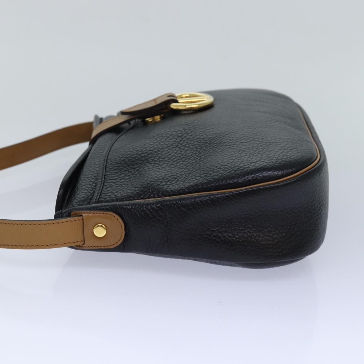 CHRISTIAN DIOR Shoulder Bag Leather Black Brown gold Auth yk14140