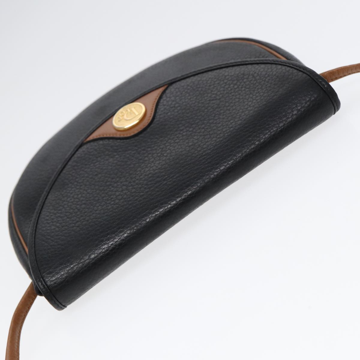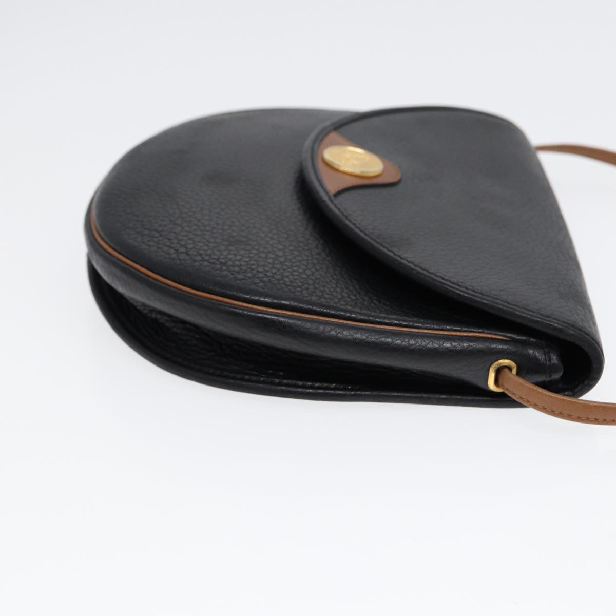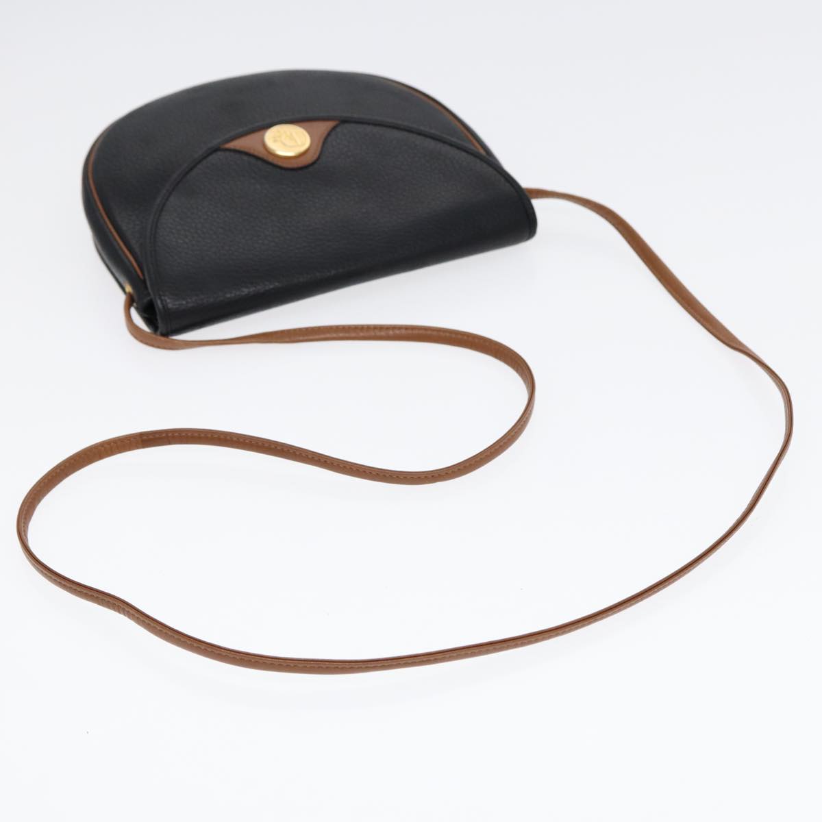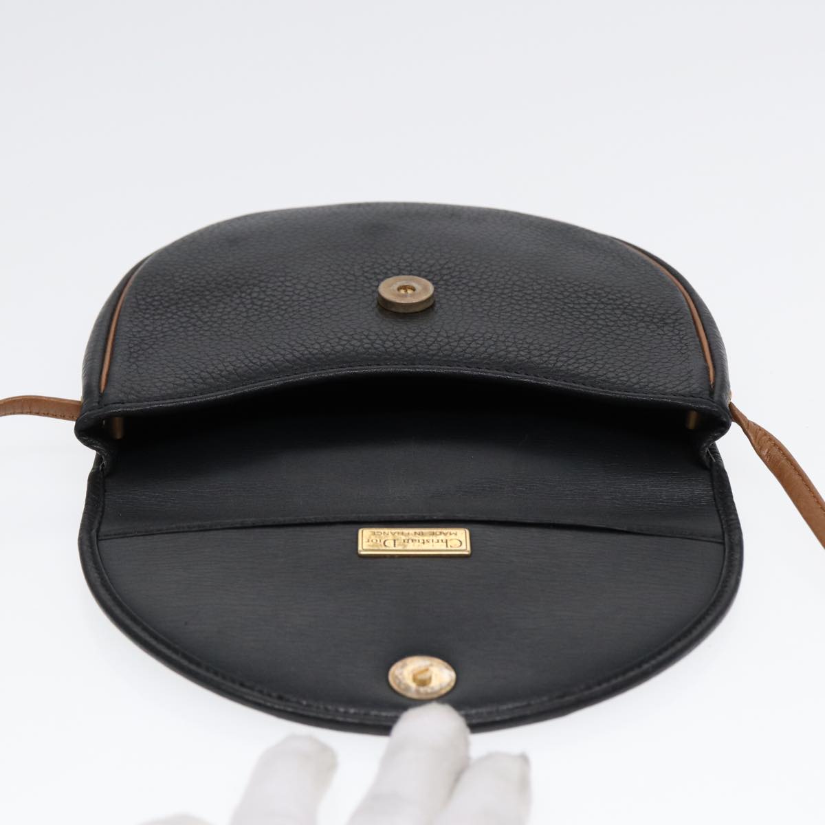 CHRISTIAN DIOR Shoulder Bag Leather Black Gold Auth ep5514