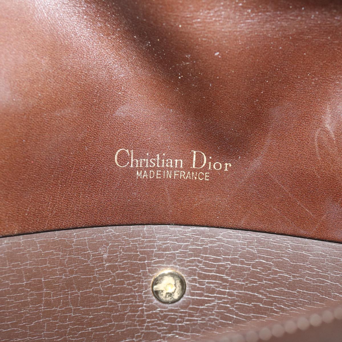 CHRISTIAN DIOR Shoulder Bag Leather Brown Auth hk953