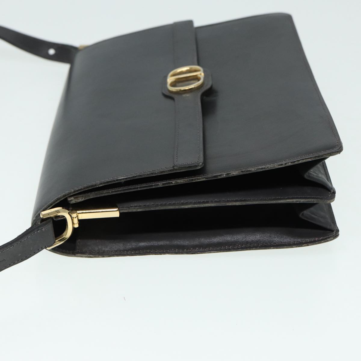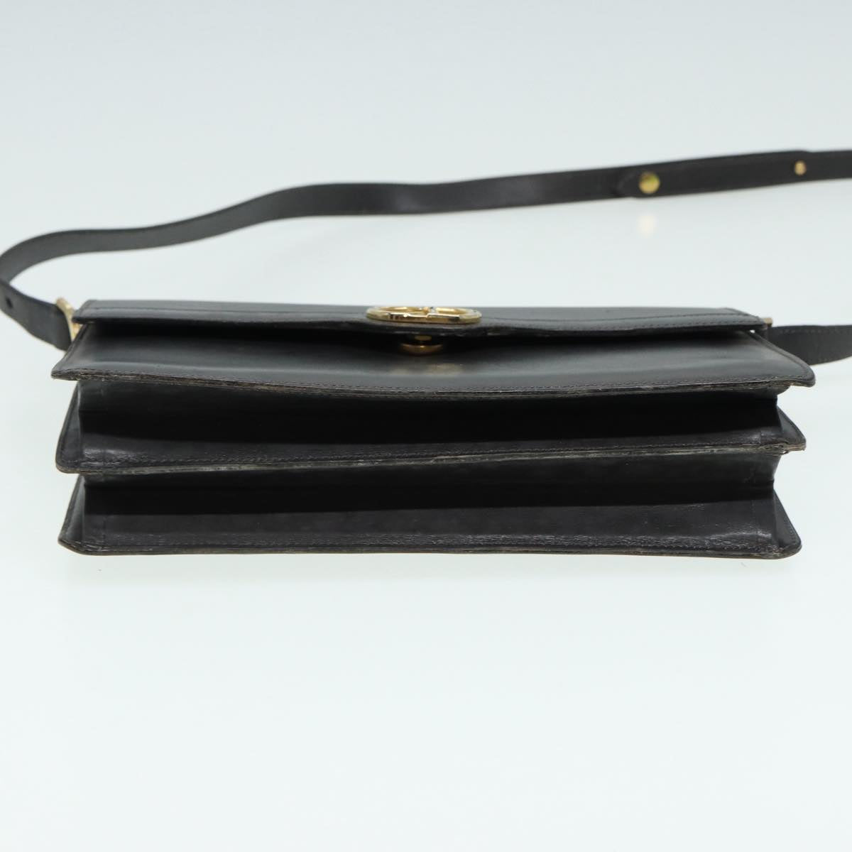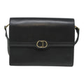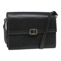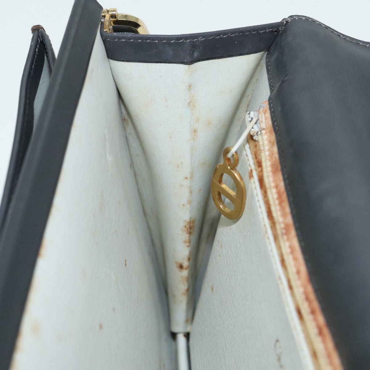 CHRISTIAN DIOR Shoulder Bag Leather Gray Gold Auth 87198