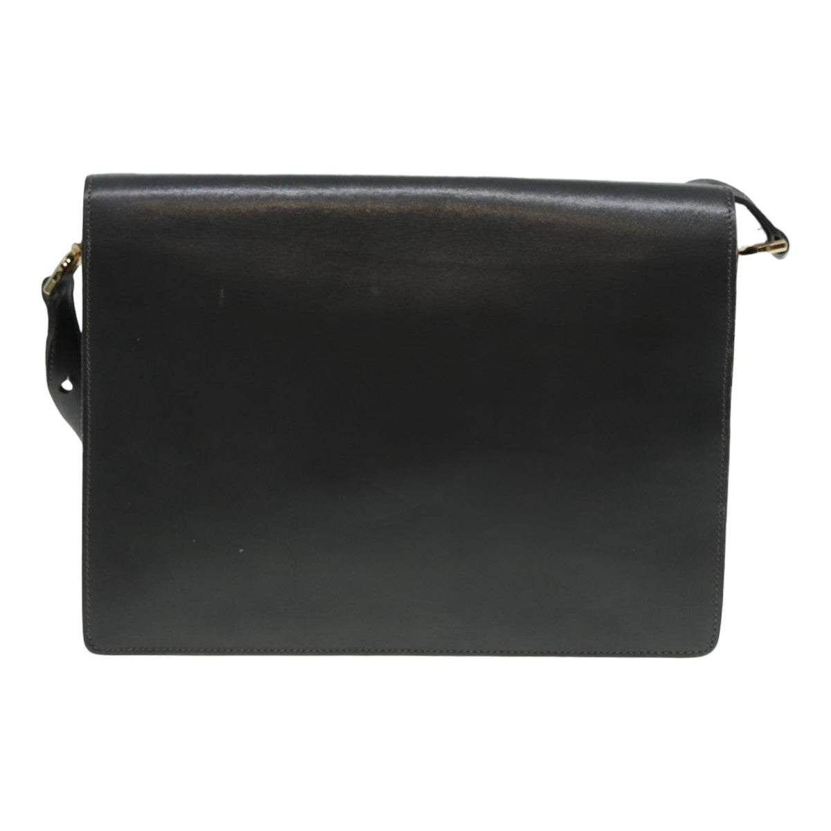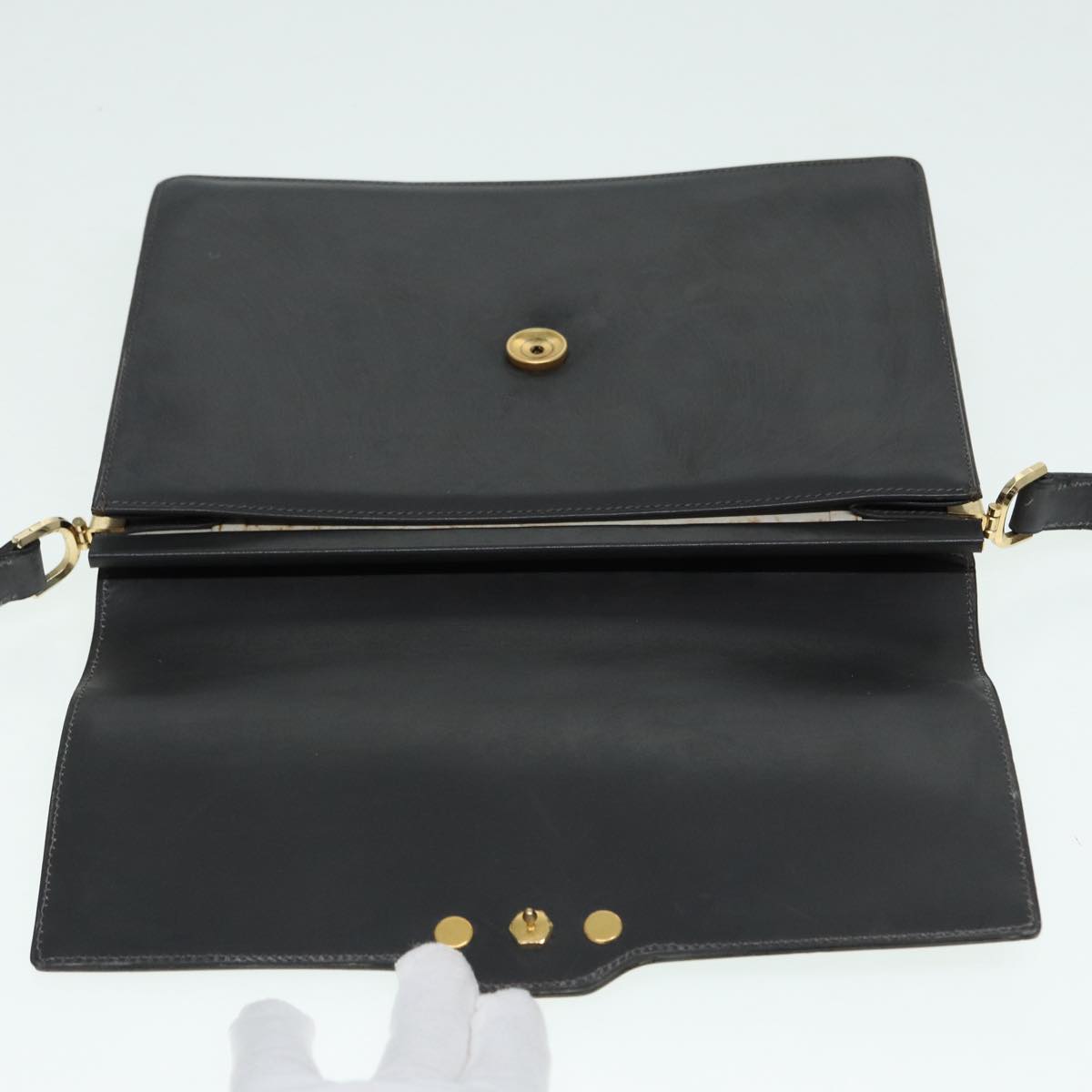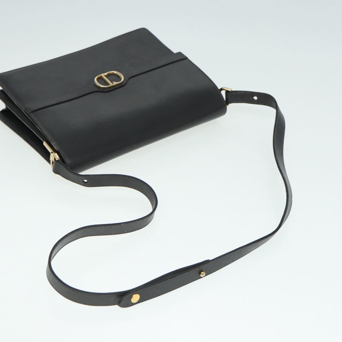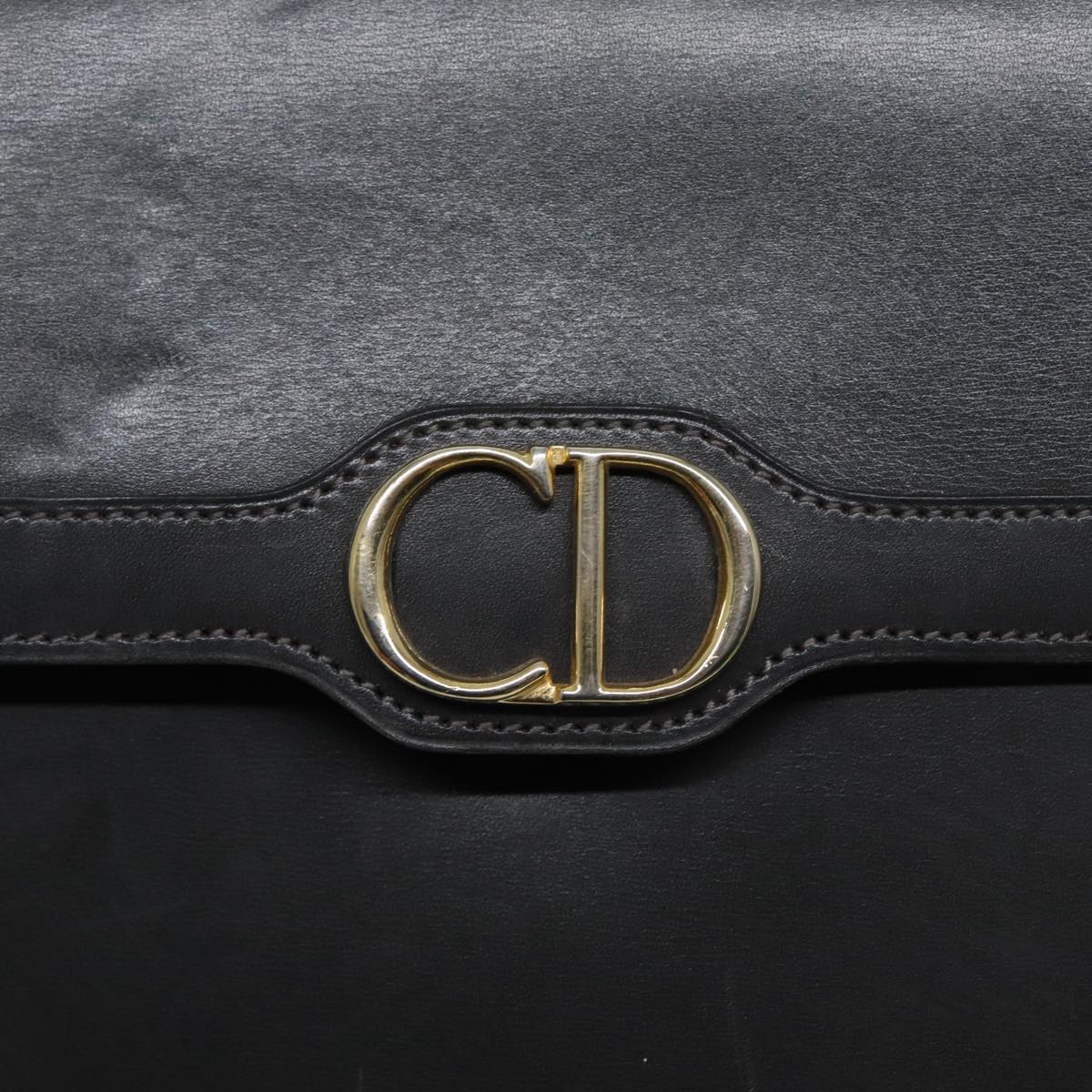 CHRISTIAN DIOR Shoulder Bag Leather Gray Gold Auth 87198