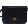 CHRISTIAN DIOR Shoulder Bag Leather Navy Gold Auth yk14399