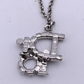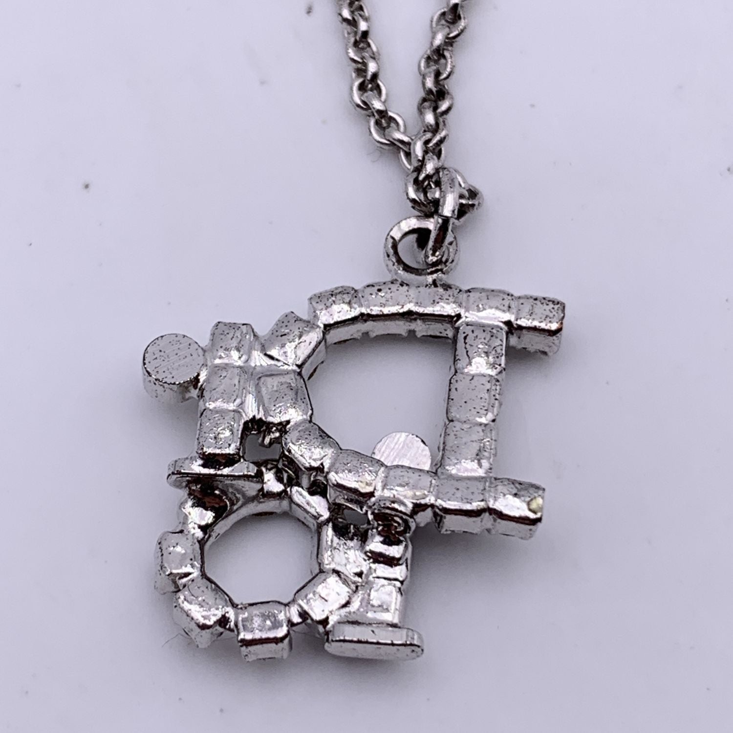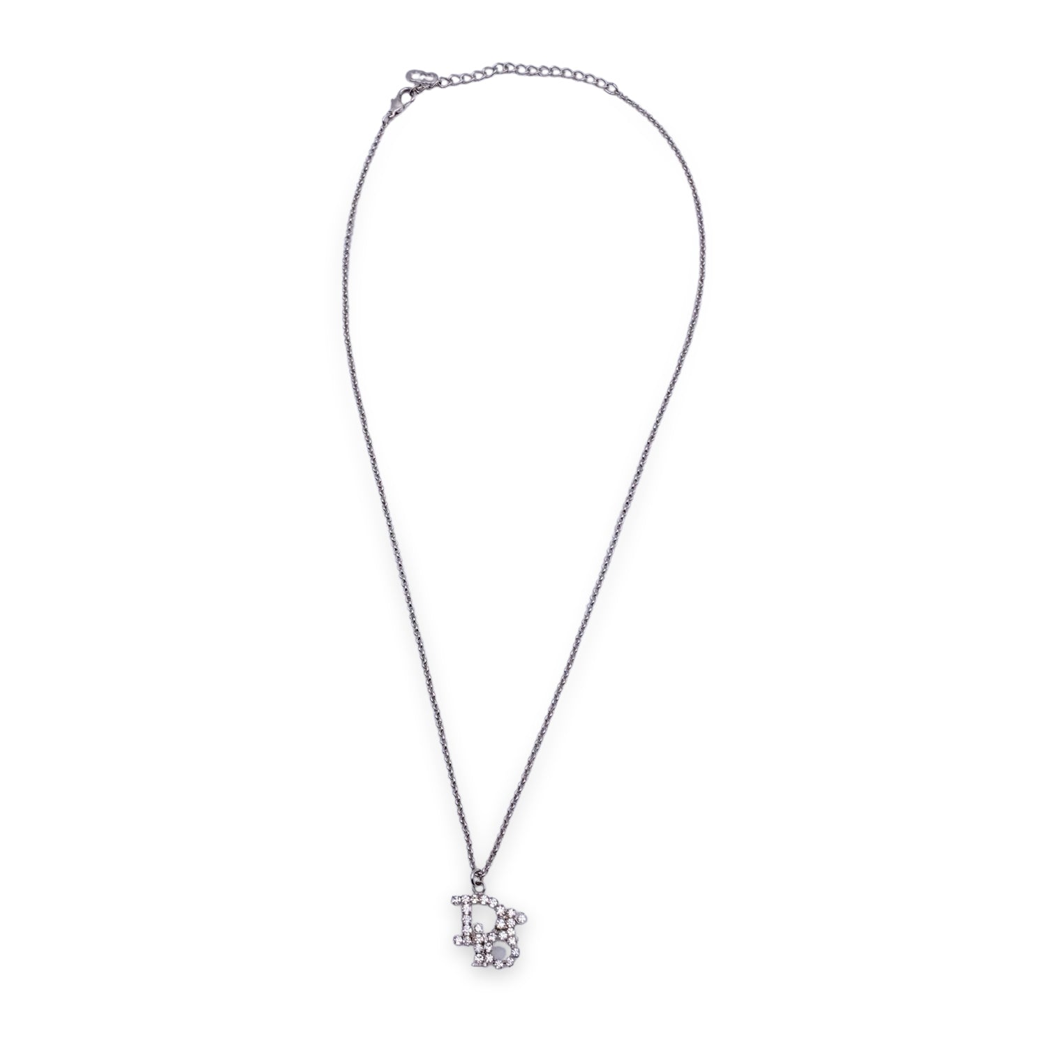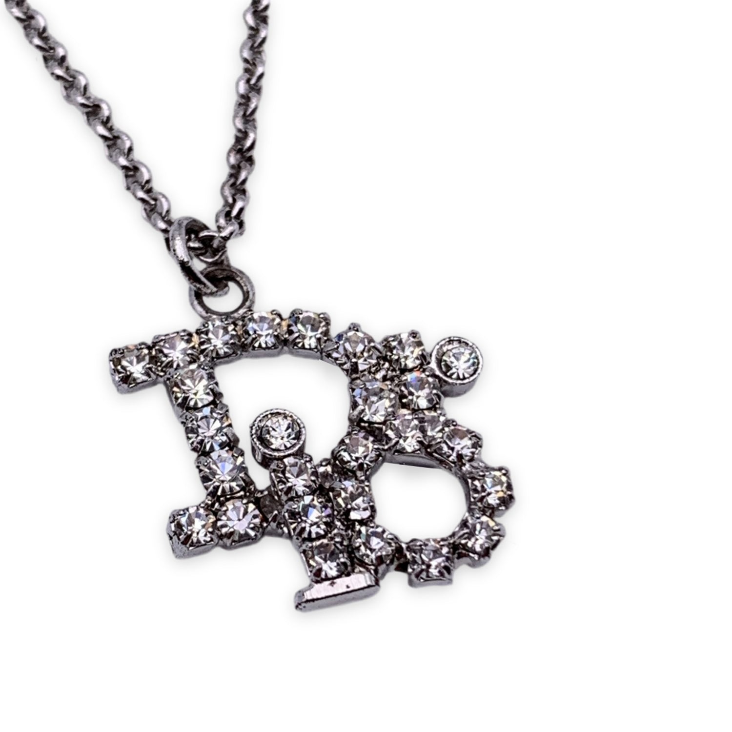 CHRISTIAN DIOR Silver Metal Crystals Oblique Logo Necklace