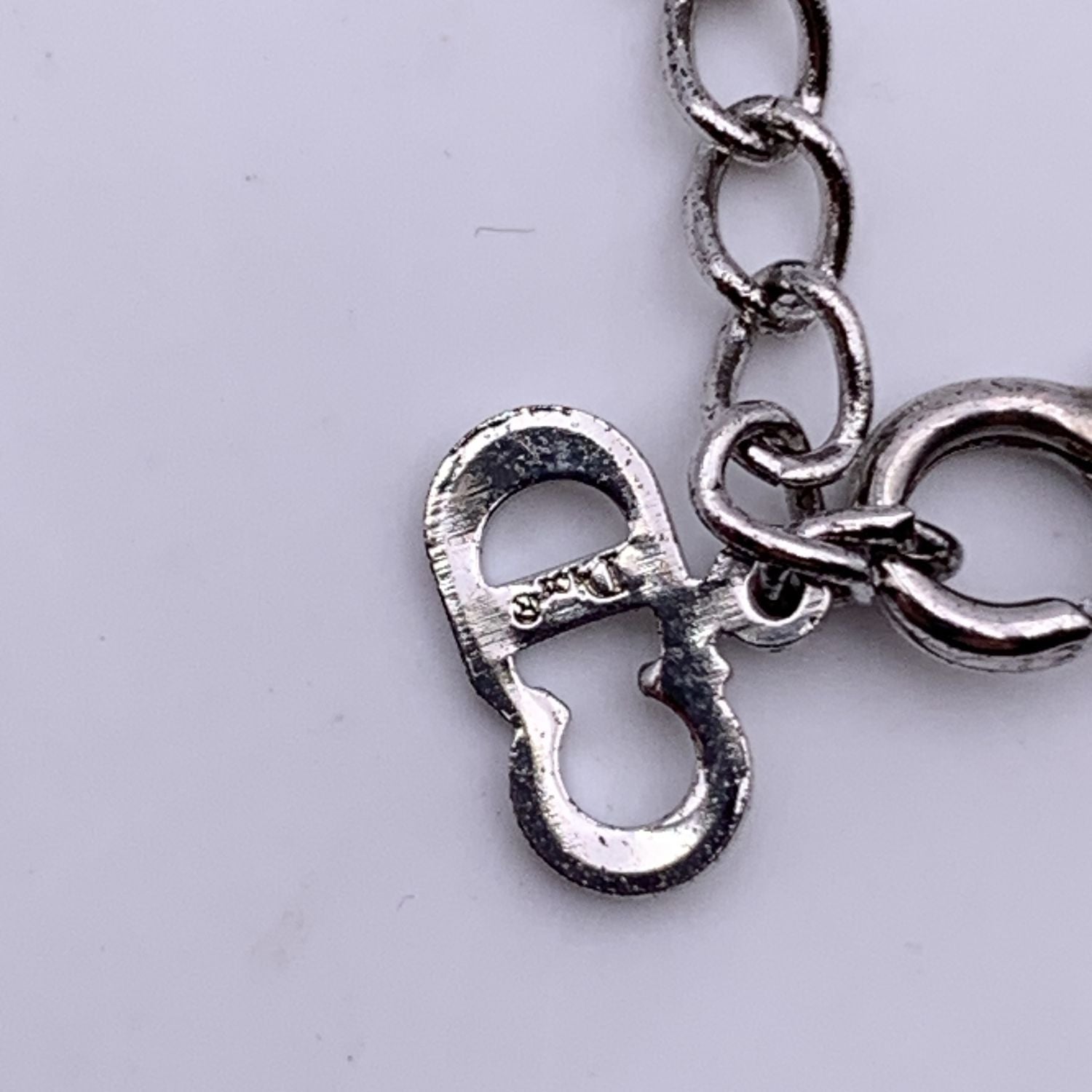 Vintage Christian Dior Silver Metal Chain Necklace With Oblique Dior Logo Pendant.