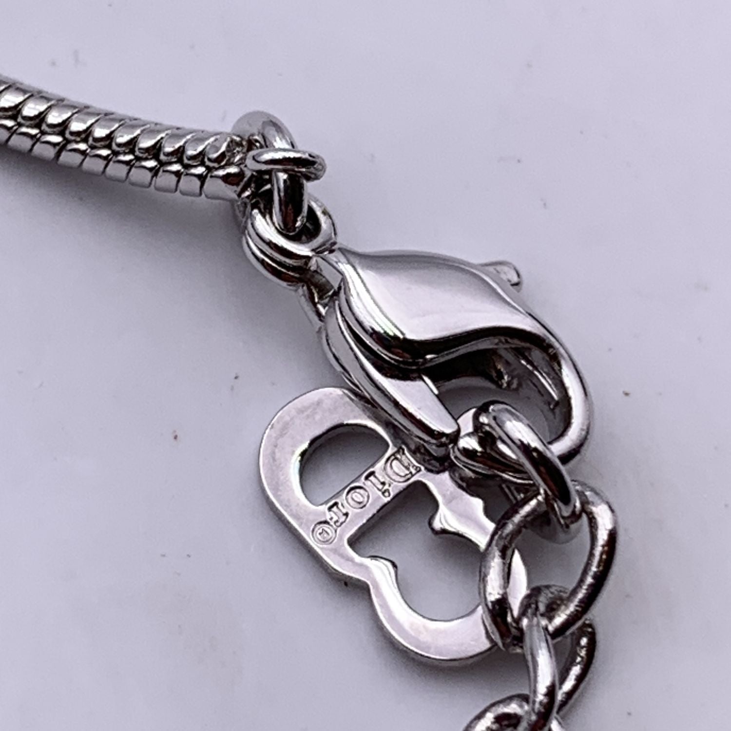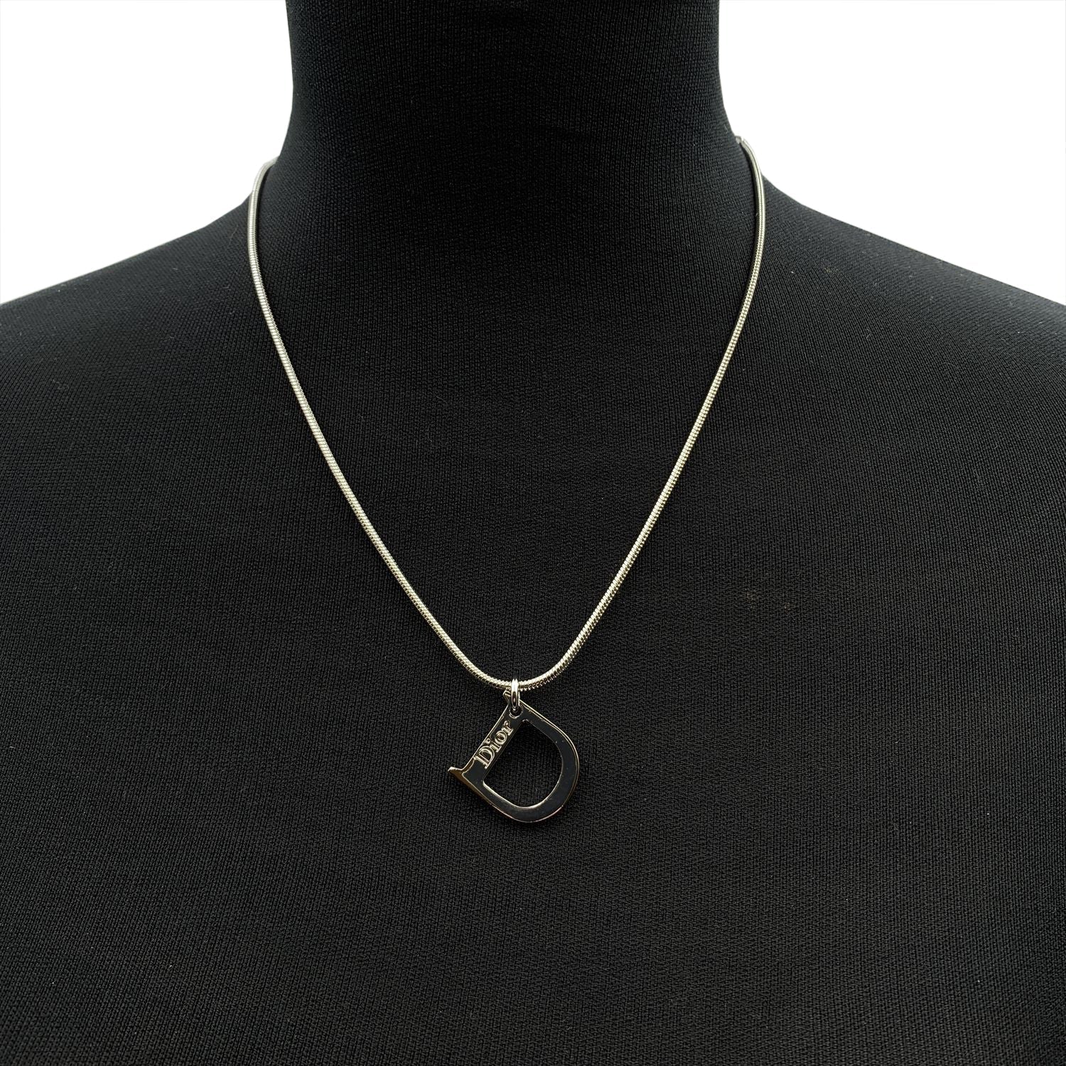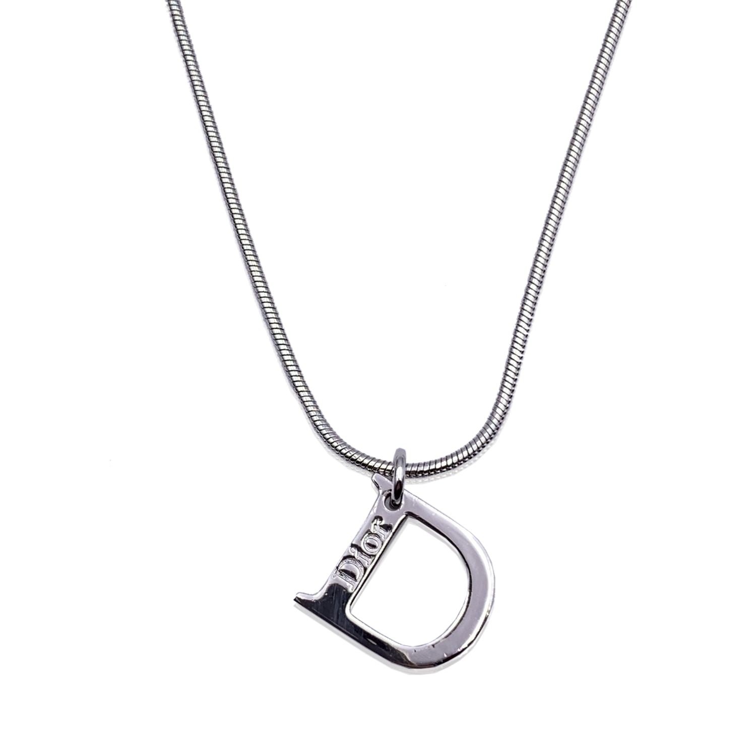CHRISTIAN DIOR Silver Metal D Logo Pendant Chain Necklace