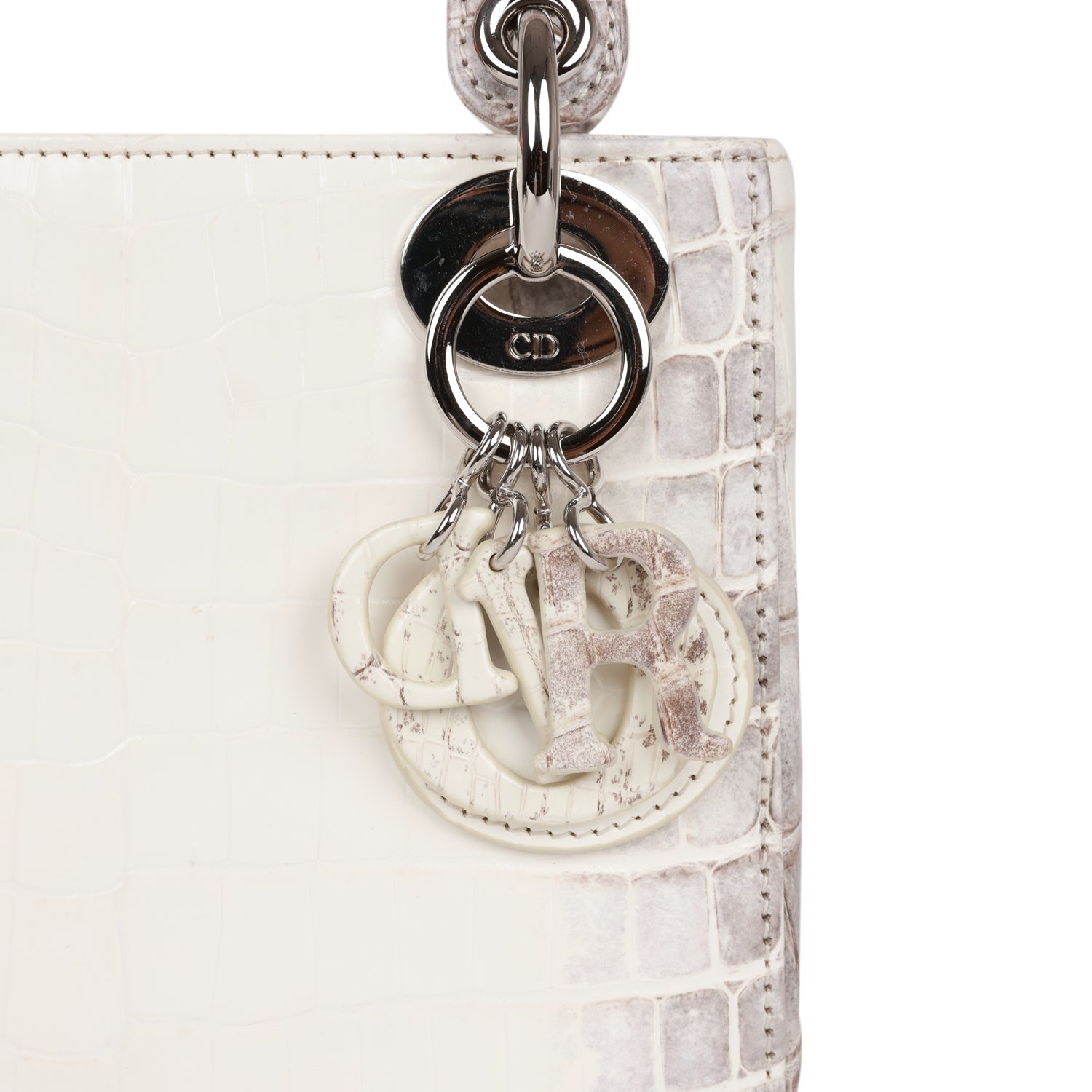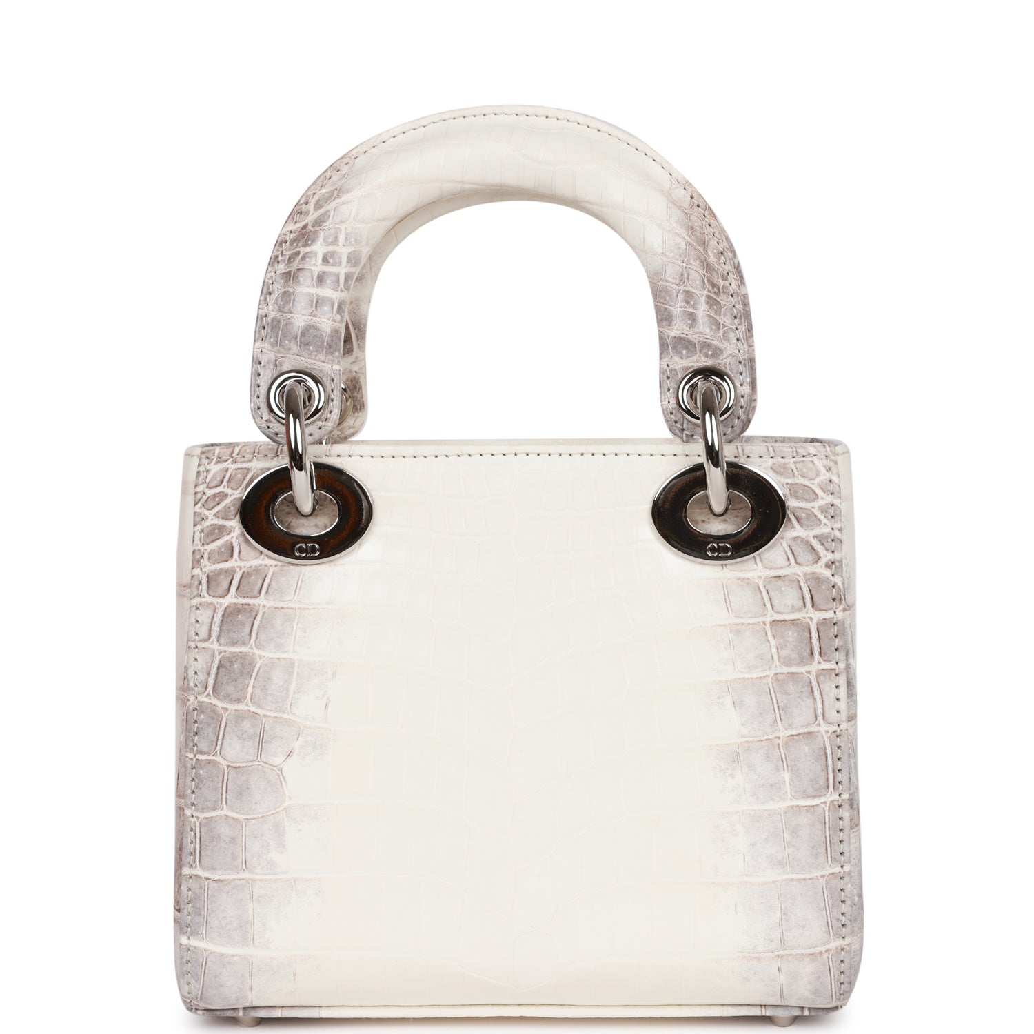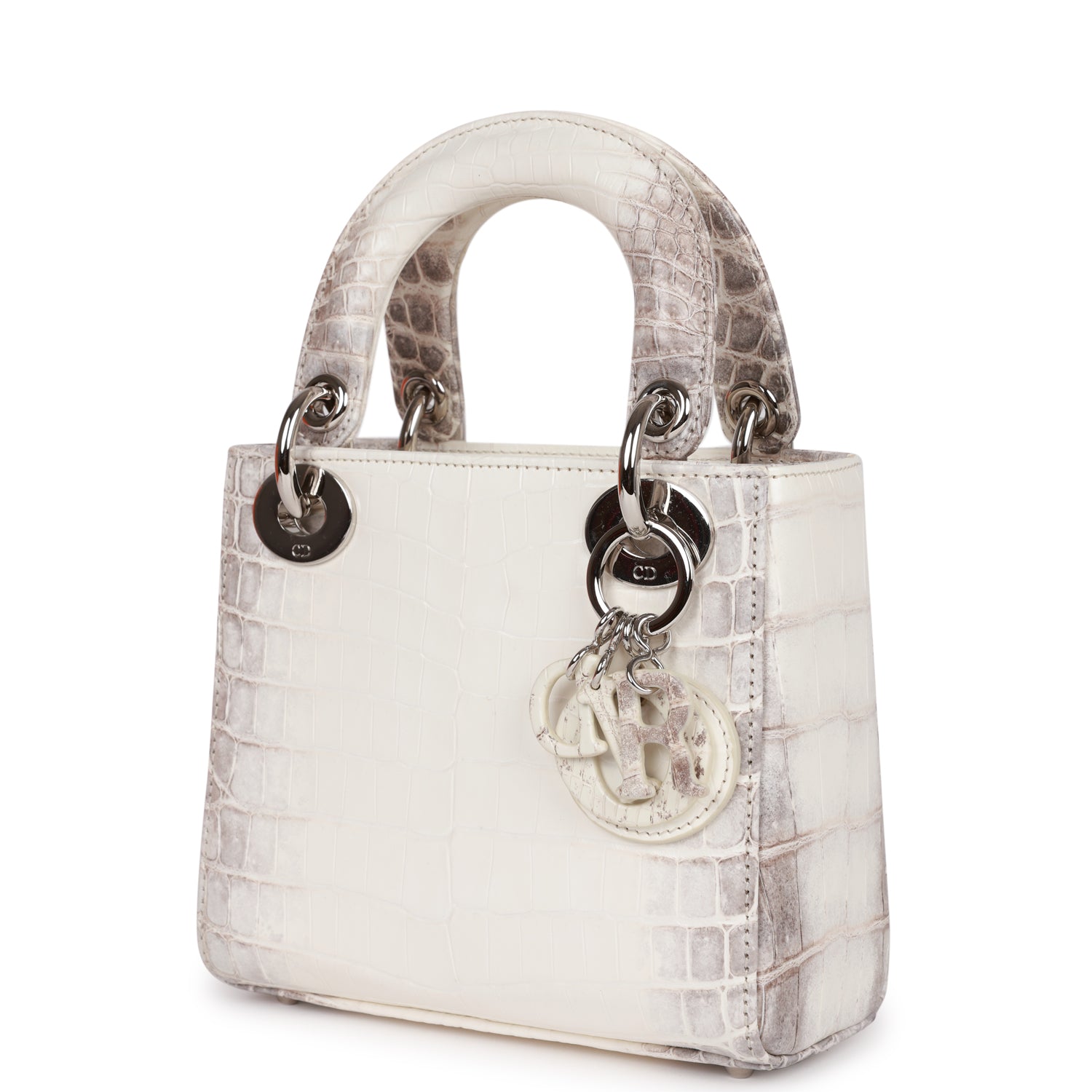 Christian Dior Small Lady Dior Tote White Himalaya Crocodile Silver Hardware