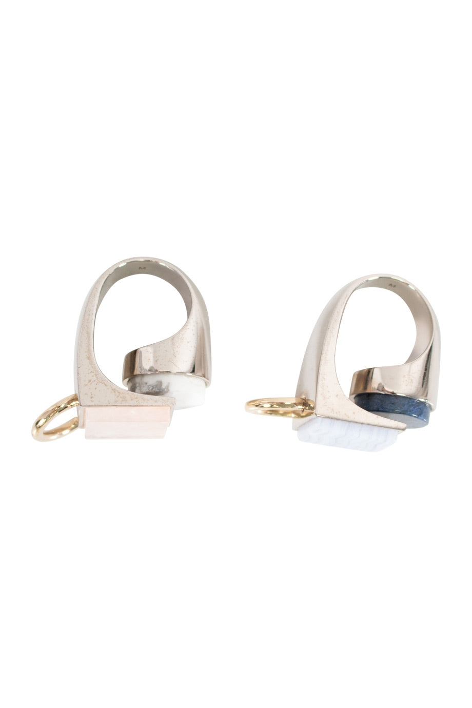 CHRISTIAN DIOR Stones embellished chunky geometric ring set [pink and white, light blue and dark blue]