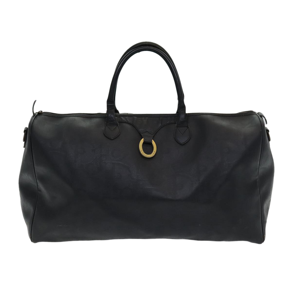 CHRISTIAN DIOR Trotter Canvas Boston Bag Black Auth am6570