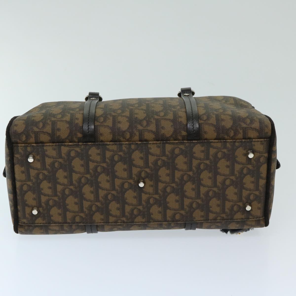 CHRISTIAN DIOR Trotter Canvas Chain Hand Bag PVC Brown Auth am5959