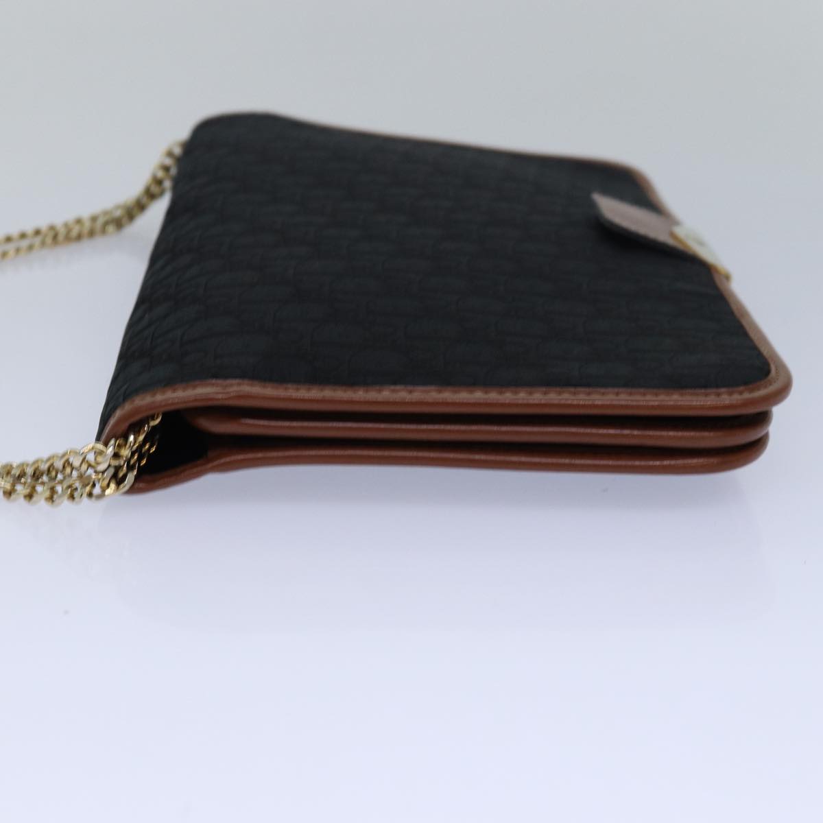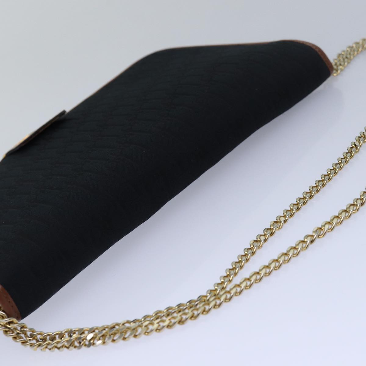 CHRISTIAN DIOR Trotter Canvas Chain Shoulder Bag Black Auth 78392