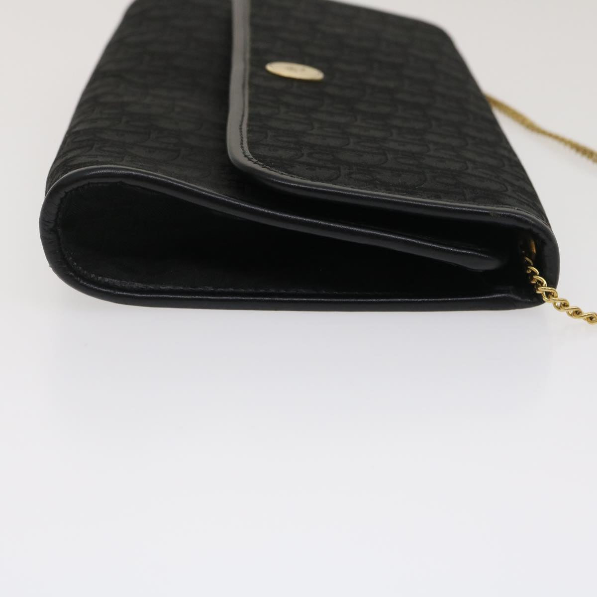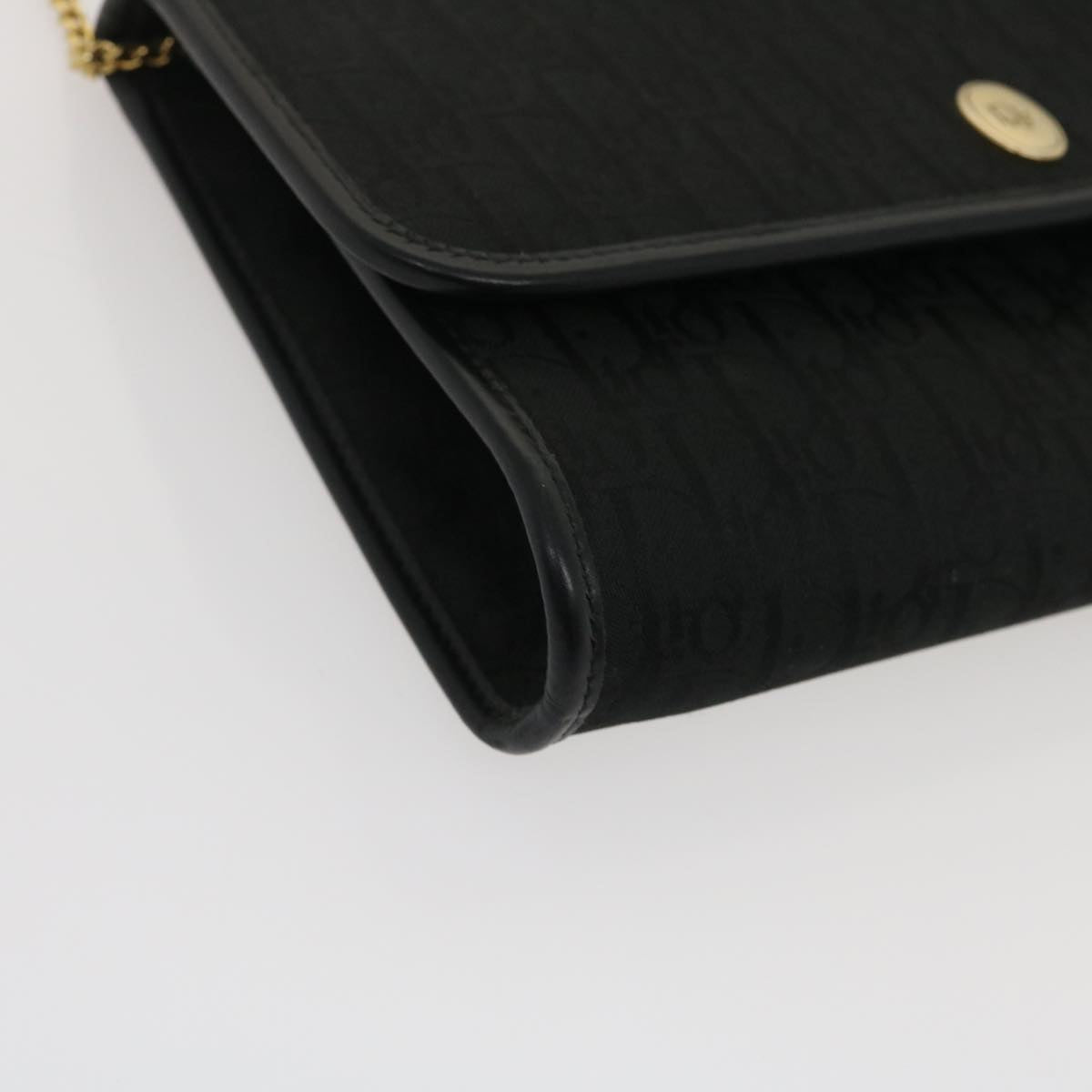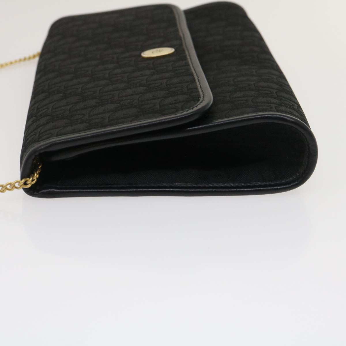 CHRISTIAN DIOR Trotter Canvas Chain Shoulder Bag Black Auth am2539g
