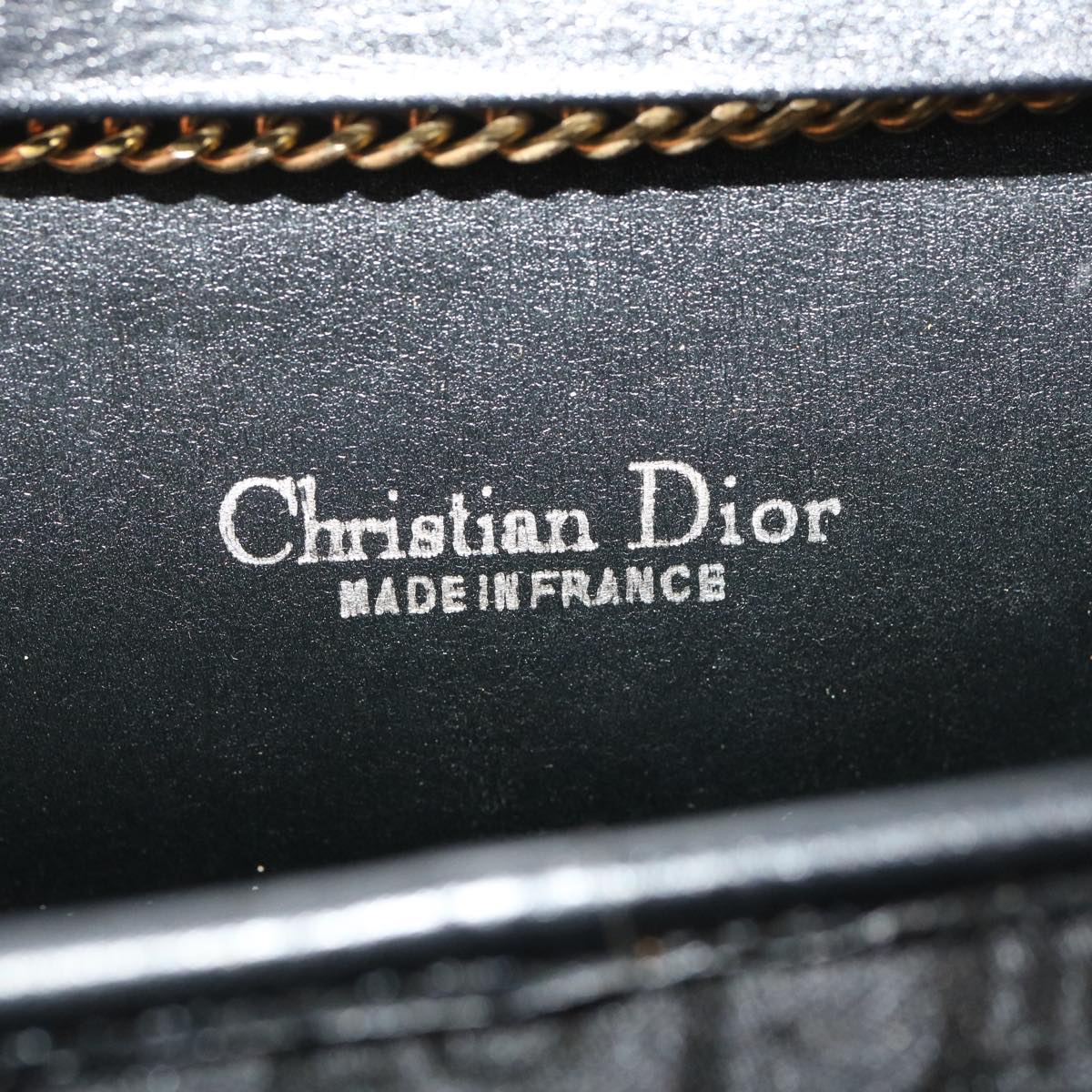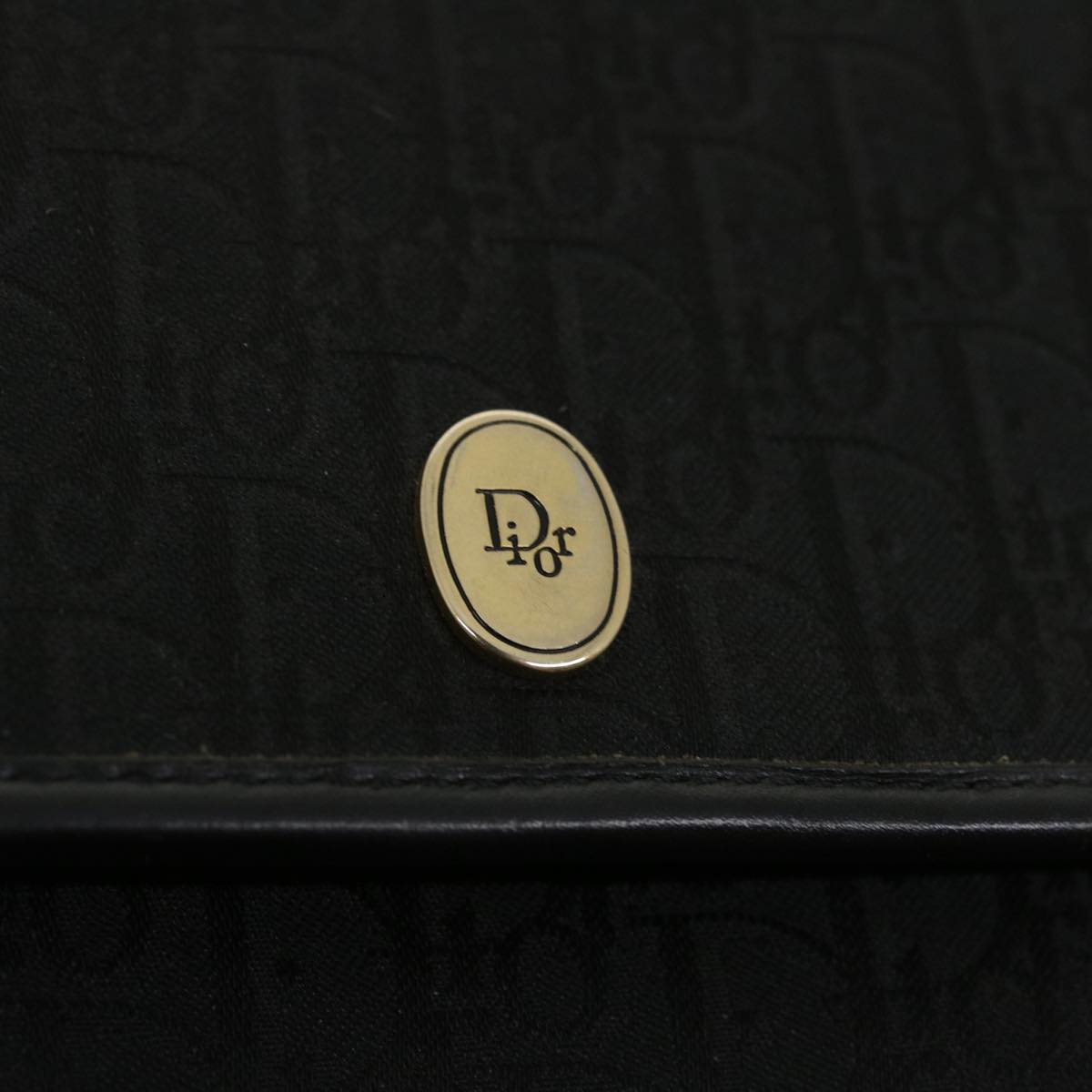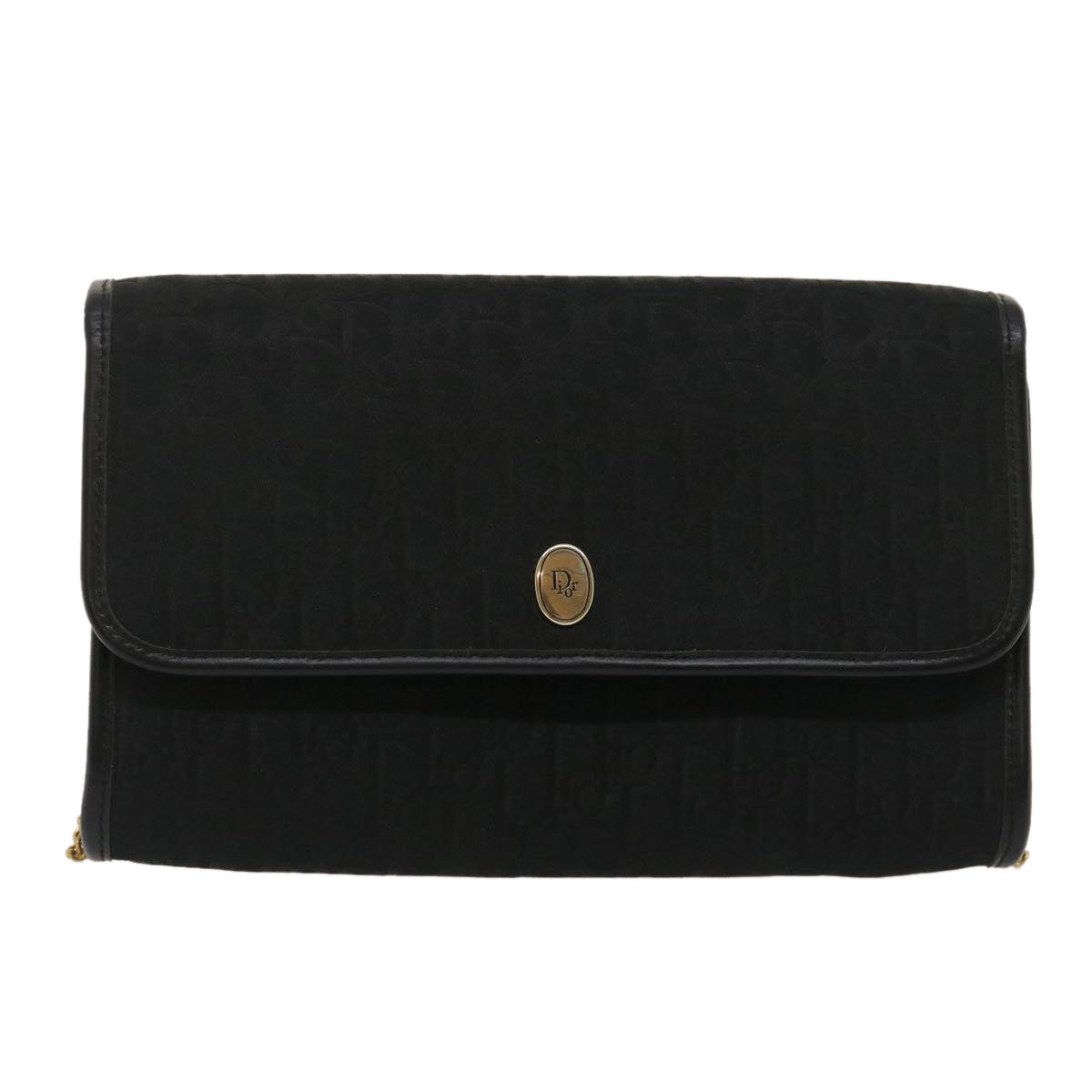 CHRISTIAN DIOR Trotter Canvas Chain Shoulder Bag Black Auth am2539g