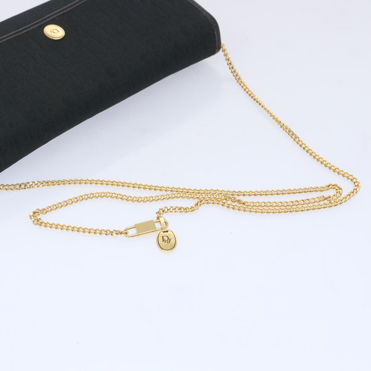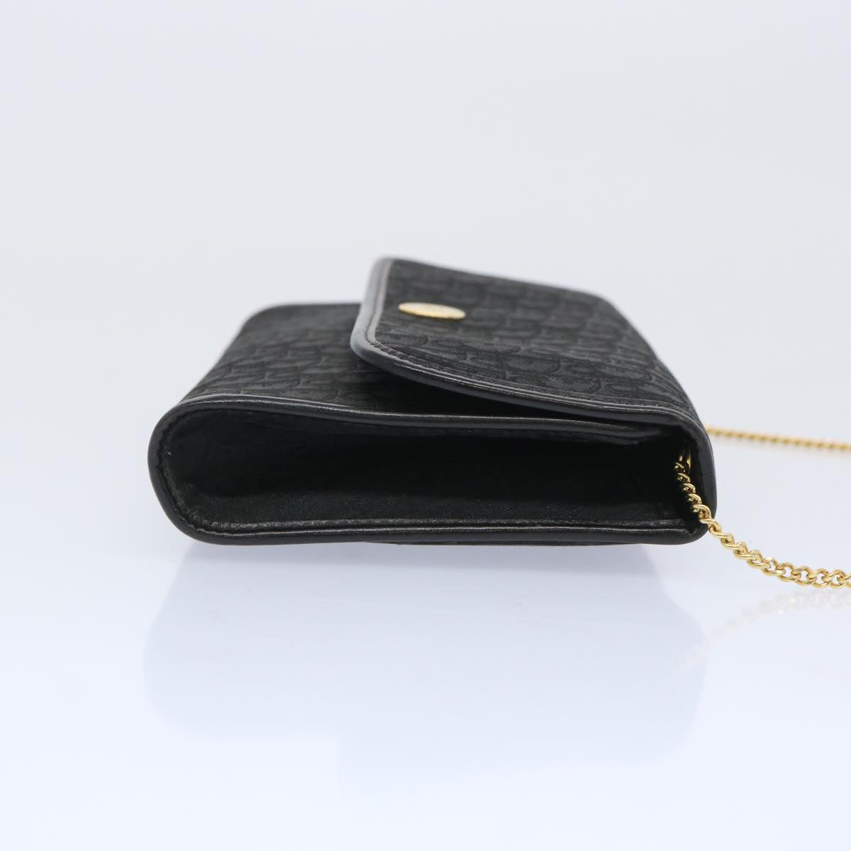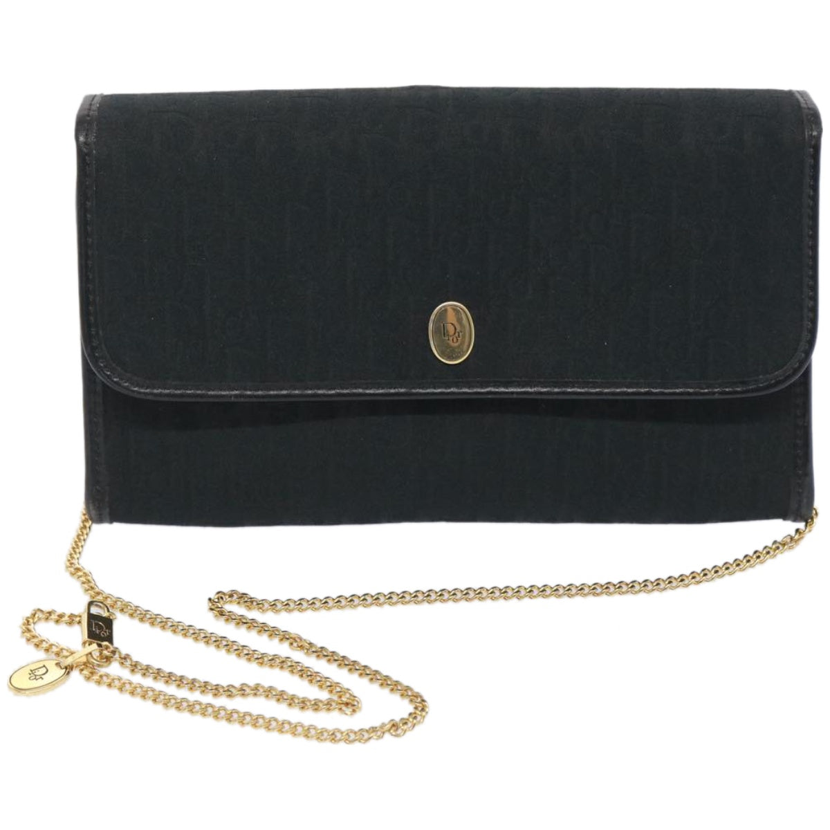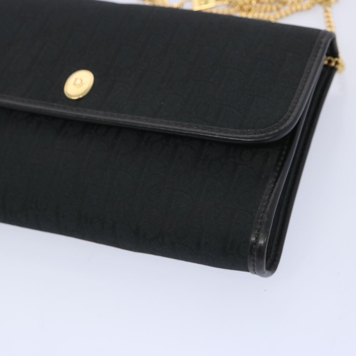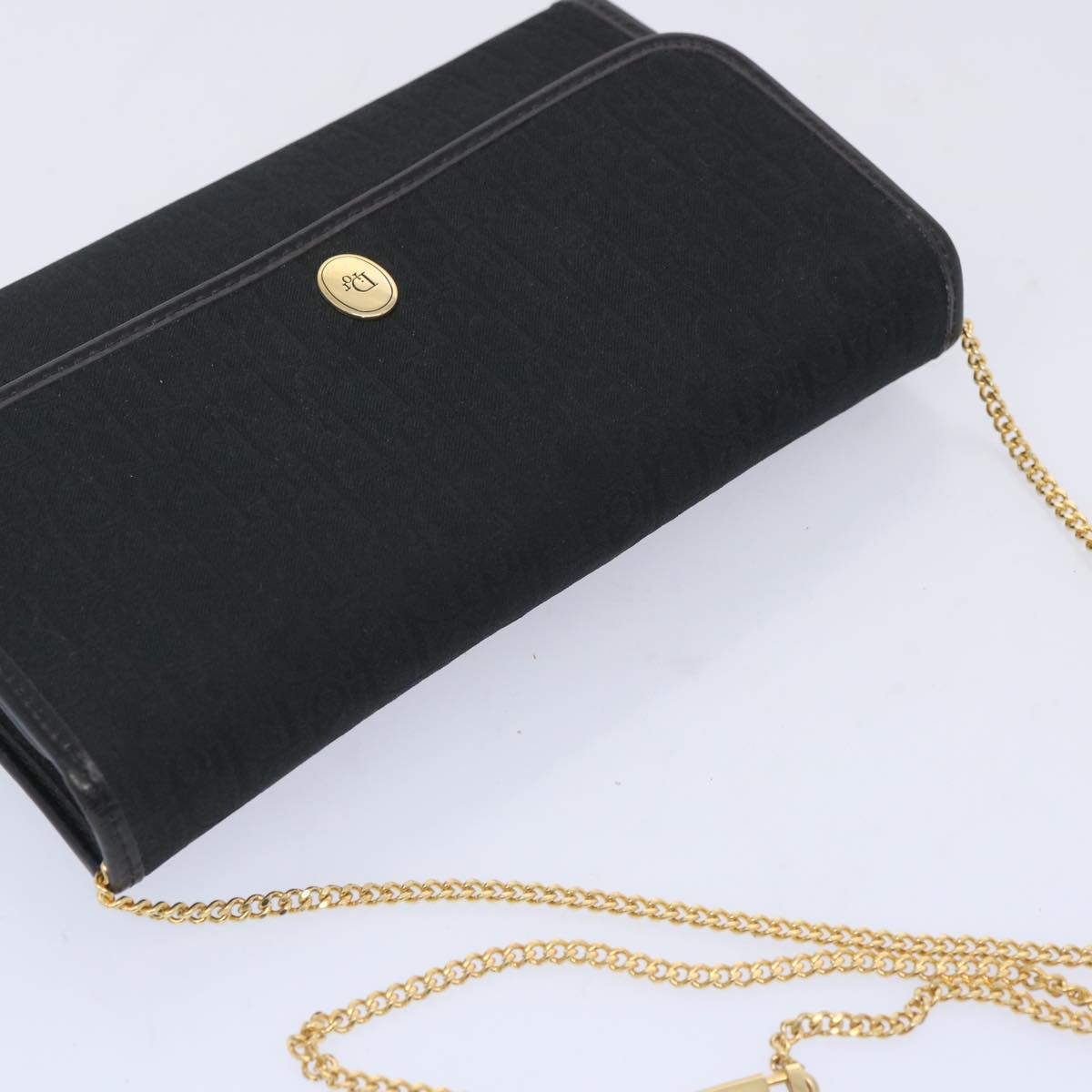 CHRISTIAN DIOR Trotter Canvas Chain Shoulder Bag Black Auth ep3240