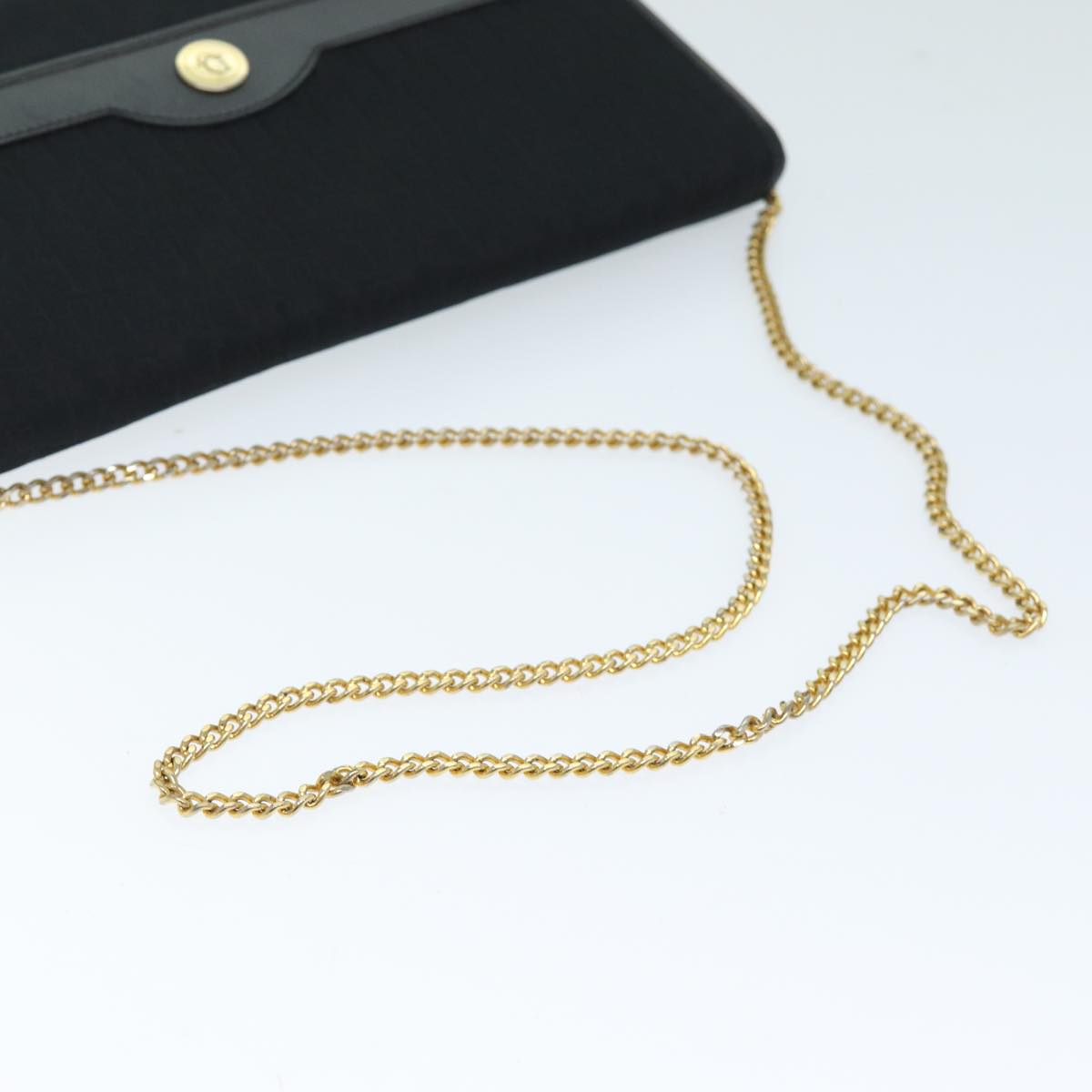 CHRISTIAN DIOR Trotter Canvas Chain Shoulder Bag Black Auth yk12202