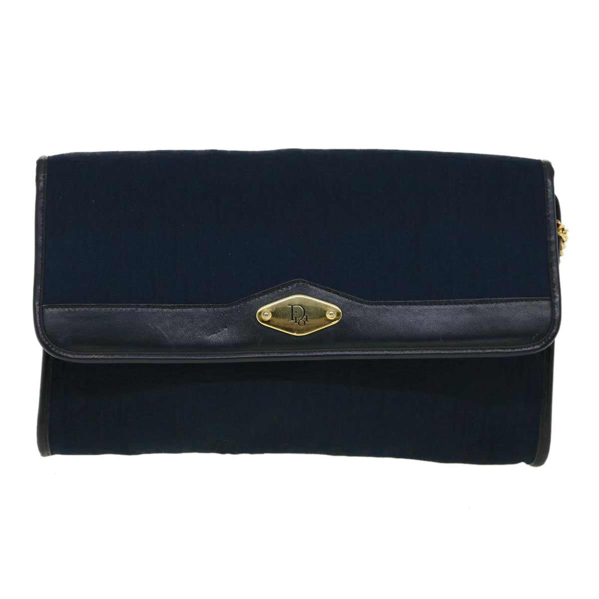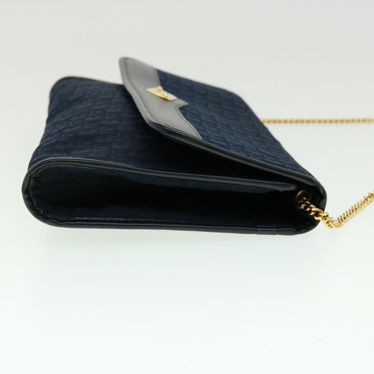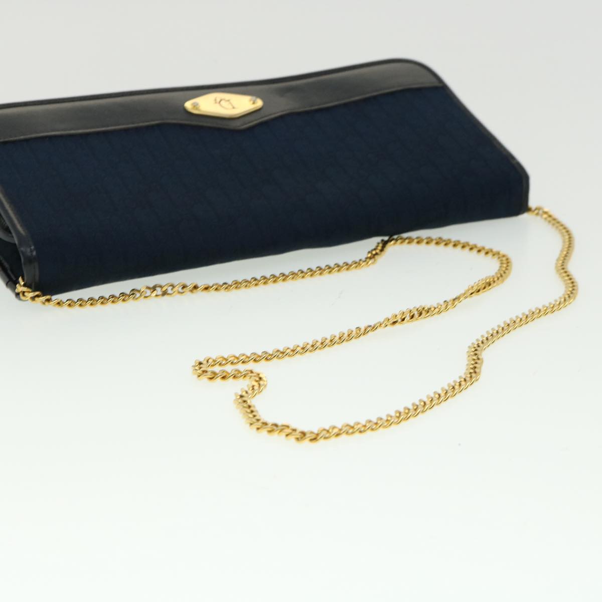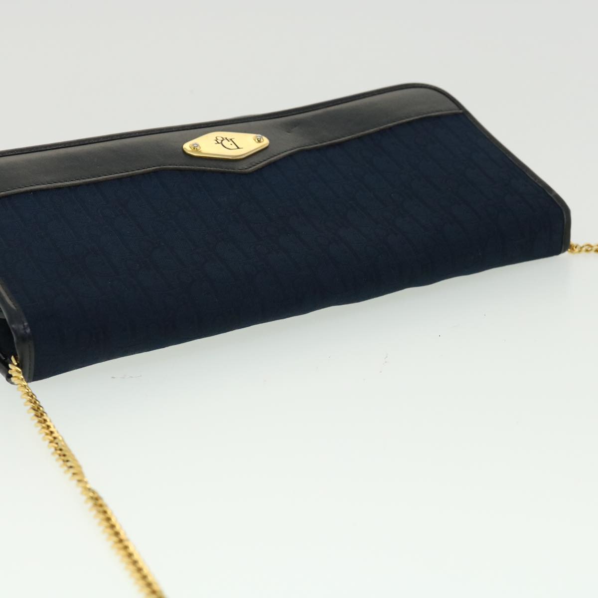 CHRISTIAN DIOR Trotter Canvas Chain Shoulder Bag Navy Auth rd2392