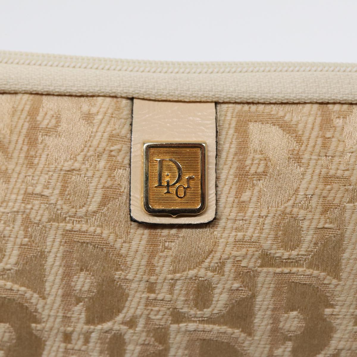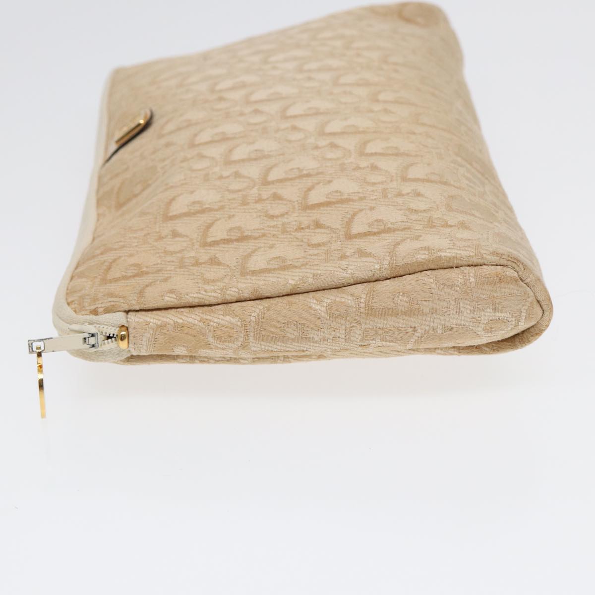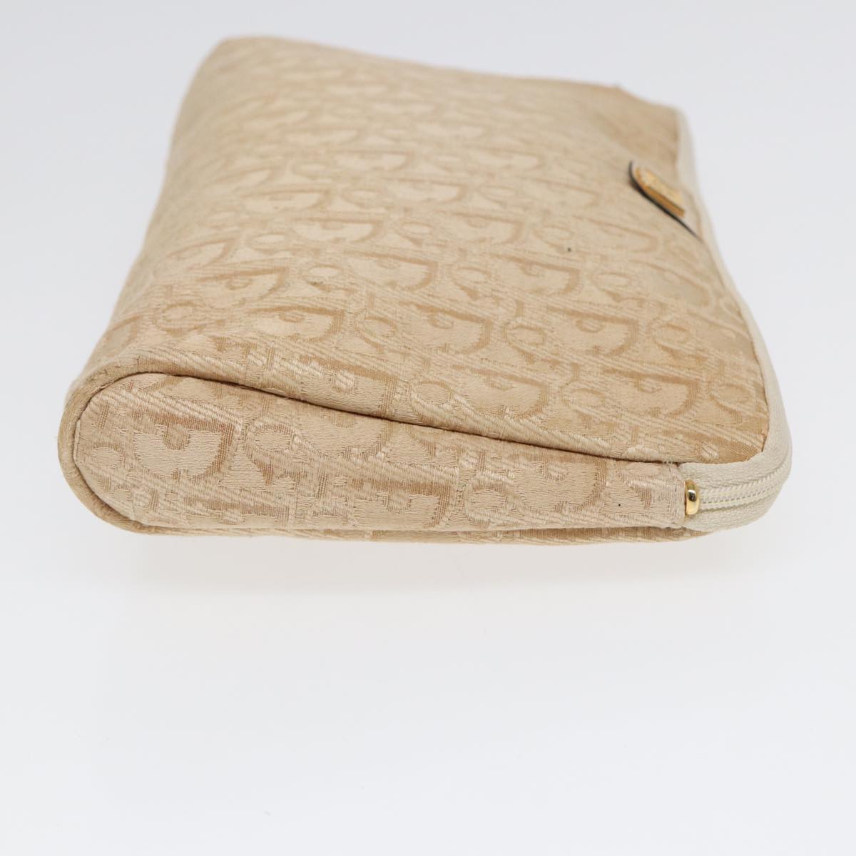 CHRISTIAN DIOR Trotter Canvas Clutch Bag Beige Gold Auth ep5460