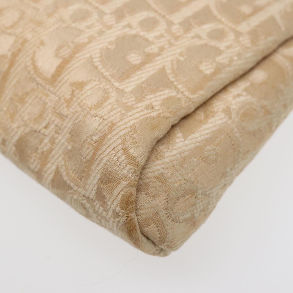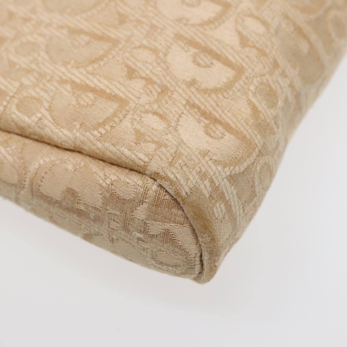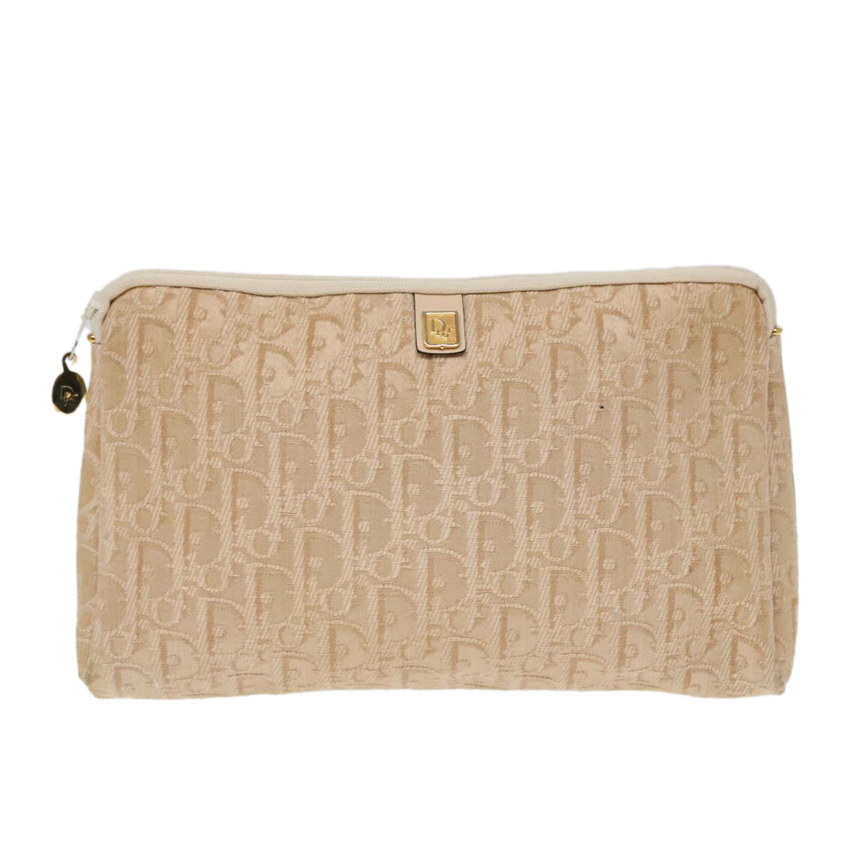 CHRISTIAN DIOR Trotter Canvas Clutch Bag Beige Gold Auth ep5460