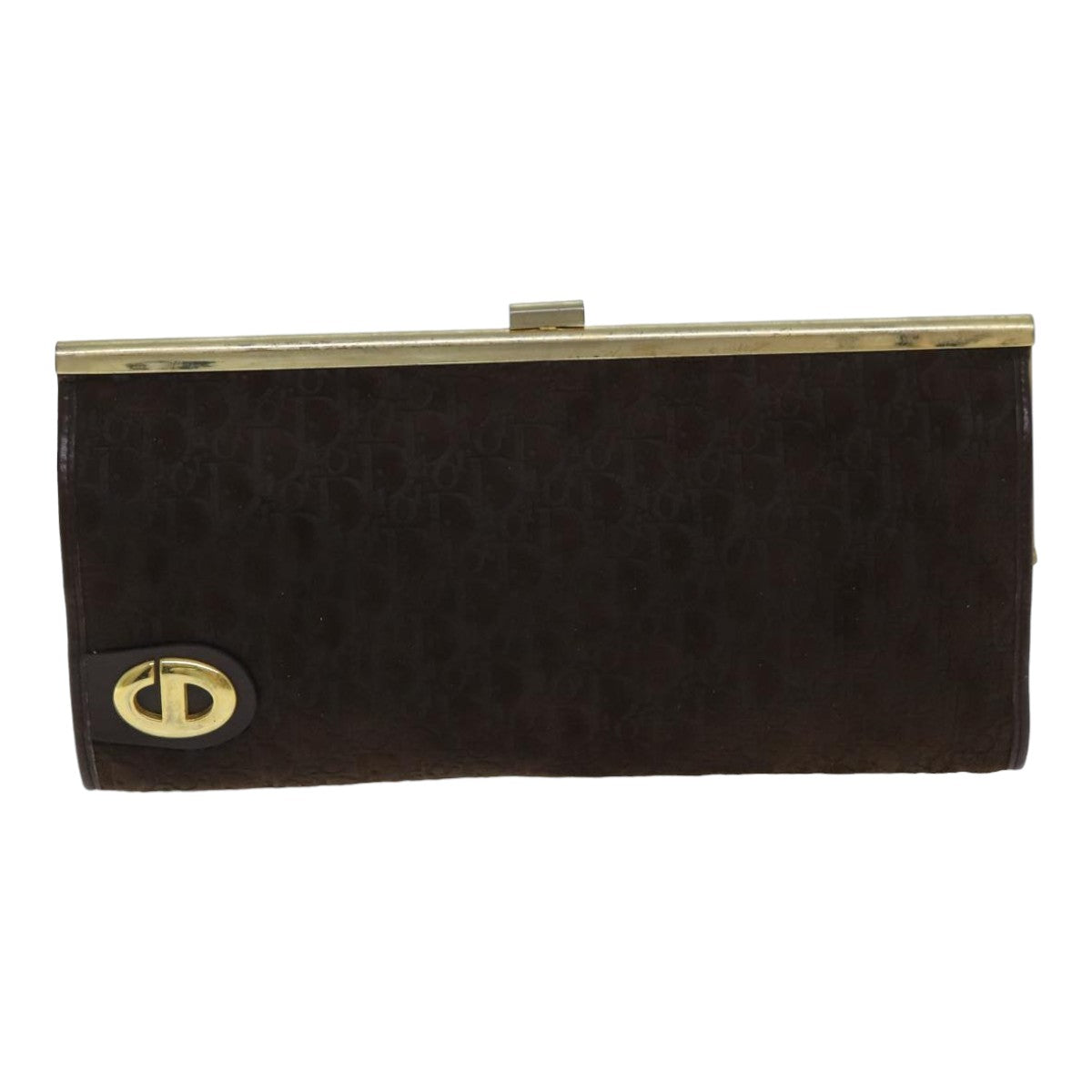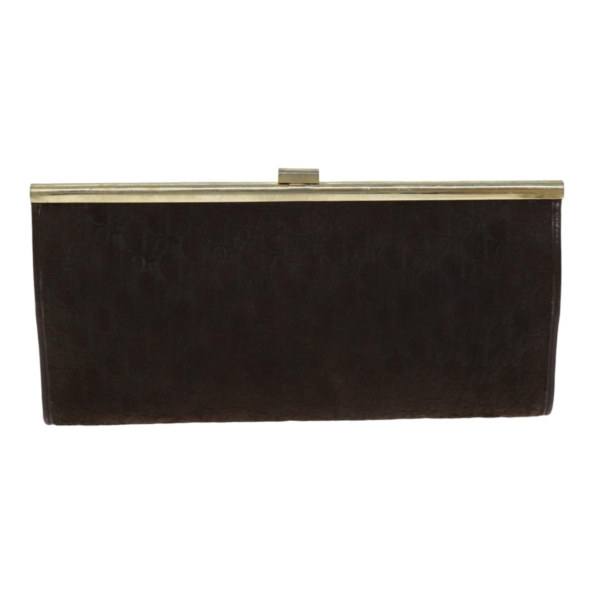 CHRISTIAN DIOR Trotter Canvas Clutch Bag Leather Brown Auth bs15371