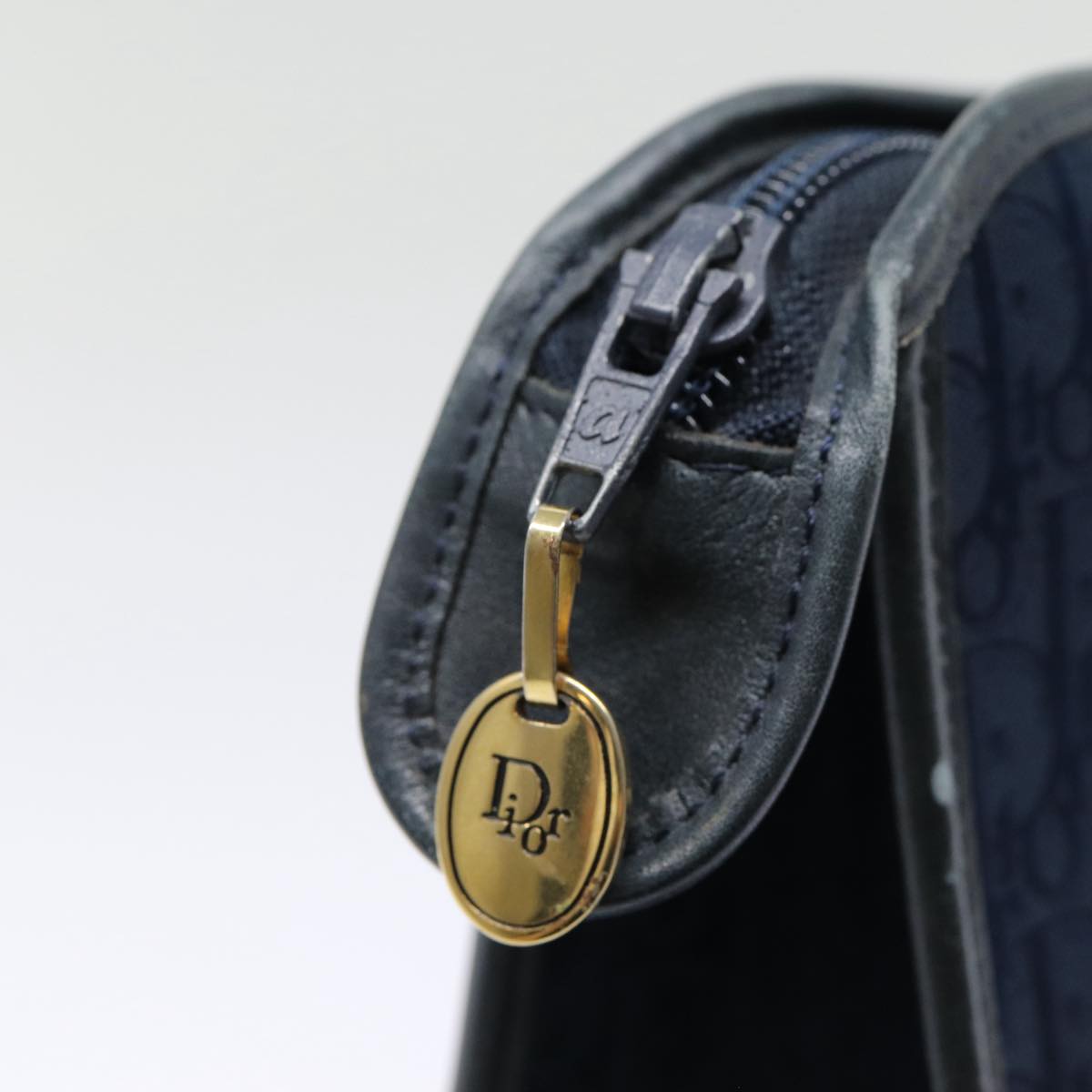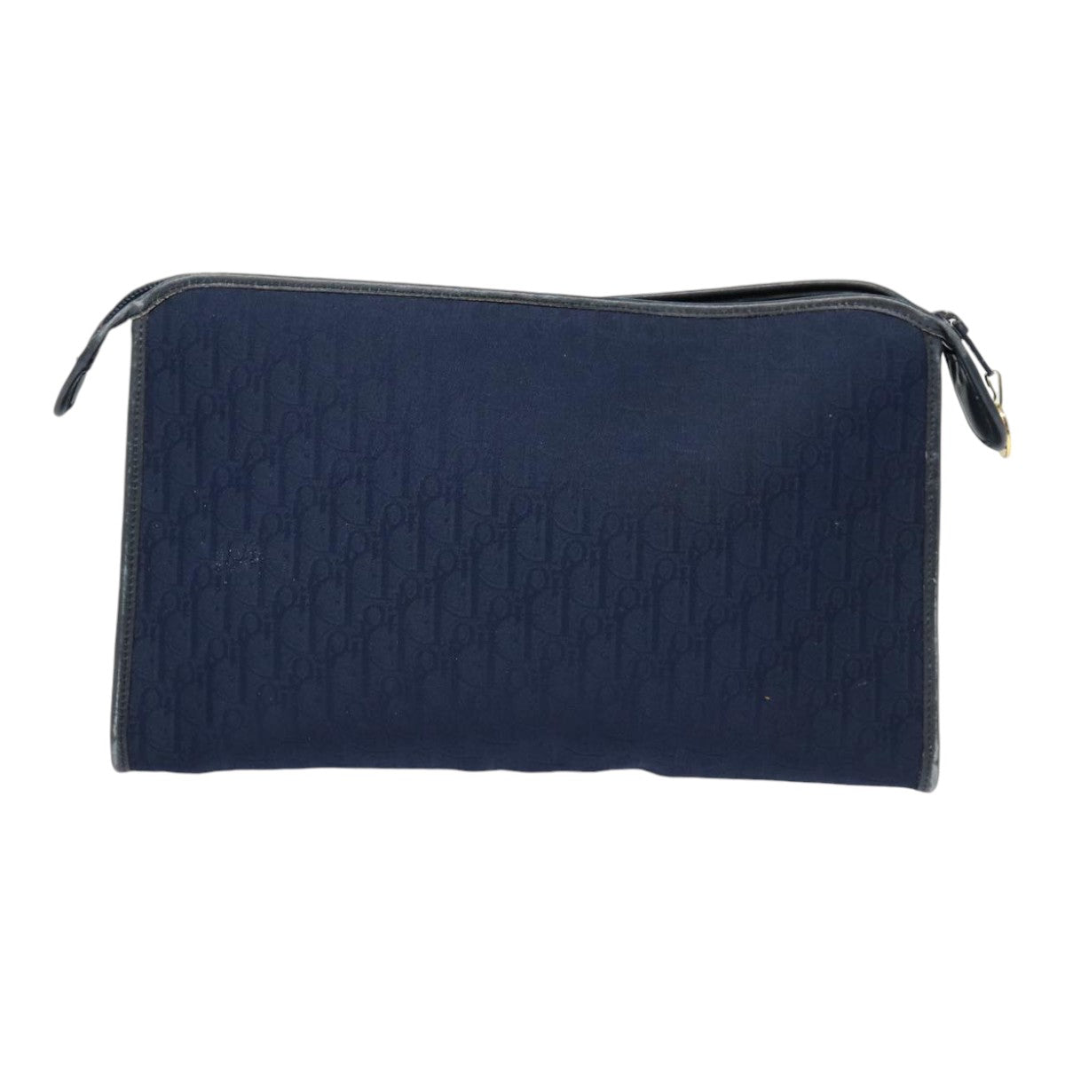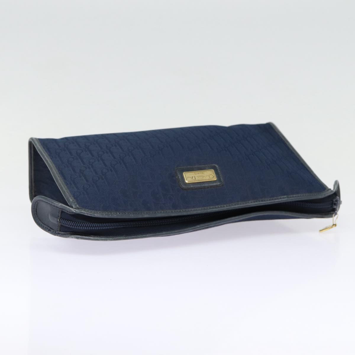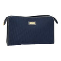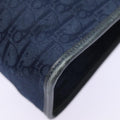 CHRISTIAN DIOR Trotter Canvas Clutch Bag Navy Gold Auth ep5448