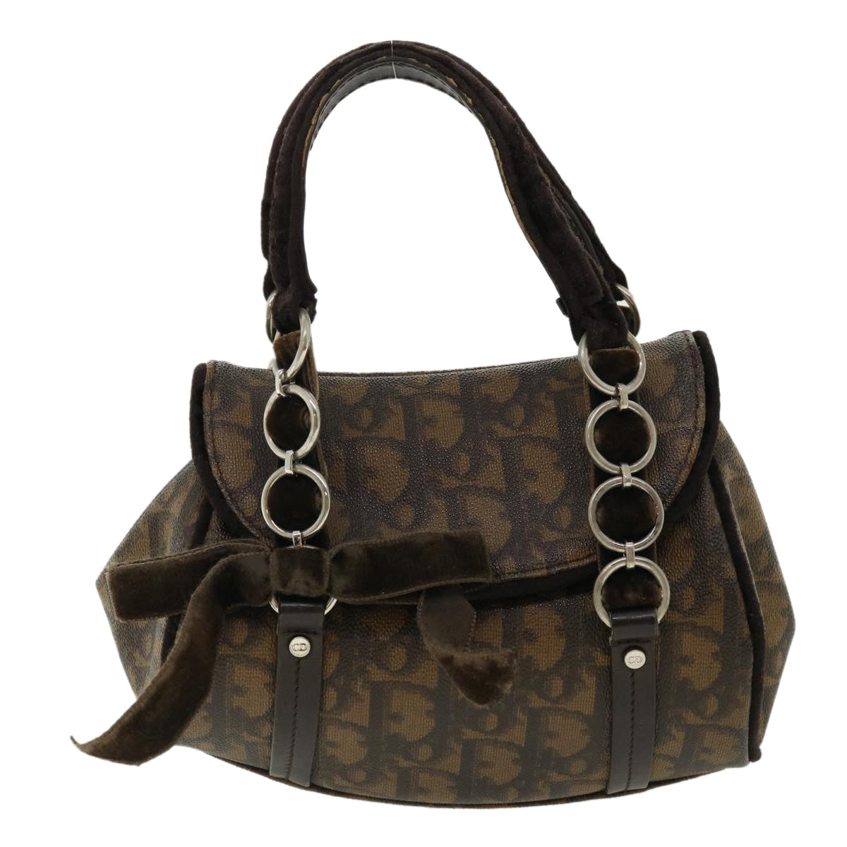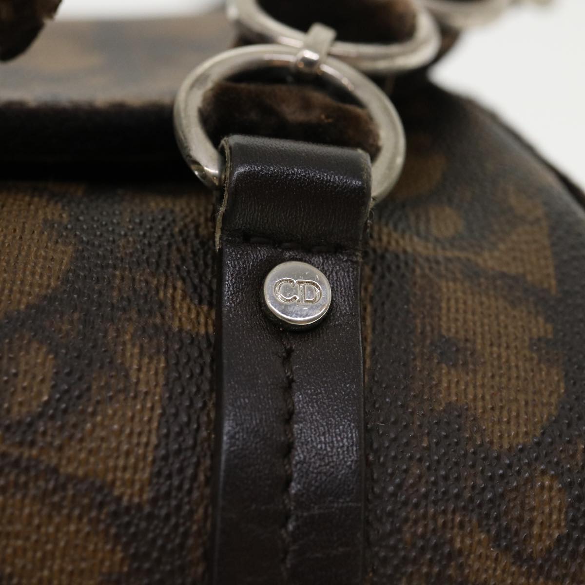 CHRISTIAN DIOR Trotter Canvas Hand Bag Brown Auth am3391