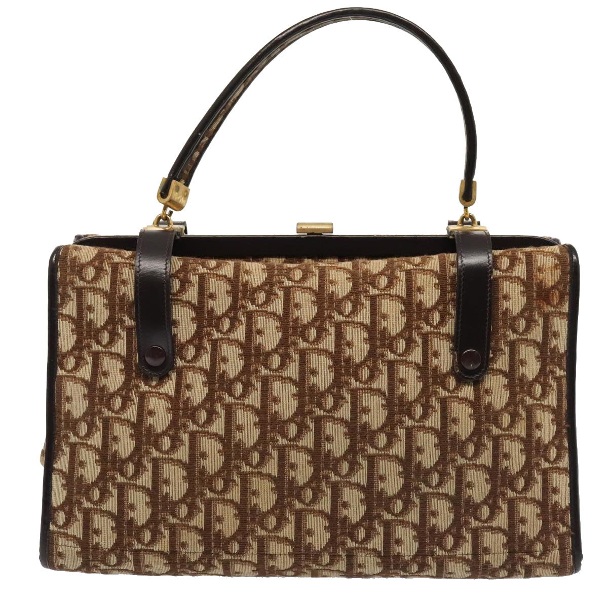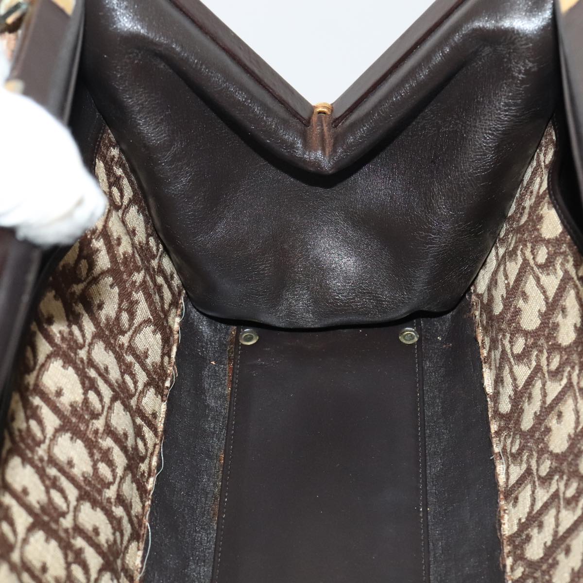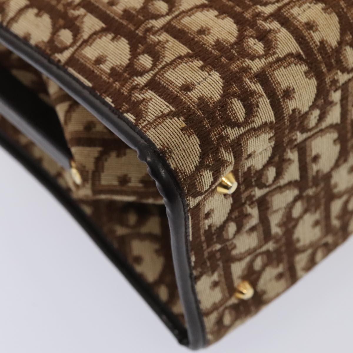 CHRISTIAN DIOR Trotter Canvas Hand Bag Brown Gold Auth ep5496