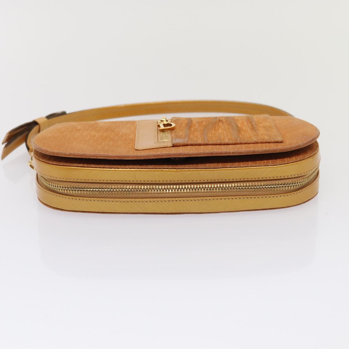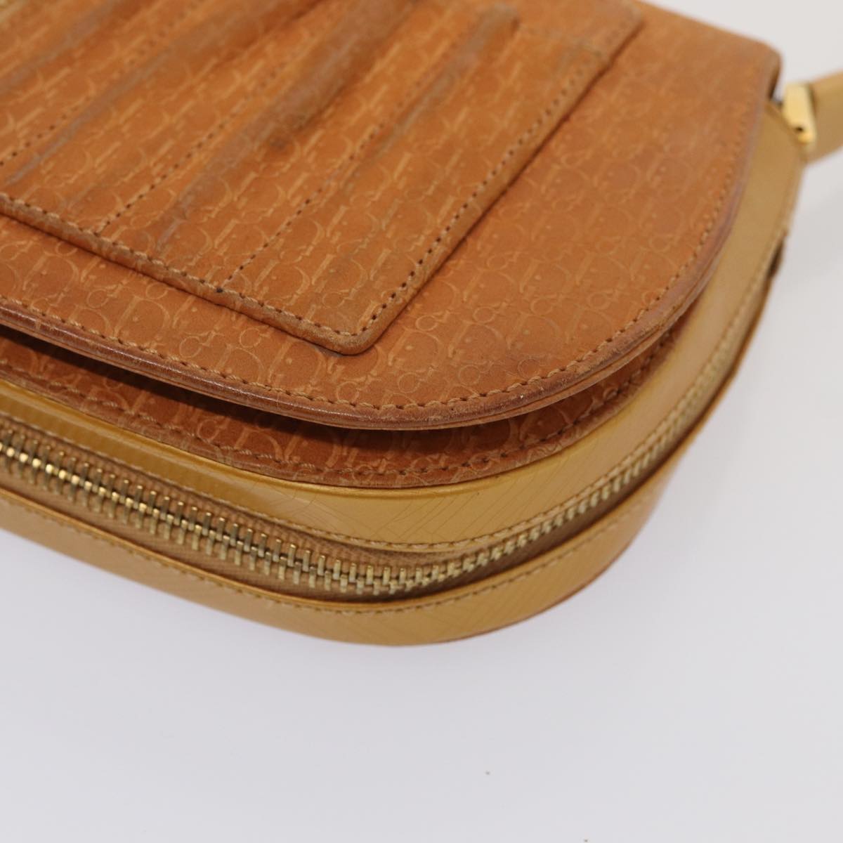 CHRISTIAN DIOR Trotter Canvas Shoulder Bag Brown Gold Auth 85686