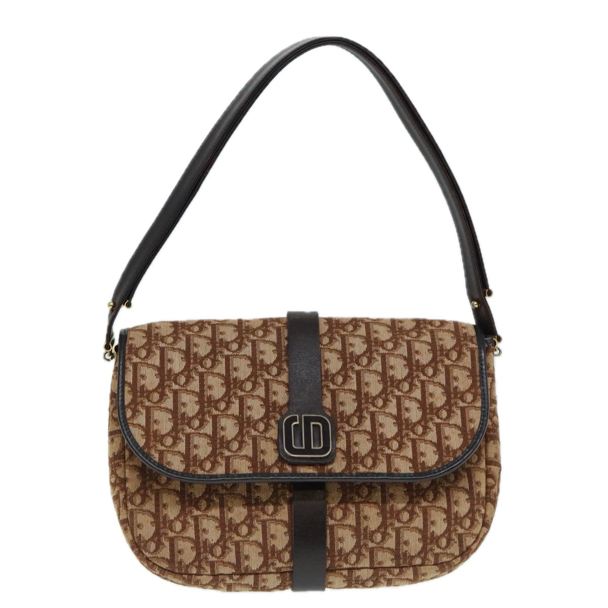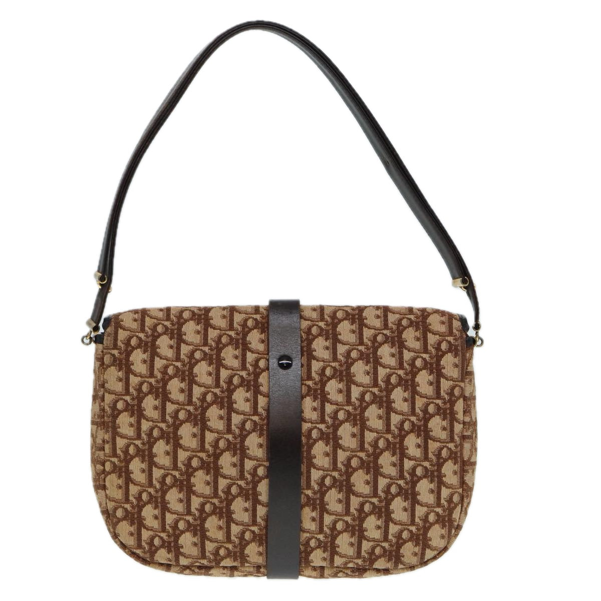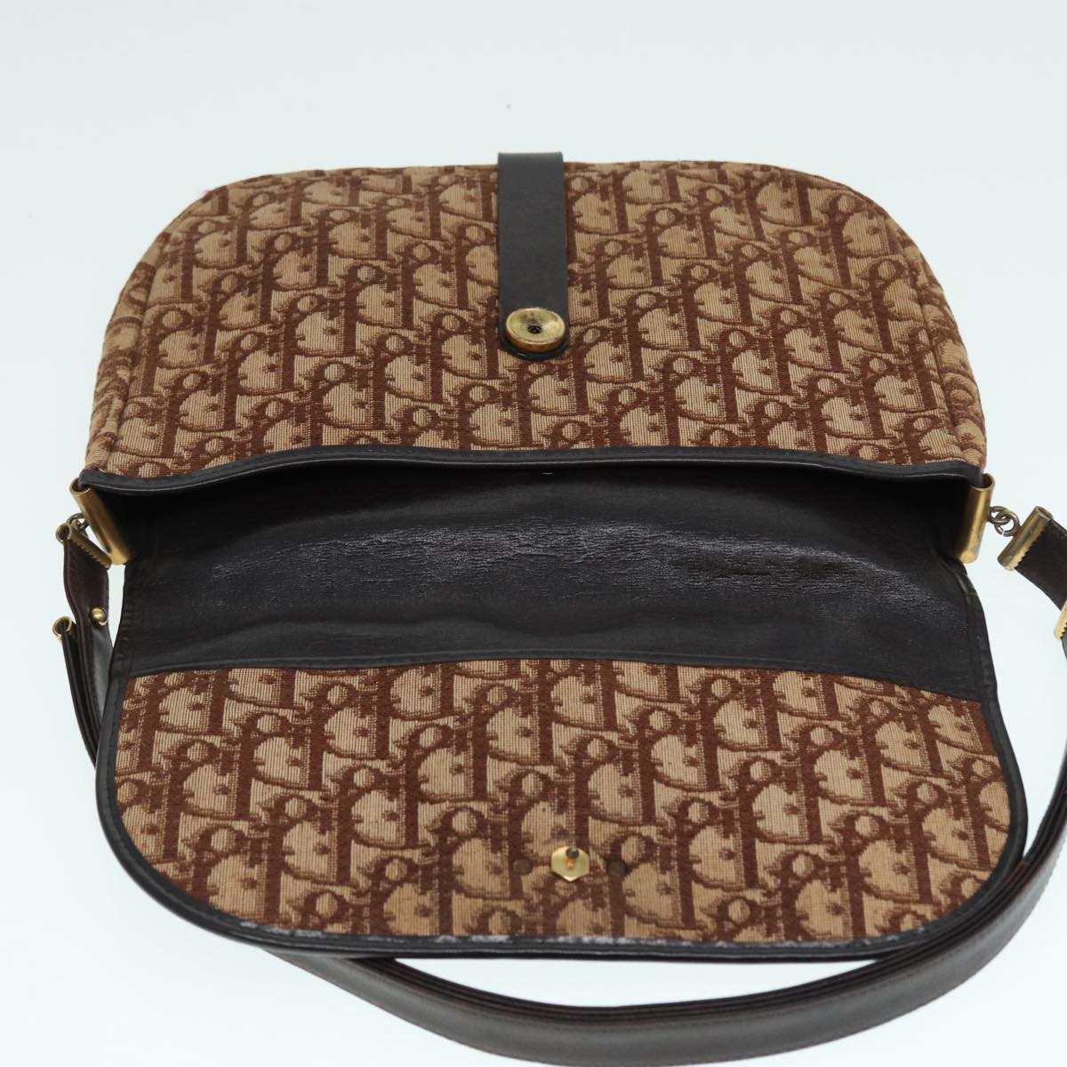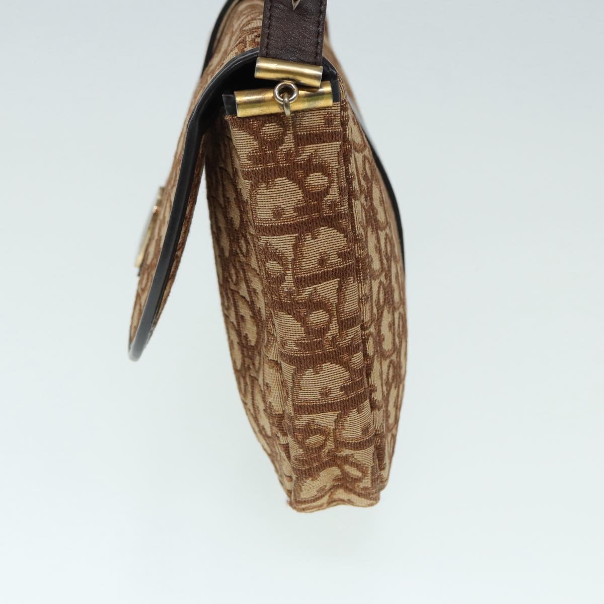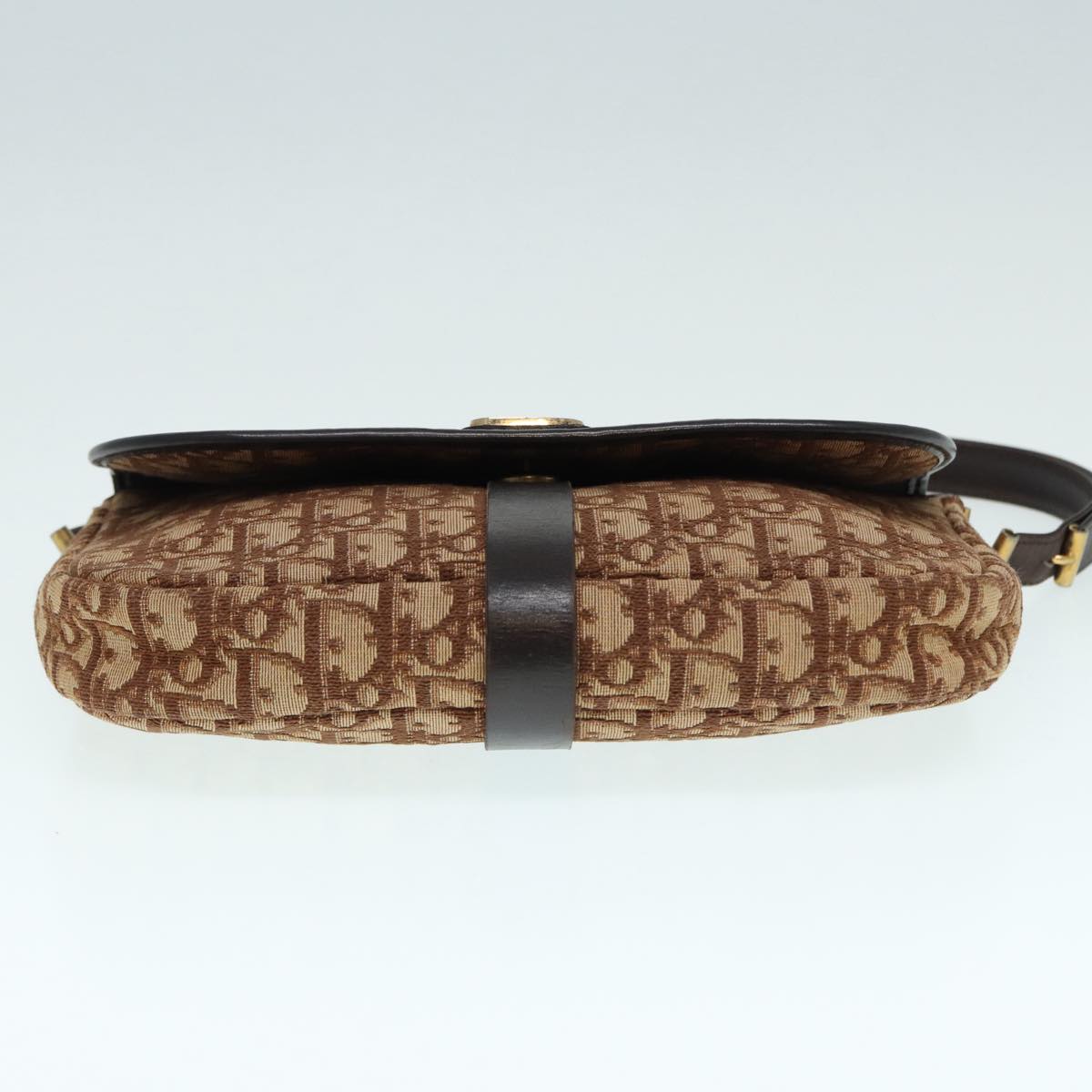 CHRISTIAN DIOR Trotter Canvas Shoulder Bag Gold Brown Auth ep5327