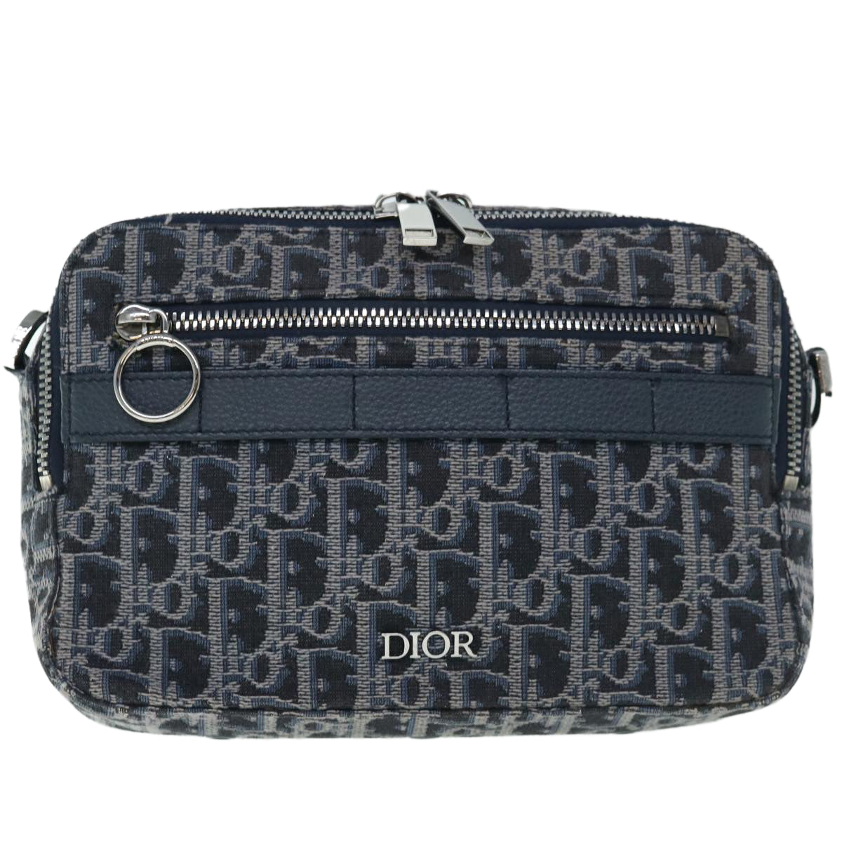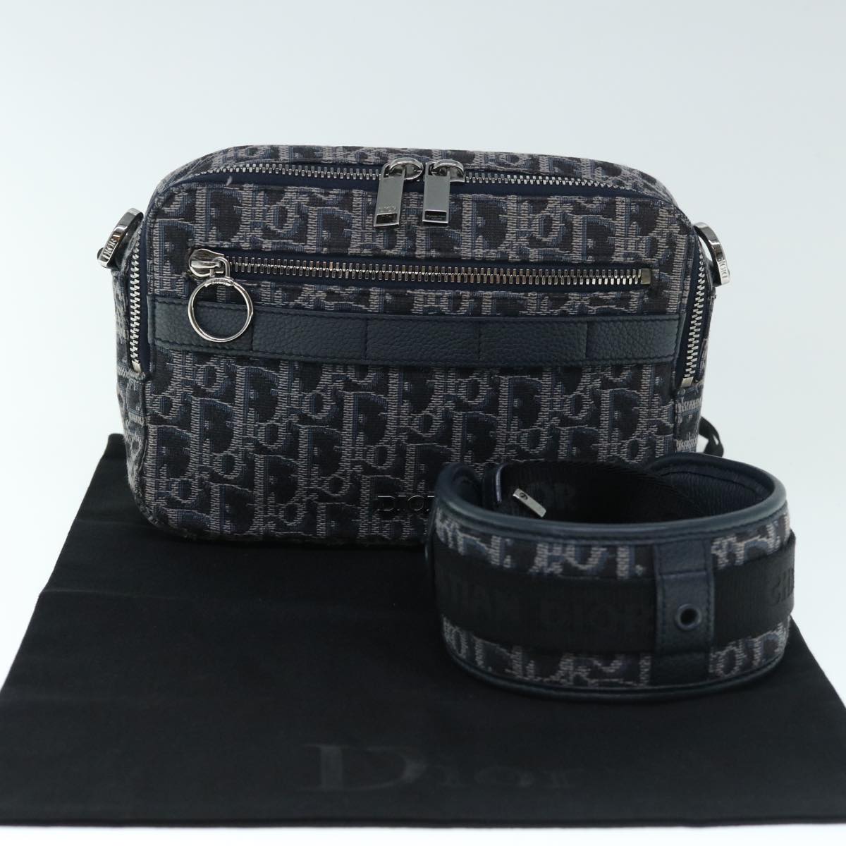 CHRISTIAN DIOR Trotter Canvas Shoulder Bag Navy Auth 60082A