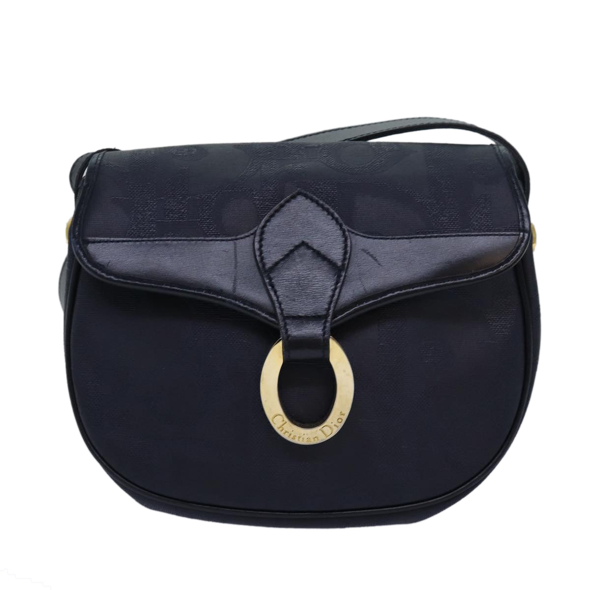 CHRISTIAN DIOR Trotter Canvas Shoulder Bag Navy Auth ep4803
