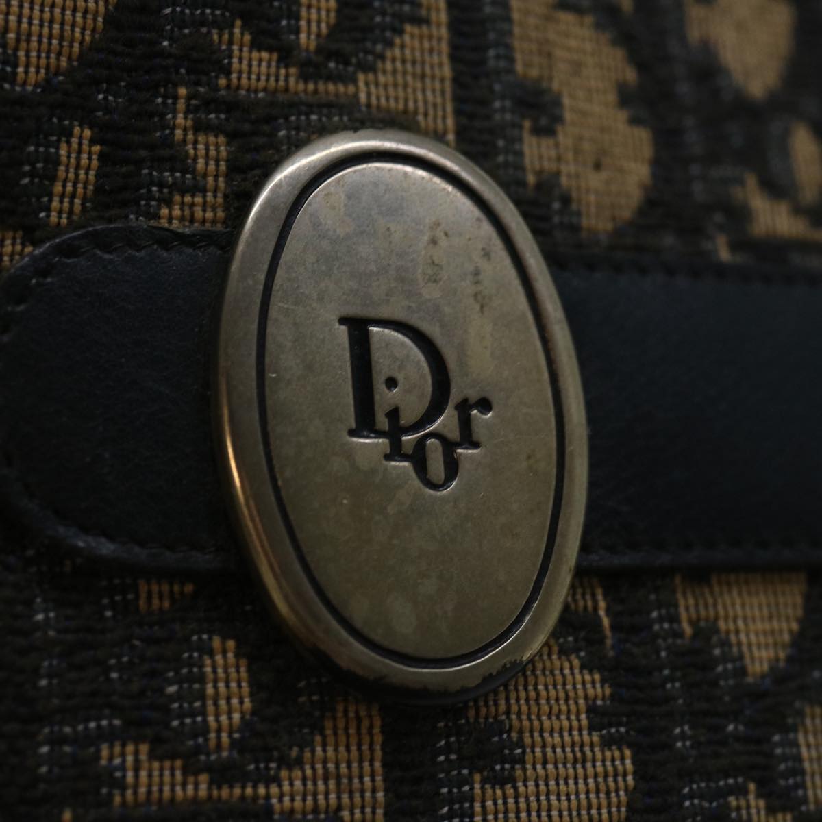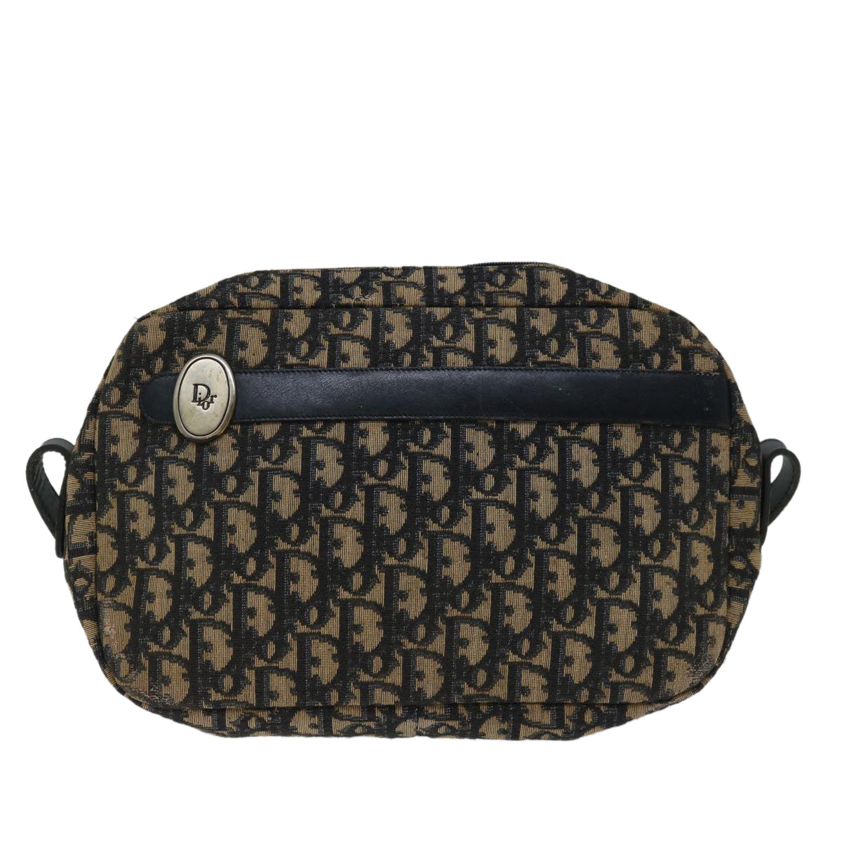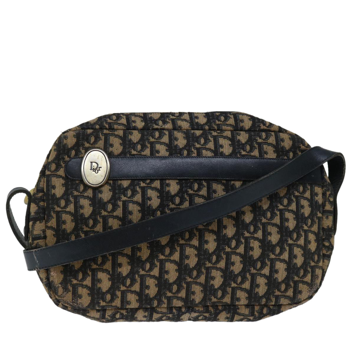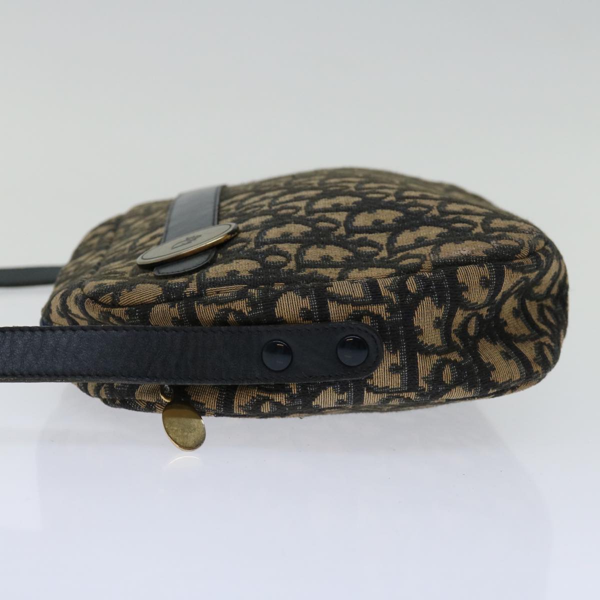 CHRISTIAN DIOR Trotter Canvas Shoulder Bag Navy Auth yk11192