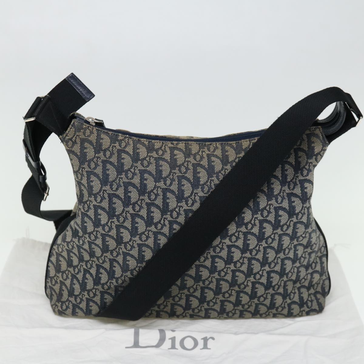 CHRISTIAN DIOR Trotter Canvas Shoulder Bag Navy Auth yk11719