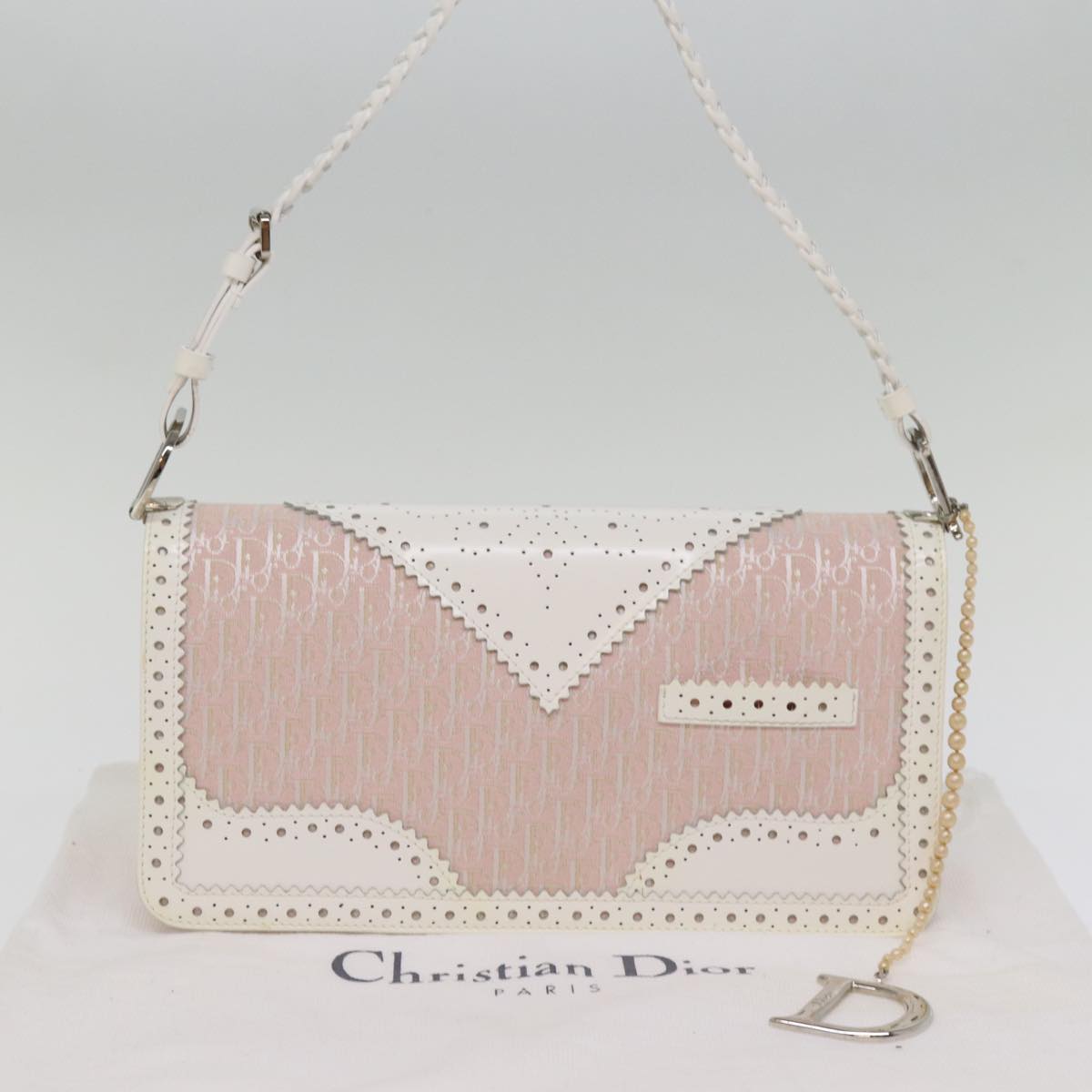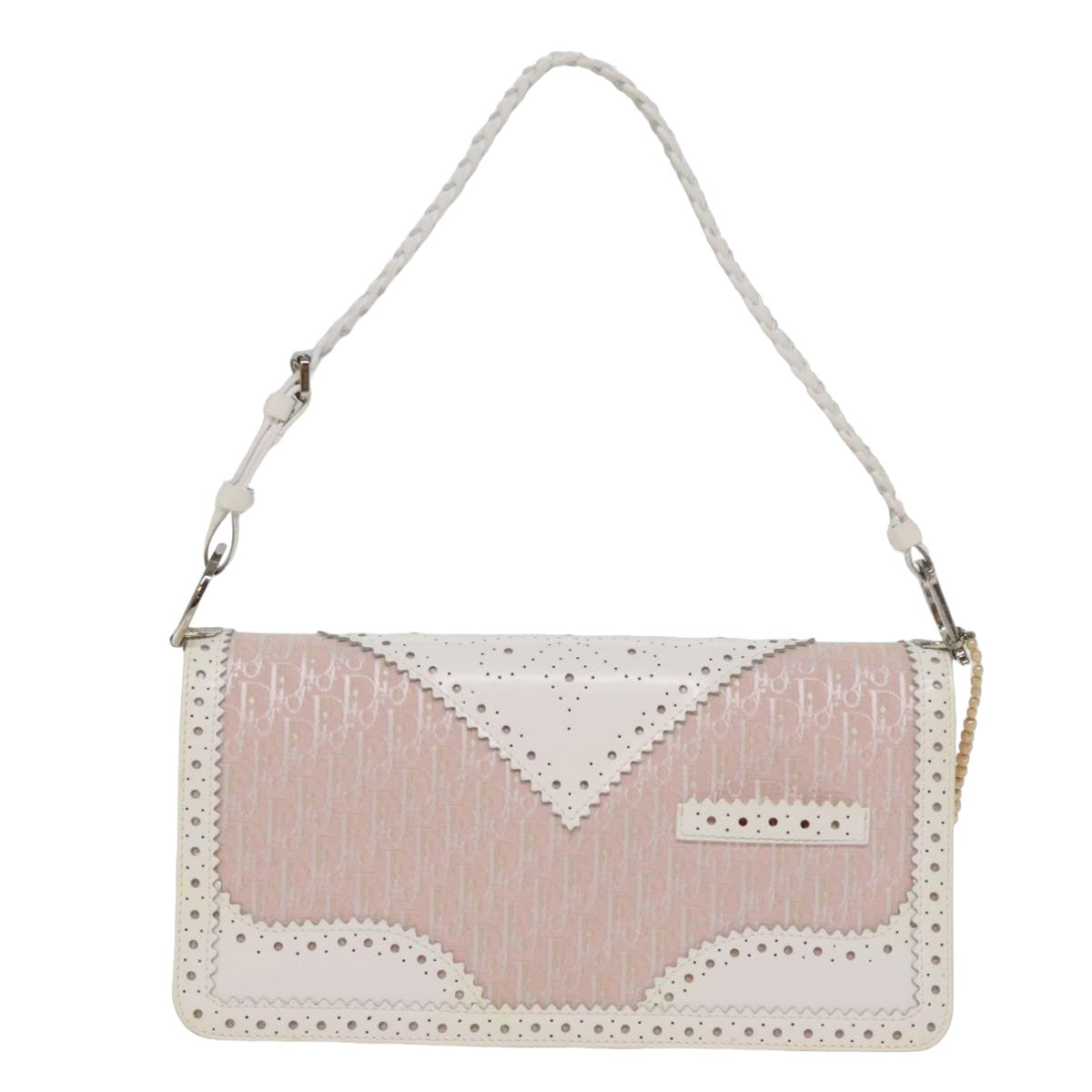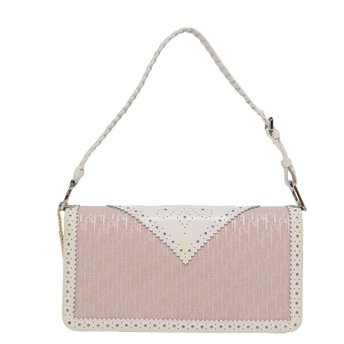 CHRISTIAN DIOR Trotter Canvas Shoulder Bag Pink Auth 77002A