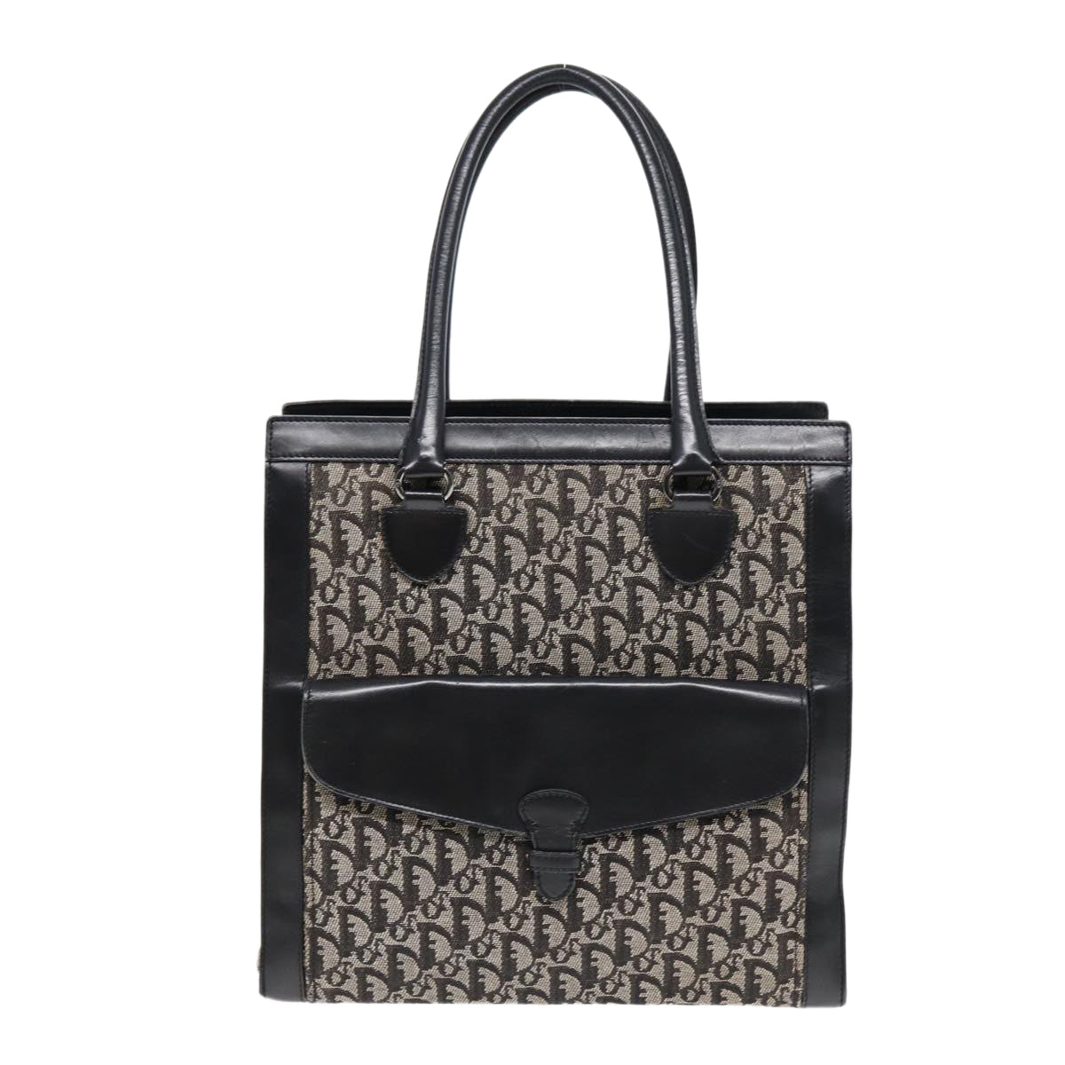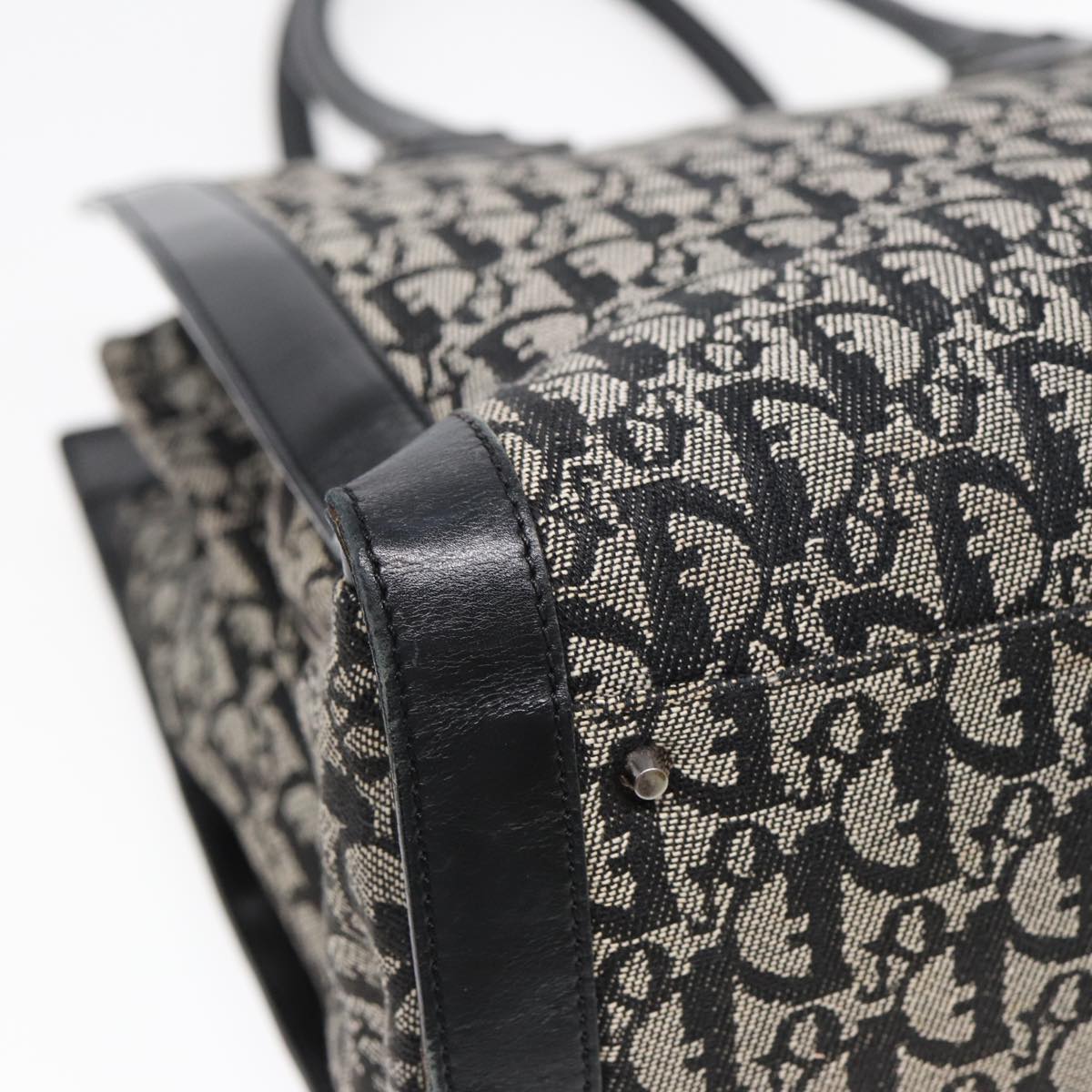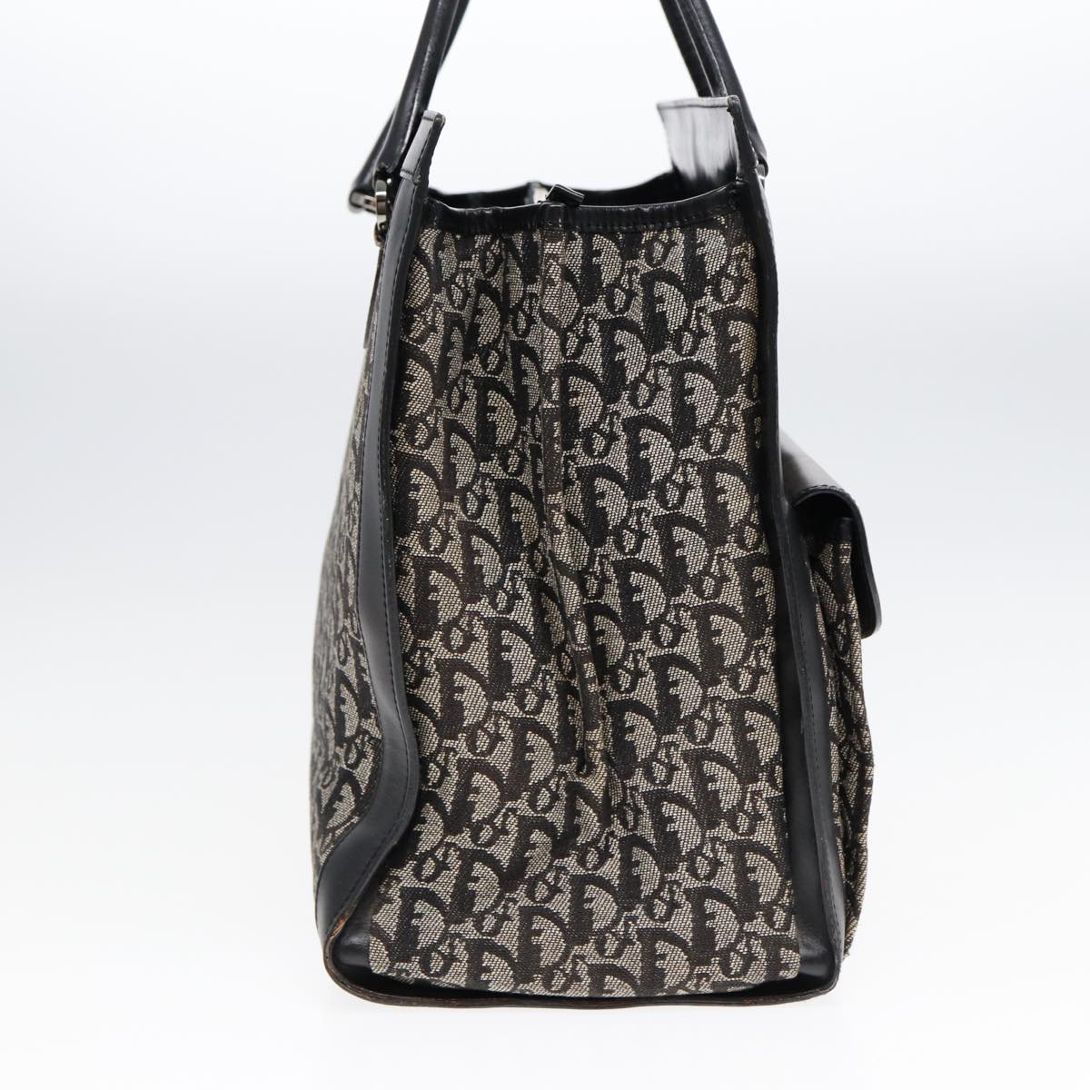 CHRISTIAN DIOR Trotter Canvas Tote Bag Black Auth 88433