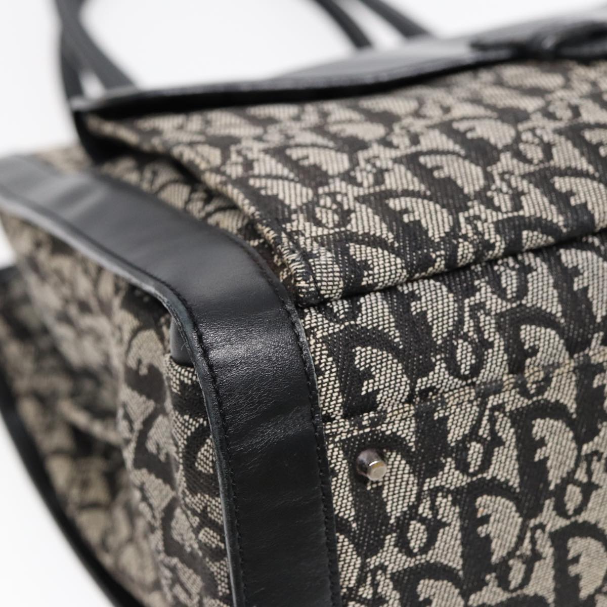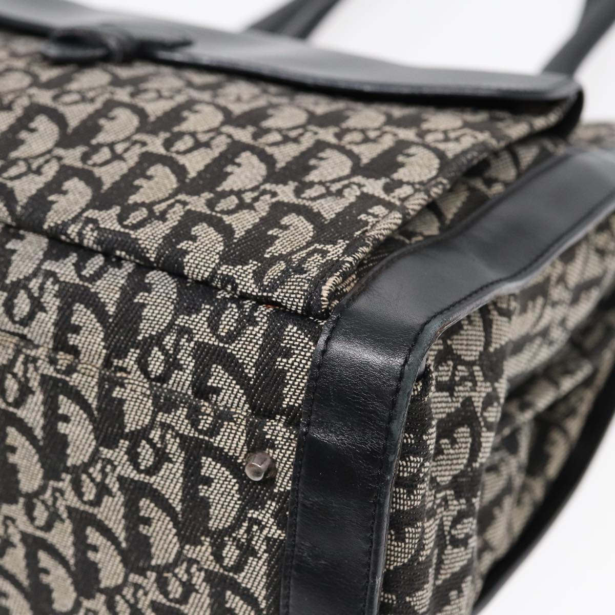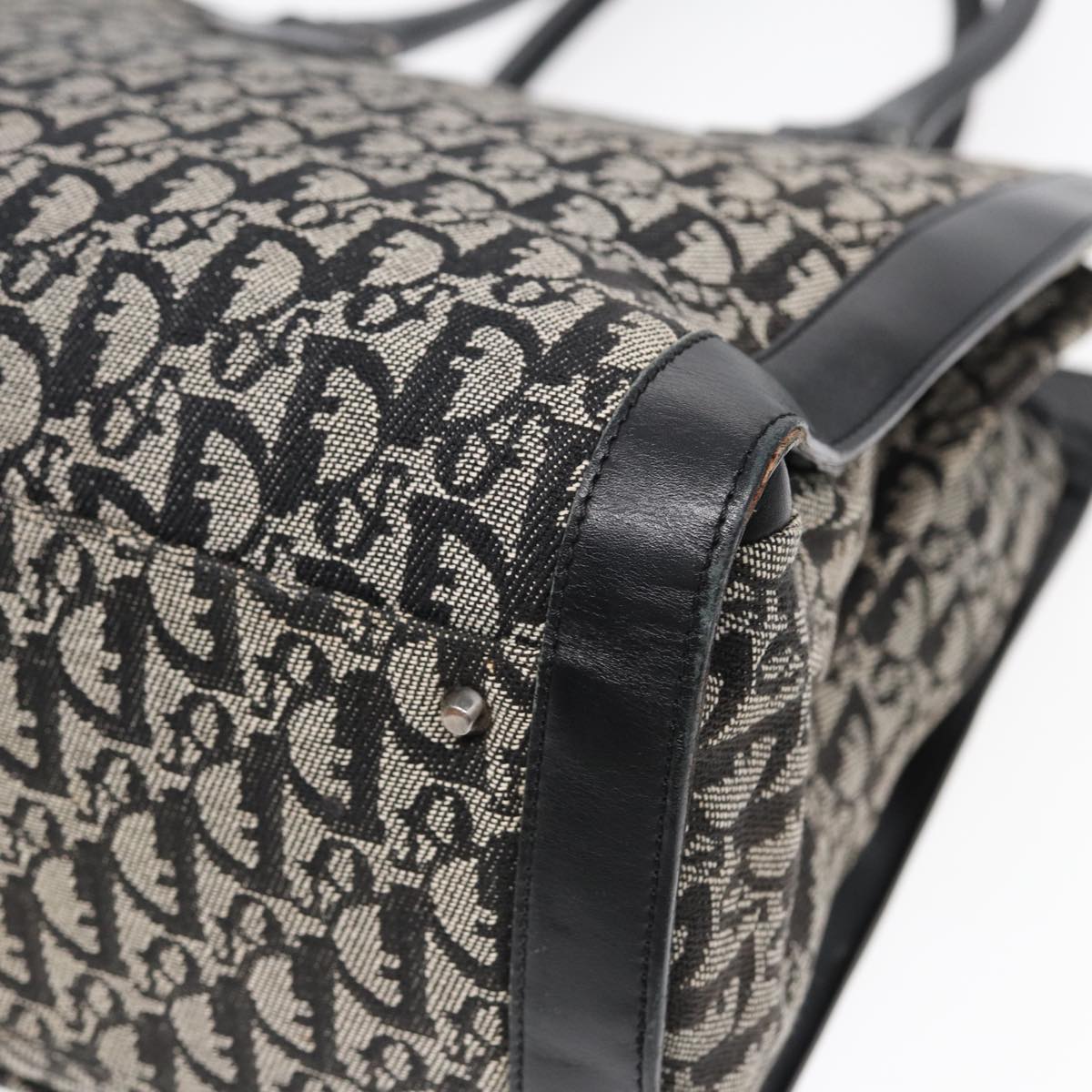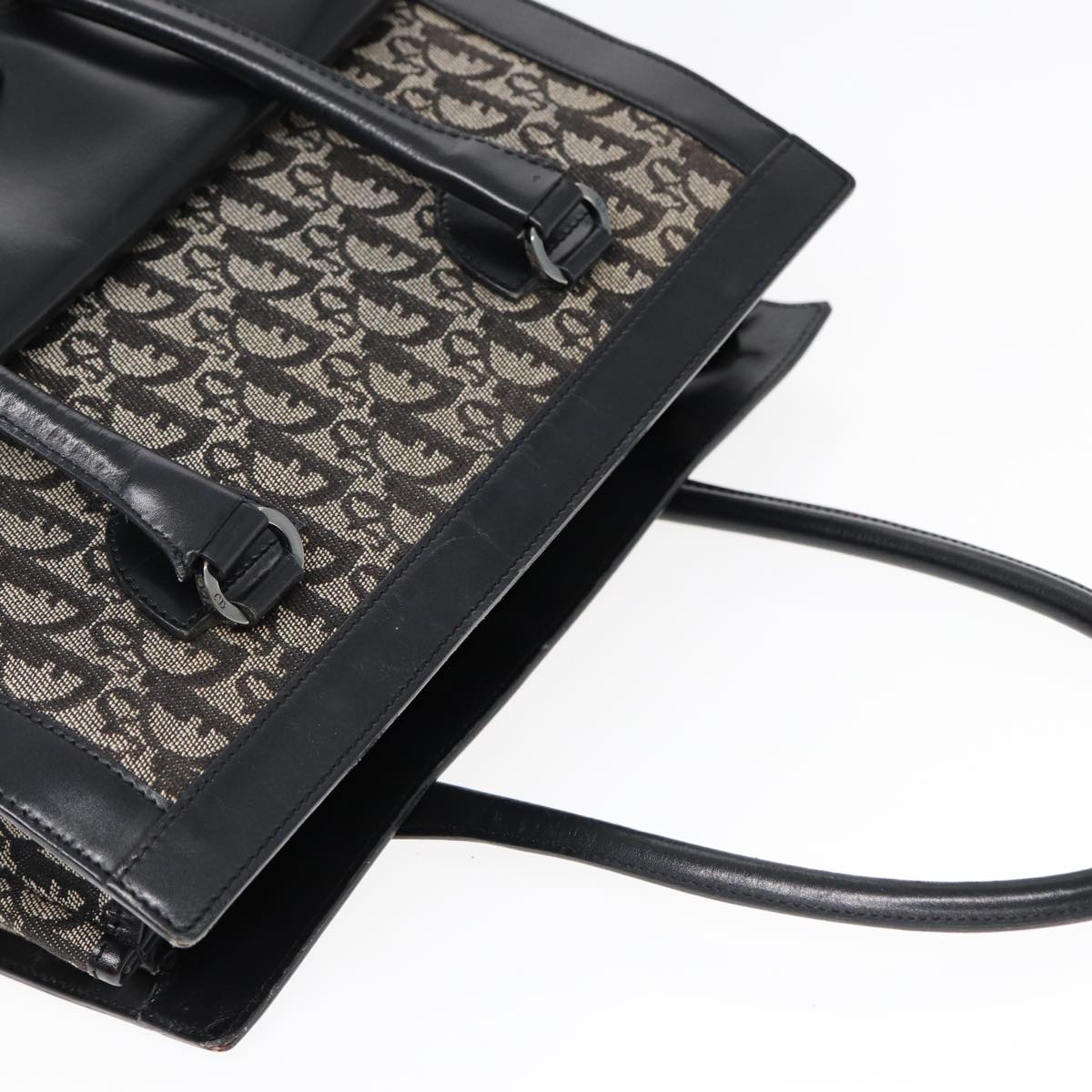 CHRISTIAN DIOR Trotter Canvas Tote Bag Black Auth 88433