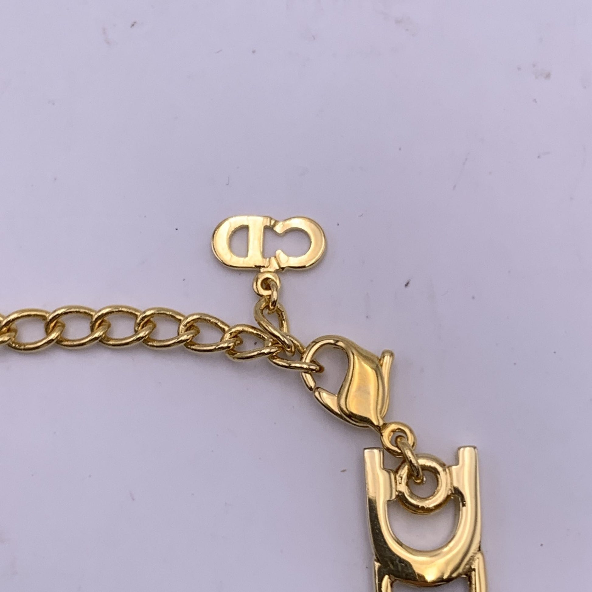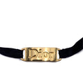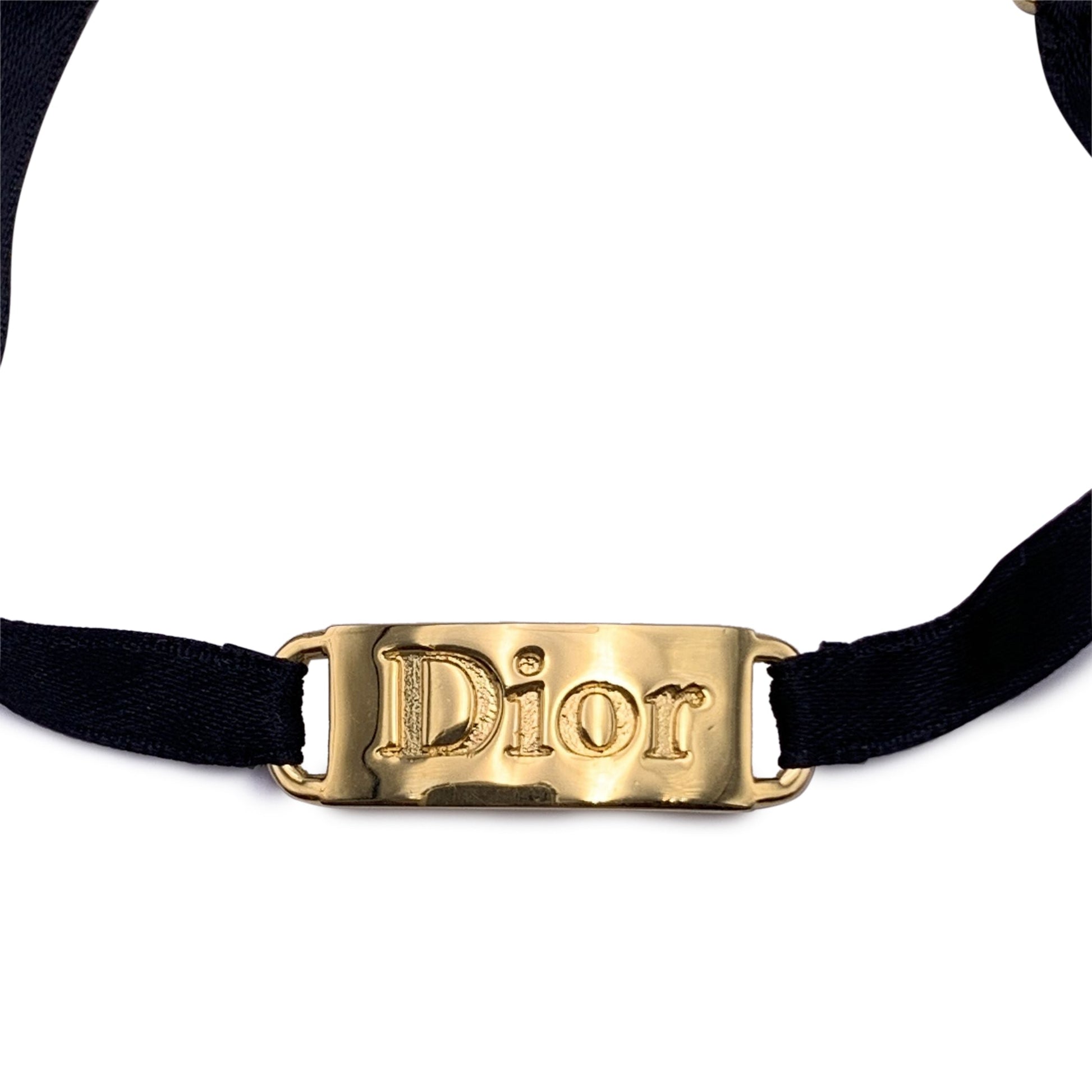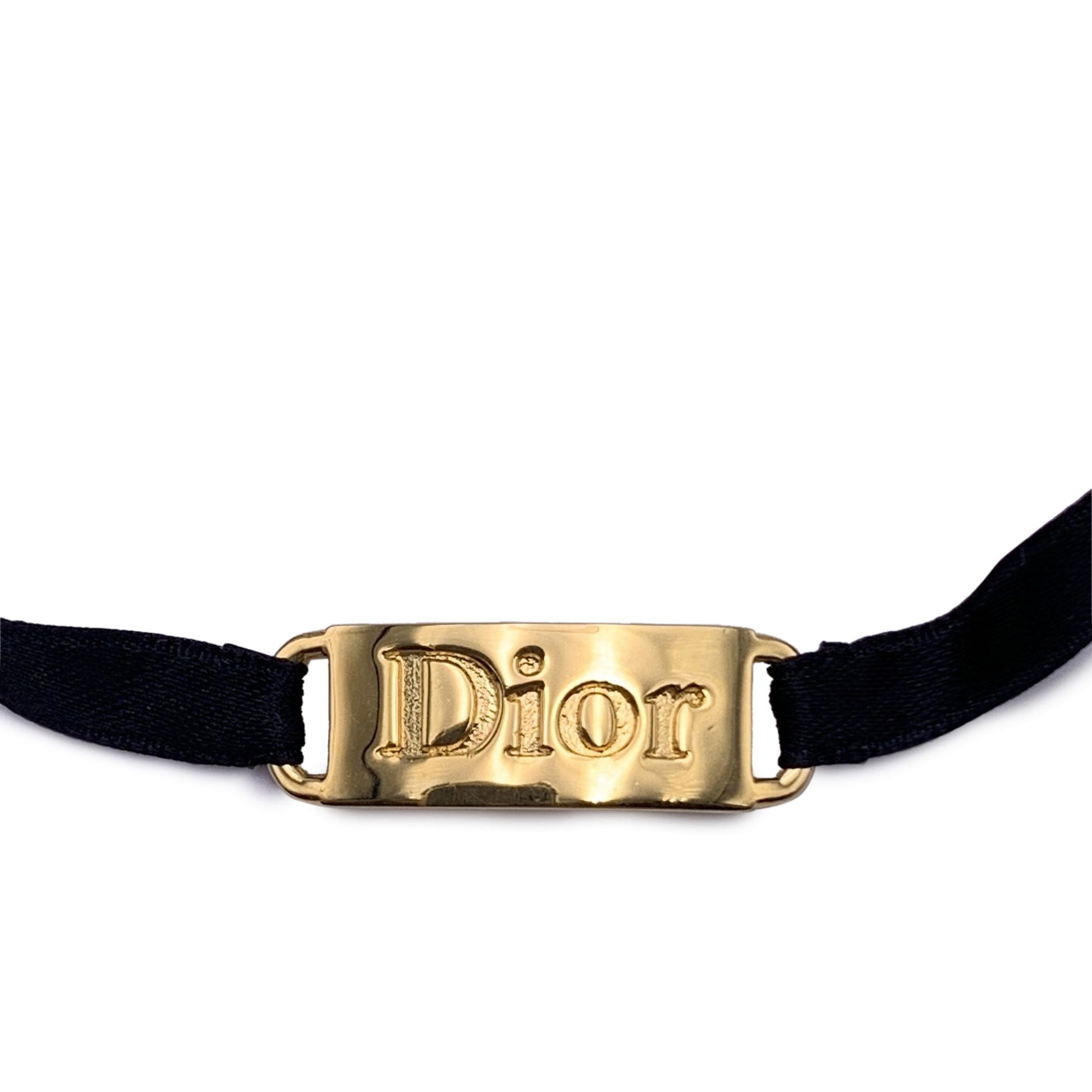 CHRISTIAN DIOR Vintage Gold Metal Black Ribbon Logo Plate Bracelet
