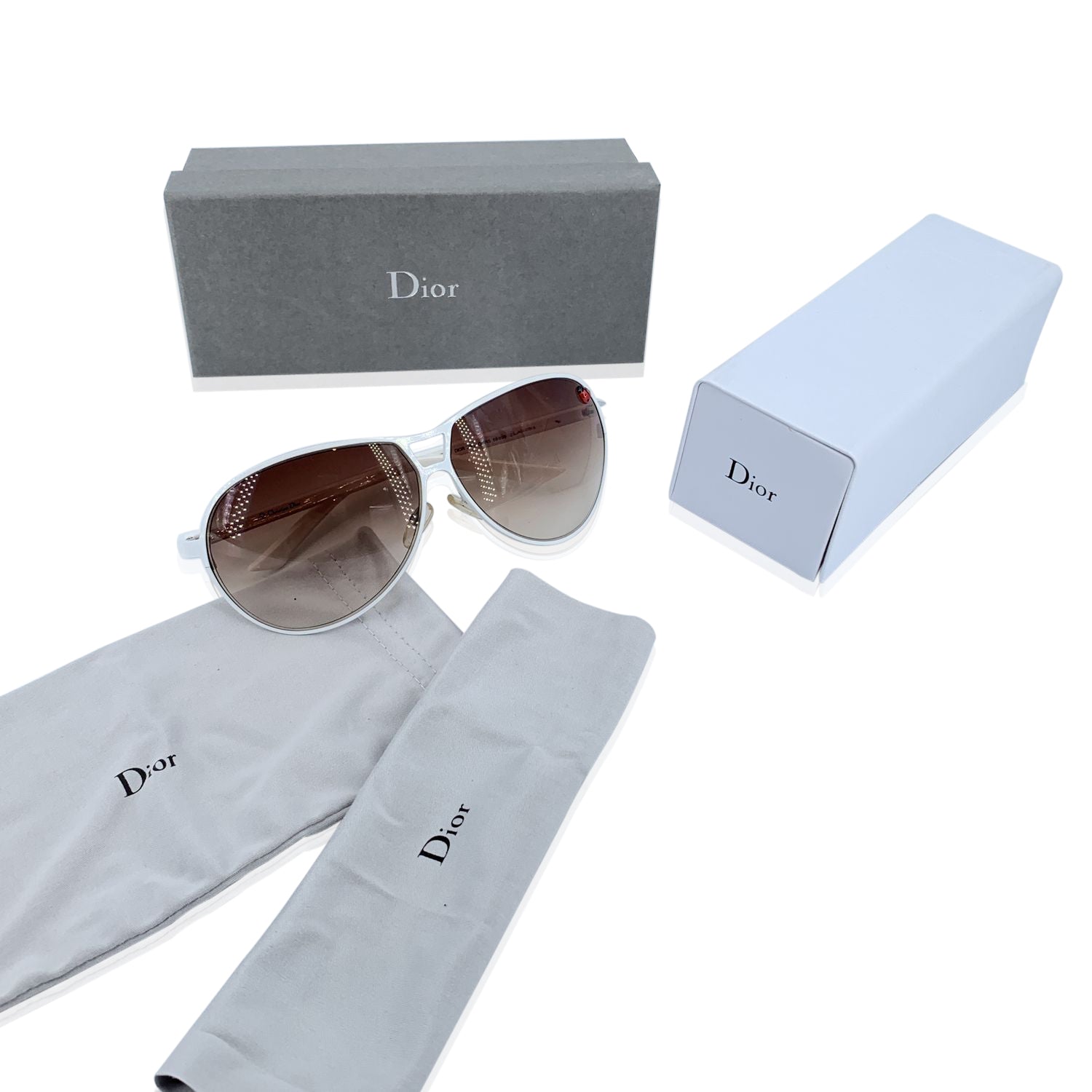 Made In Italy Details Material: Metal Color: White Model: Dior Tiny Osir5 Gender: Women Country Of Manufacture: Italy Original Case?: Please Ask For Availability Style: Aviator Lens Color: Brown Condition A+ - Mint Never , Do Defect Or Wear.