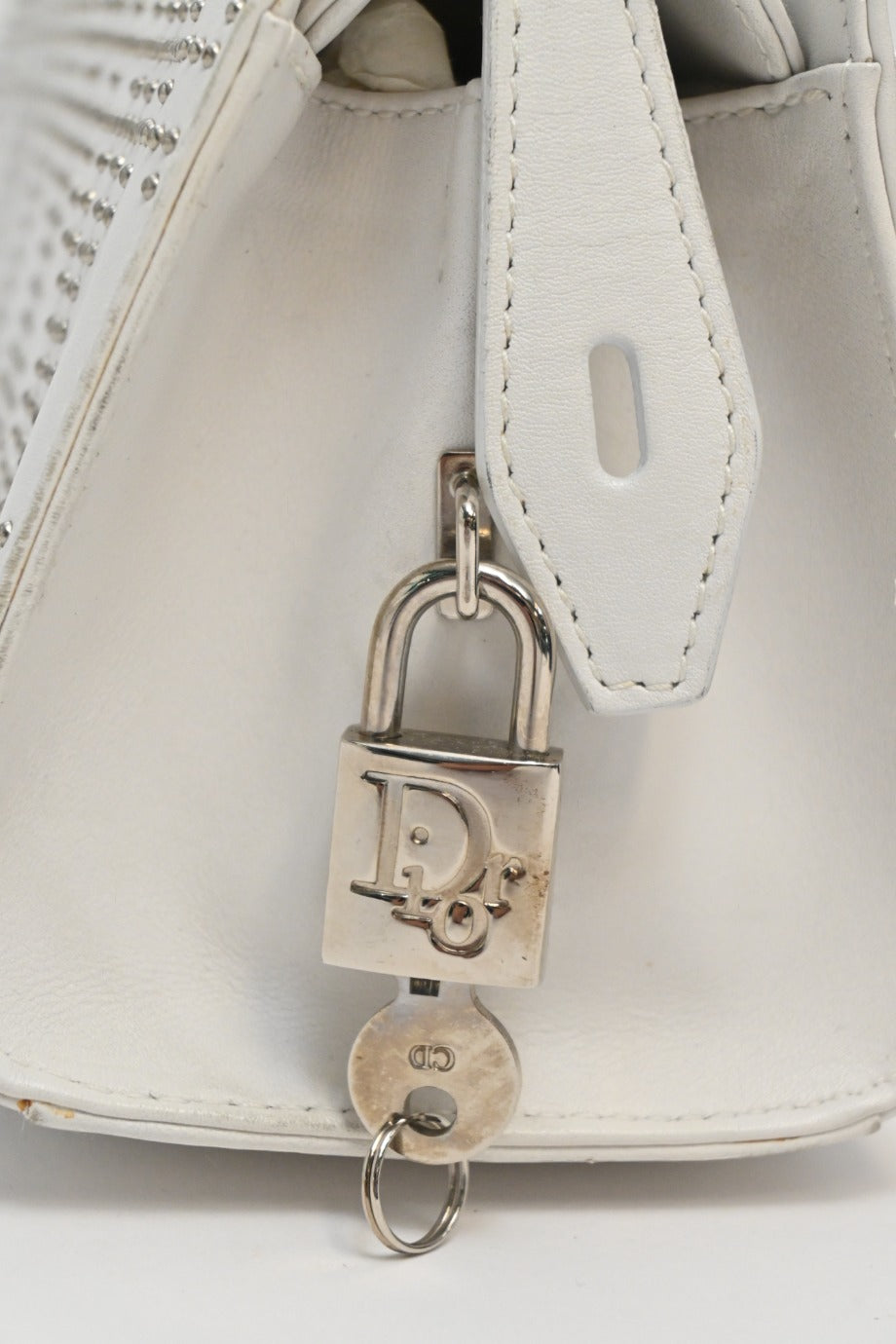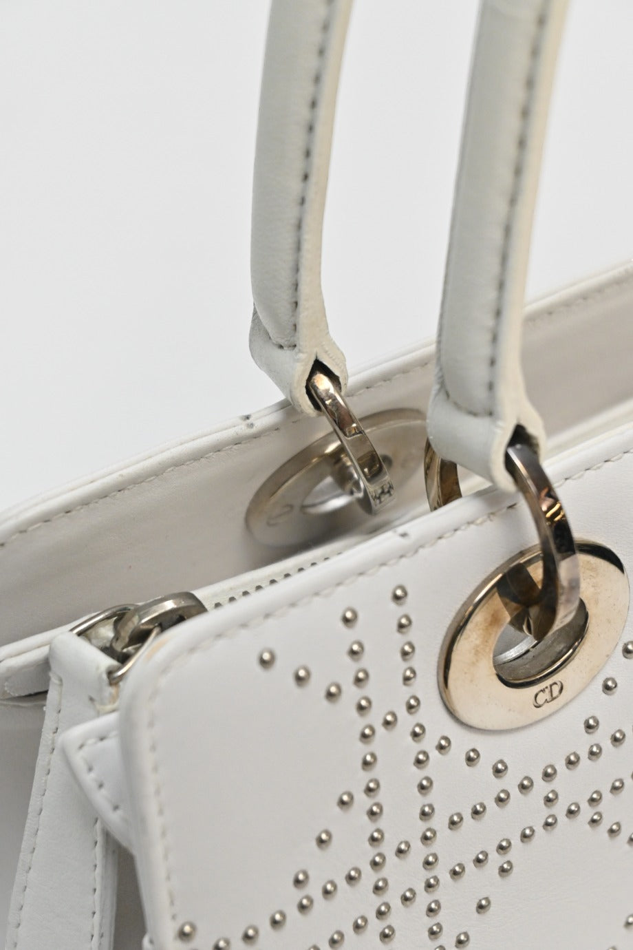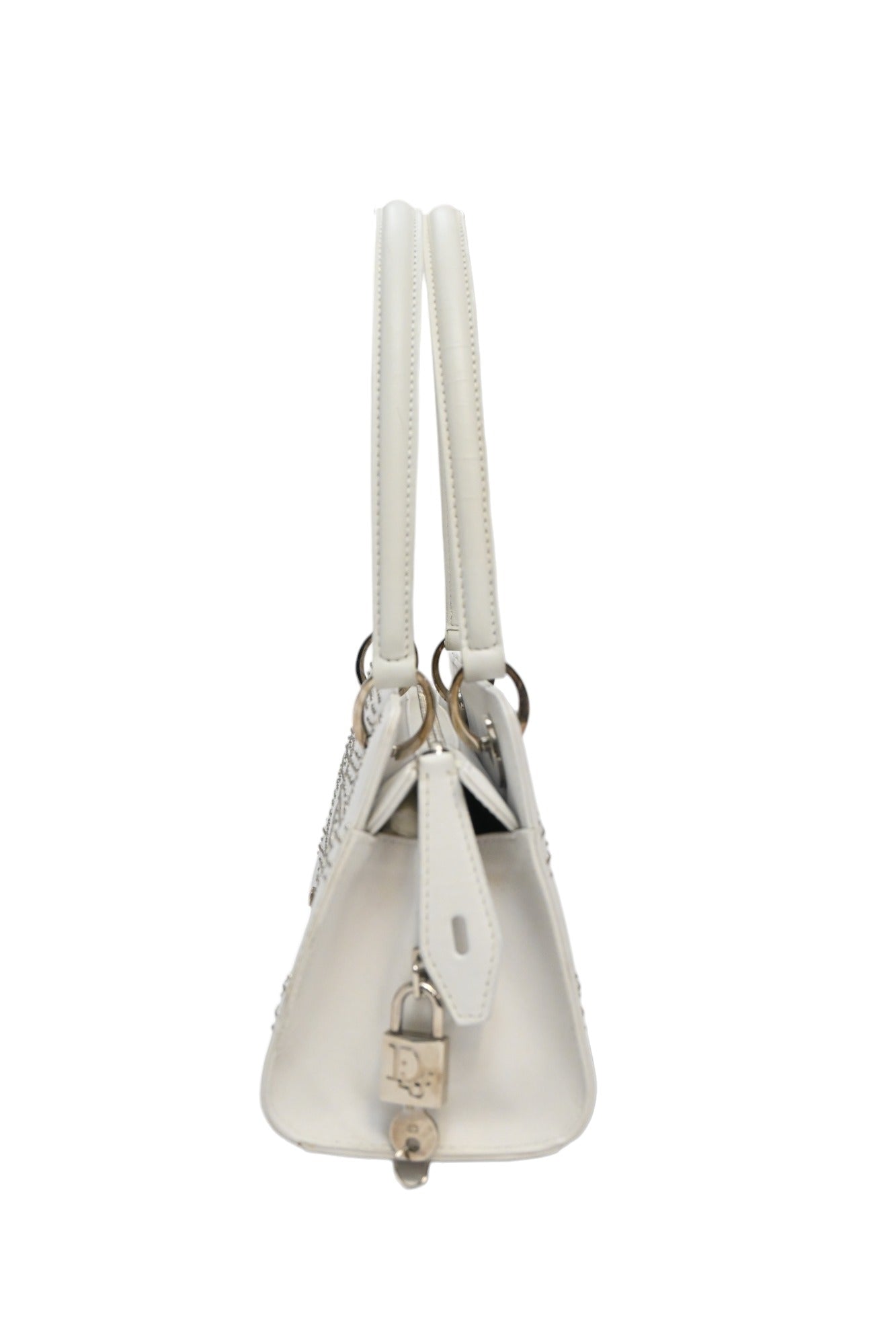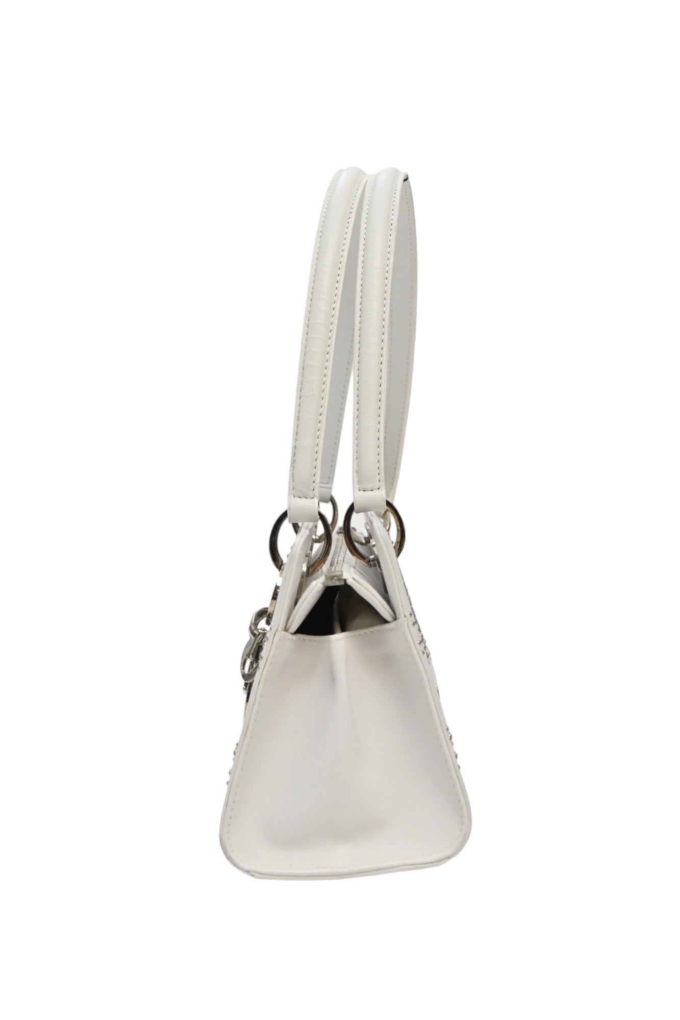 CHRISTIAN DIOR White lambskin Cannage studded Lady Dior East West shoulder bag